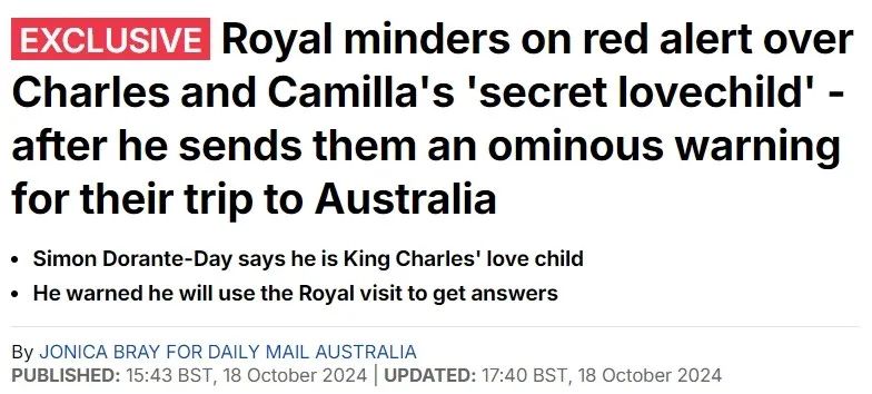 点击预约锁定直播间,事儿君带你贴秋膘~ 2022年,查尔斯三世即位后没多久,就有人跳出来要跟他认亲。 这个人名叫西蒙·查尔斯·多兰特-戴(Simon Charles Dorante-Day),今年58岁,目前住在澳大利亚昆士兰。 他于1966年4月5日出生在英国,自称是查尔斯和卡米拉的私生子。 ![]() (西蒙·查尔斯·多兰特-戴) 据他本人说,他的养祖父母都曾为英国王室工作,也正是因为这层关系,他才被托付给他们。 被收养后,他跟随收养家庭搬到澳大利亚。 从2018年开始,多兰特-戴就一直以查尔斯的私生子自居,要跟他相认。(点击回顾) 他在网上发过很多照片,对比他和英国王室成员的长相,强调他们长得像一家人。 ![]() (年轻的查尔斯、多兰特-戴和卡米拉) 2018年,他就想跟查尔斯和卡米拉,要做DNA亲子鉴定,证明自己的身份。 他还提起过诉讼,要告查尔斯,但因为缺少证据,法庭没有支持他。 而王室那边,查尔斯和卡米拉根本没理过他,他盼着的DNA鉴定,自然也一直没做成。 2023年,查尔斯举行加冕典礼,多兰特-戴拒绝观看,他酸酸地说自己“有更好的事情要做”。 “你知道真相——你站在那里,被任命为国王,你知道所有真相。” ![]() (多兰特-戴和查尔斯) 最近,多兰特-戴又跳出来了。 本周五,查尔斯和卡米拉抵达悉尼,对澳大利亚进行访问。 他们会在悉尼过周末,周一去堪培拉,再返回悉尼,周三离开。 ![]() (查尔斯和卡米拉抵达悉尼) 今年五月,王室刚宣布访问的消息时,多兰特-戴就暗示,他打算在查尔斯和卡米拉来澳大利亚时,当面跟他们对峙。 “这次我该怎么做呢?” “好吧,如果他跟我处于同一管辖范围内,我还不采取行动,那我就太傻了。” “但我觉得,如果太早暴露我的底牌,那就更愚蠢了。” ![]() (多兰特-戴) 他这些话,网友们听着也就等着吃瓜看戏,但英国王室的安保人员可紧张坏了。 负责国王王后近身保护的安全专家证实,多兰特-戴已经被列入安全监控名单,将受到保镖们的特别关注。 他们还要向澳大利亚安全情报机构通报这件事,让他在这段时间不要靠近查尔斯和卡米拉。 ![]() (相关报道) 一名有30年安保经验、为众多明星名人工作过的资深保镖匿名透露:“监视名单上可能有大约20个名字。” “当然,任何公开发声的人都会引起极大的关注。” “我们已经对他们的名字进行了背景调查,并且根据犯罪记录和社交媒体,进行心理评估。” “警方有权向任何他们认为有必要的人采取行动。” “心里简报会确定是否有必要这样做。” “他们会考虑所有因素,包括当事人有没有可能对他们怀有怨恨,也会关注当事人的过激行为。” ![]() (查尔斯和卡米拉访问澳大利亚) 多兰特-戴的话已经说出去了,但很多网友都觉得他异想天开。 有人在评论他时讽刺道:“是谁屏气凝神,等着周五爸爸妈妈的到来呢?” 还有人说:“我想知道,为了确保安保人员知道多兰特-戴在哪,且没有机会扰乱这次访问,纳税人要花多少钱。” 还有更扎心的:“哈哈哈。58岁!!!!他看着比他们俩(查尔斯和卡米拉)都老。” ![]() (截图来自Dailymail评论区) 所以这次,多兰特-戴所谓的认亲行动, 估计也只是一出闹剧...... ref: https://www.dailymail.co.uk/news/article-13964637/Charles-Camillas-lovechild-Australia.html -------------------- 米朵芯儿:他肯定不是,他的头不够秃 二布丁_小奎花家排号16113:他如果真是,应该有人监视,而且按当时情况来说根本没有送人必要,当卡孩子养着就行了吧 绝望的主妇小百白:如果是真的,他算嫡长子吗 小狐狸唷小狐狸:虽然白人我有时候也脸盲,但真的不像,没有一点像的。狒狒都比他更像查尔斯[doge] ![]() 各位小伙伴们 微信公众号规则又进行了调整 事儿君也不得不跟大家求个三连 希望大家多多点击“在看” 喜欢的话也点个分享和赞 这样事儿君的推送才能继续出现在你的订阅列表 与大家继续分享每个开怀大笑或拍案惊奇的好故事 |
