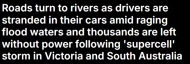 《每日邮报》10月19日报道,一场“超级单体”风暴将澳洲的道路化作汹涌的河流,导致司机受困数小时,数千家庭陷入停电的漆黑中。![]() 周五,澳洲多个地区经历了强烈的雷暴天气,伴随高尔夫球大小的冰雹和突如其来的洪水。 社交媒体上的视频显示,在墨尔本东南部的Frankston,一家购物中心外的汽车被淹没在急的水流之中。 维州Geelonq也遭遇了自2011年11月以来最严重的降雨,周五降雨量达67毫米。 维州紧急服务部门接到了近600通求助电话。 与此同时,南澳的许多地区遭到破坏性大风的袭击,导致输电线路受到破坏。截至周六,南澳仍有超过1500名用户断电。 维州也有800名客户面临停电的问题。新州北部也报告了停电情况,有660多名用户受到影响。 ![]() (图片来源:《每日邮报》) 尽管周五的雷暴席卷了多个州,但气象局高级气象学家Angus Hines表示,最恶劣的天气可能已经过去。 “周五受影响最严重地区的风暴风险已经消除。” “维州部分地区和新州东海岸可能会有一些阵雨和中等强度的风,但在大多数地方会在周六下午消散。” 预计周末剩余时间将出现较凉爽的天气,不过新州大部分沿海地区的警告仍未解除。 ![]() (图片来源:《每日邮报》) 与此同时,昆州Wide Bay和Burnett地区以及中央高地南部地区可能在周六遭遇强雷暴。 Hines表示:“本周澳洲各地爆发雷暴和强雷暴活动并在周四和周五达到高潮,随后在周五有个低压系统横扫澳洲东南部,这导致维州和新州大部份地区受严重雷暴影响。” 他补充说,这些雷暴在夜间逐渐减弱,并远离澳洲大陆。 由于一个严重的雷暴正好经过,Geelong地区周五在短短45分钟内降下50毫米的雨,该区和墨尔本东南部Frankston也因此发生突发性的洪水。 ![]() (图片来源:《每日邮报》) 自周五早上9点以来,墨尔本累计降雨量达到32毫米,机场为37毫米,Frankston达到48毫米,Springvale45毫米,维州东北部Mt Hotham也有68毫米的降雨量。 Hines还表示,塔州东北部一些地区周五也有大量降雨,尽管没有遭遇严重雷暴。 塔州降雨最多的是Scottsdale地区(60毫米),而MtArthur的降雨量则为52毫米。 在新州,最强的降雨出现在雪山及其西坡地区,Thredbo记录了78毫米的降雨,而Upper Goobarragandra则达到62毫米。 目前,塔州东北部的Lower North Esk River和维州东北部的Queen River的轻微洪水警告仍未解除。 |