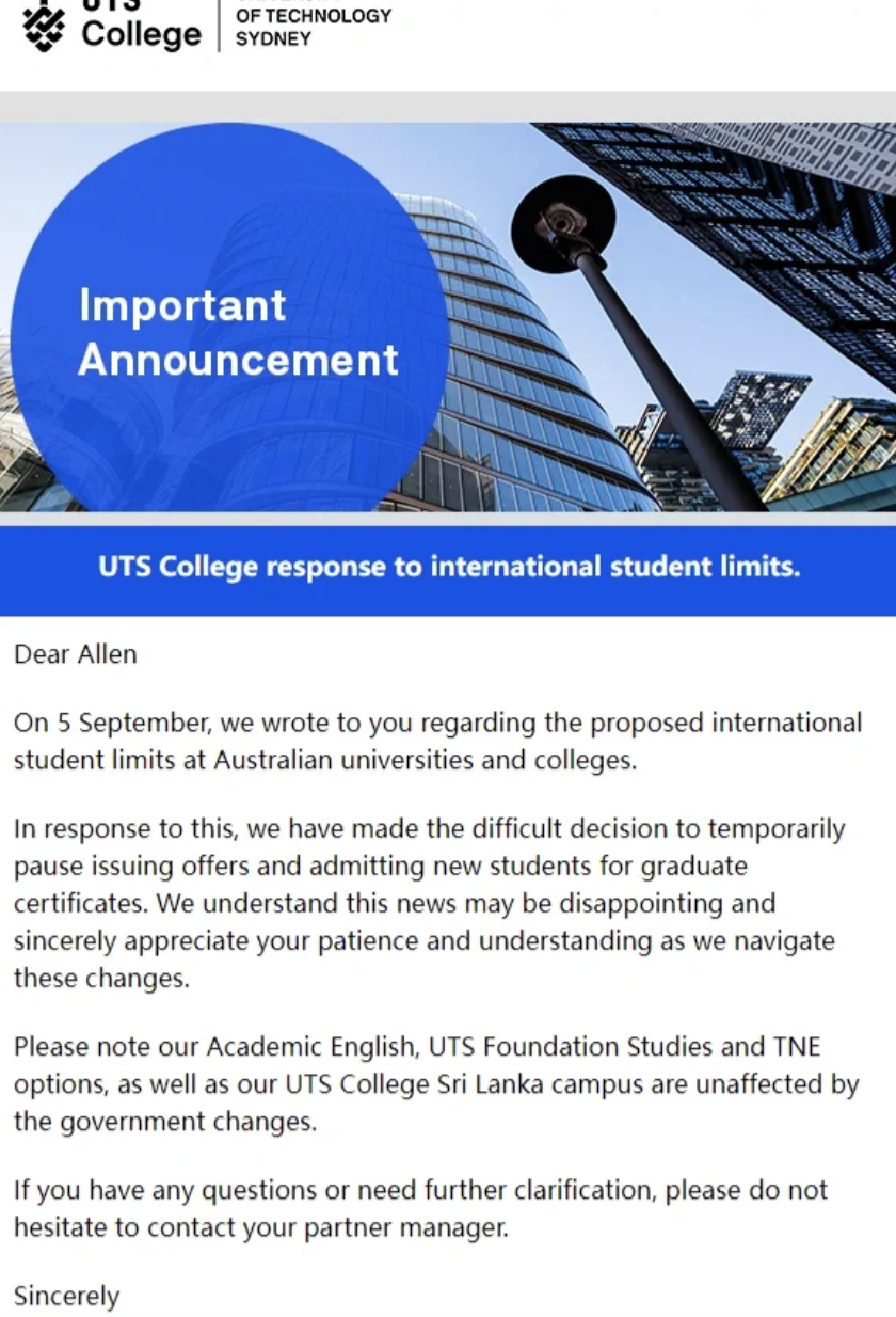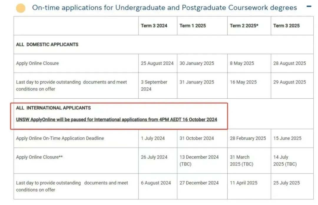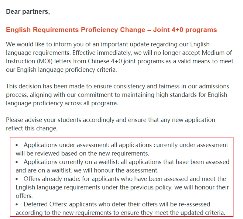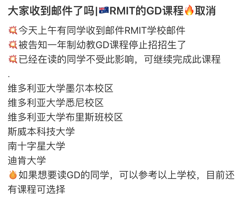 震惊!澳大利亚一所跻身全球前二十的顶尖学府宣布:不再接收国际学生申请,各专业均暂停受理!澳洲留学界近期风波不断,新闻连连。对于众多留学生而言,澳洲八大名校历来是热门之选。然而,近期,排名全球前二十、澳洲前四的新南威尔士大学(UNSW)却惊人地宣布: 2025年的全部三个入学期申请即将关闭,且这一举措并非仅限于明年首学期! ![]() 请注意,这是针对全年所有入学机会,且仅限于国际学生!尤为关键的是,申请截止日期定于10月16日。 ![]() 也就是说,一旦错过下周,2025年你将无缘这所世界名校,涵盖所有本科及硕士专业(MBA除外)!其官方文件明确指出:2025年UNSW面向国际学生的申请将于2024年10月16日(澳大利亚东部夏令时间,星期三下午4点)截止。此后提交的任何申请均将被列入候补名单。目前就读UNSW的研究生课程本科生及受资助学生不受此暂停影响,将很快收到后续申请指南。值得一提的是,UNSW全日制MBA(8351)项目申请不受此次暂停影响,仍可在线提交。 ![]() 作为申请流程的一部分,UNSW将近期通过电子邮件联系正在评估中的申请人。 申请人可选择继续评估或选择退出并(如符合条件)申请退费。未在规定时间内回复邮件的学生将自动退出评估。 若申请课程已满,将被列入候补名单。未来有名额空缺时,UNSW将优先考虑候补学生。 尚未申请的学生,仅能通过意向书表达候补意愿。意向书将在10月16日在线申请暂停后,于相关学位页面提供。 总之,有申请意向的同学,务必迅速行动!这一变化背后的原因,显然与澳大利亚政府近期提议修订国际学生教育服务法规有关。新法规旨在限制留学生人数...据数据显示,UNSW 2025年配额缩减至9,500人,较2024年的17,359人减少7,859人,降幅高达45%,堪称八大中受冲击最严重的学府之一。 ![]() 为应对此变化,UNSW不得不调整申请流程,以确保招生不超政府限制,同时为申请者提供明确指引。原本以为仅是减少招生、提高门槛,未料竟直接停止招收国际学生。 澳洲政府的新政策使各校陷入前所未有的困境,纷纷采取措施应对! 如:暂停招生、关闭部分学院申请、撤销已发放录取通知。01 澳洲国立大学 ![]() 澳大利亚国立大学(ANU)宣布大规模重组学术机构,由7个学院减至6个,保留42个院系及研究所,其中5个院系、2个中心及1个研究所将并入新学院,另有三个学院更名。 ![]() 02 悉尼大学 ![]() 自8月30日起,悉尼大学不再接受中国4+0联合项目授课语言证明。 ![]() 因留学生配额限制,2025年2月入学本硕课程已满,7月入学部分专业无法配语言课程。截至10月11日,悉大在读学生仍可申请部分2月入学课程,但部分已满位关闭。部分类别学生可豁免配额限制。 ![]() 03 悉尼科技大学学院 ![]() 受留学生配额影响,UTS学院暂停向新生发放录取通知及研究生证书,但部分课程不受影响。 ![]() 04 皇家墨尔本理工大学 ![]() RMIT近期邮件引发热议,称2025年2月入学的一年制幼教GD课程不再发放录取通知。但经核实,该课程未取消,将由新课程取代。因此,面对澳洲大学诸多变化,建议直接与学校核实,以免影响申请。 ![]() 面对这些变化,大家需积极应对。首先,尽早完成语言考试及申请材料,抢占先机;其次,语言不达标时,及时降级或申诉争取机会。 声明:本文信息来源于网络,仅供学习参考,如有侵权请联系告知,将在规定时间内给予删除处理。 ![]() 想了解更多留学申请问题的同学 欢迎扫一扫下方二维码咨询 ![]() 长按识别二维码免费1v1留学咨询托福家考GRE保分咨询托福面授咨询 ![]() ![]() 添加微信【waytomarah】免费1v1留学咨询、托福GRE保分、多邻国保分咨询 |