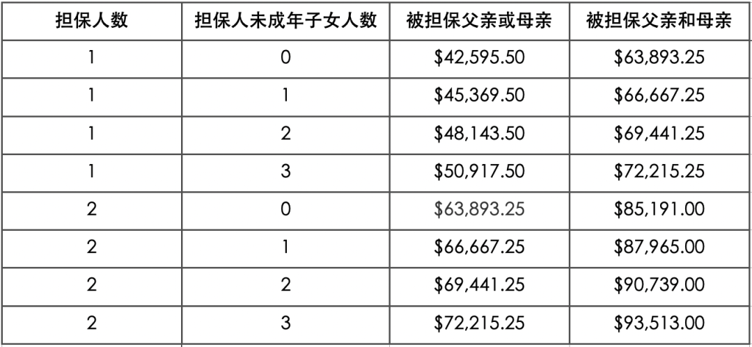 申请要求 子女作为担保人(sponsor)所需满足的要求: