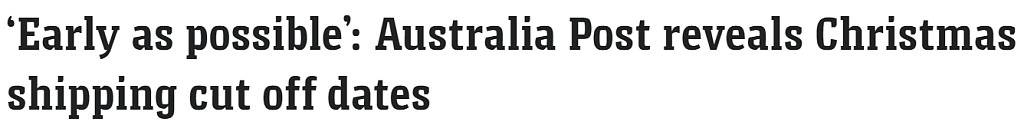 注意啦! 点击 ![]() 蓝字"悉尼辣妈帮"→ 点击右上角“...”→ 点选“设为星标 ★” ,不错过任何精彩! ![]() ![]() ![]() ![]() ![]() ![]() ![]() ![]() ![]() ![]() ![]() ![]() ![]() ![]() ![]() ↑↑已有100000+悉尼妈妈点击关注我们↑↑ ![]() 每年有多少妈妈和辣妈一样 从11月份开始 就要陆陆续续地往国内邮寄东西了 澳洲邮政公布了寄送圣诞节礼品、卡片和信件的截止日期,民众需要在截止日期前寄出礼物,以确保它们能够准时送达。 ![]() 澳洲邮政表示,民众需要在12月20日之前寄出国内普通快递,而特快(Express Post)需在12月23日前寄出,但北领地、塔州和西澳除外,这些地区的民众仍需在12月20日之前寄出。 州际信件和卡片应在12月13日之前寄出,而州内邮寄的信件和卡片应在12月16日之前寄出。 ![]() 其实妈妈们应该知道,澳洲人的仪式感一直是浓浓的!澳洲邮政的一名发言人表示:“去年11月和12月,我们寄送了近1亿件快递。” “我们建议您尽快寄送圣诞快递......以确保能在圣诞节前或及时送达。我们将尽快寄送截止日期之后寄出的快递,但它们要到圣诞节后才能送达。” 插播一个消息~ ![]() 辣妈帮已经为 悉尼新手妈妈们建立了超级实用的辣妈帮龙/兔①②/虎①②③/牛①②③宝宝群幼儿园群,小学群,私校群,母婴二手群,新移民交流群等等...想入群的妈妈们,现在开始扫码吧! ![]() ![]() 与此同时,如果妈妈们是想向海外寄送快递,那可能最早需在11月寄出。 ![]() 使用International Standard寄往东亚、东南亚、英国和新西兰的快递和信件需在11月28日和29日寄出。 使用International Express寄往东亚、东南亚、中国、欧洲主要目的地、英国、加拿大和新西兰的快递和信件需在12月13日前寄出,寄往美国的需在12月16日前寄出,寄往其它目的地的需在12月2日前寄出。 使用International Courier寄往东亚、东南亚、中国和欧洲主要目的地的快递和信件需在12月13日前寄出,寄往英国、加拿大、美国和新西兰的需在12月16日前寄出。 ![]() (^_−)❤ 以上为正文内容 ❤ 辣妈帮客服梦之队 ❤ ![]() ❤ 辣妈帮广告联系:Sydneydida ❤ ![]() 悉尼辣妈帮 澳洲最火妈妈社群平台 ![]() tui 推 jian 荐 re 热 gē 文