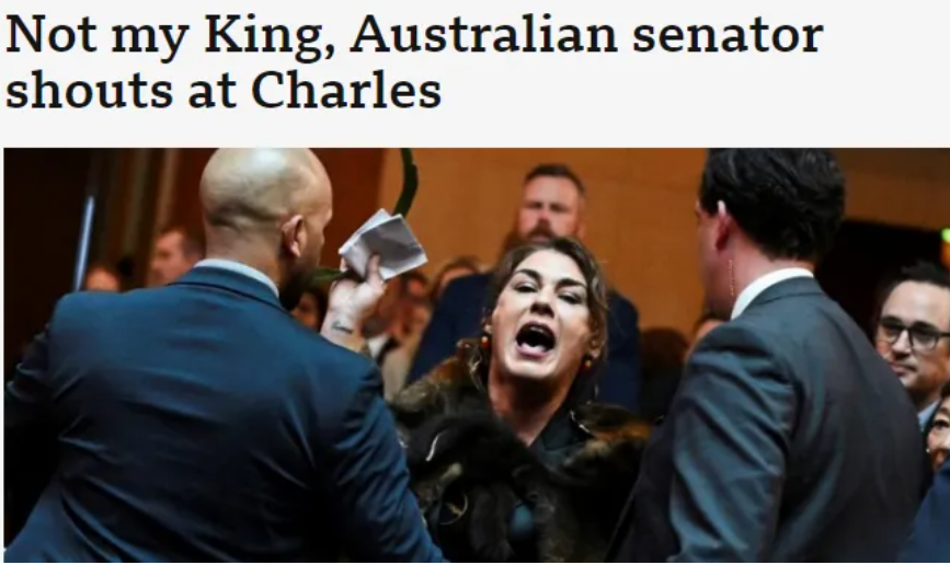 ![]() ![]() 据英国广播公司(BBC)报道,英国国王查尔斯三世与王后卡米拉本月18日起开始访问澳大利亚。此次访问是查尔斯三世自今年2月开始接受癌症治疗以来“规模最大的一次海外访问”。自确诊癌症以来,查尔斯三世此前唯一参加的一次跨国活动是6月在法国举行的诺曼底登陆纪念70周年庆祝活动。本次也是查尔斯三世首次以英国国王身份,以及英国男性君主的身份访问澳大利亚。 不过此次访问并不顺利。据报道,当地时间10月21日,查尔斯三世在澳大利亚开始了正式访问的第二天。当他在堪培拉议会大厦发表完演讲后,独立参议员兼原住民活动家莉迪亚·索普(Lidia Thorpe)突然高声抗议,表示不接受查尔斯对澳洲的主权。 索普说:“你对我们的人民犯下了种族灭绝罪。把我们的土地还给我们!把你从我们这里偷走的东西——我们的骨头、头颅、婴儿、人民——统统还回来。你摧毁了我们的土地。这不是你的土地。你不是我们的国王!你是小偷!” 只见索普身着传统服装,挥舞着一份文件,大胆地走到查尔斯夫妇面前,让周围的旁观者们——包括大厅里所有困惑的议员们——目瞪口呆。 在喊了大约1分钟后,索普还试图接近查尔斯,但遭到阻拦。随后她被安保人员赶出了大厅。 之前就有澳大利亚政客公开宣称不愿意承认查尔斯三世为自己国家的元首,要澳大利亚退出英联邦,改制成共和国,查尔斯三世也只能回应“不干预他们的做法”。 查尔斯三世在出访澳大利亚前就表示,若澳大利亚决定选择成为共和国,不再由英国国王担任其国家元首,他承诺不会阻碍相关进程。 有分析称,尽管澳大利亚方面现在暂无动作,且查尔斯三世的最新表态并不代表英国方面政策的改变,但查尔斯三世在“如此重要的访问”前作出该表态,表明“围绕(君主制度是否保留)这一话题的讨论已经成熟”。 目前,全球仍有14个国家保留英国君主为国家元首。最近一个脱离这一体制的国家是巴巴多斯,该国于2021年成为共和国。目前牙买加也明确表示希望改革,并计划今年进行相关投票。 ![]() |