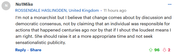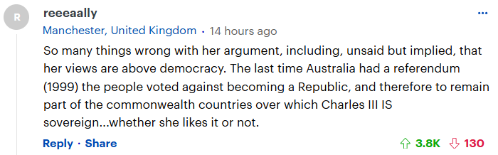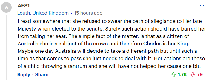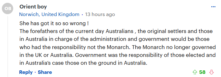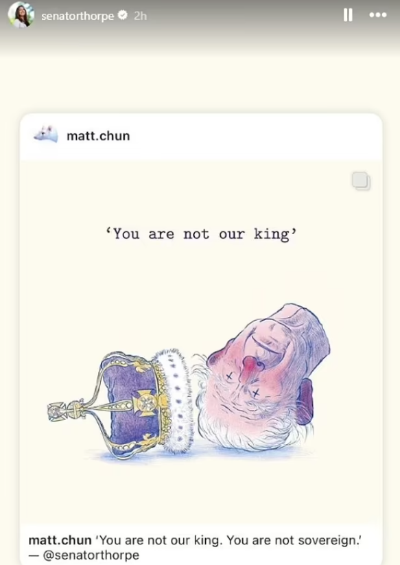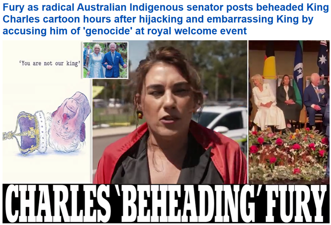 微信的规则进行了调整![]() 希望大家看完故事多点“在看”,喜欢的话也点个分享和赞 ![]() 这样居里夫人的推送才能继续出现在你的订阅列表里 ![]() 才能继续跟大家分享有趣的,有用的,有深度的英国大小事儿~ ![]() ![]() ![]() 话说,年逾古稀才继承王位的查尔斯,总给人一种心有余而力不足只好佛系称王的感觉。 女王刚去世那年,查尔斯首次作为国王开启国内寻访,被扔了鸡蛋: ![]() 次年三月的第一个国事访问,由于法国罢工而推迟。据说,法国抗议者早早就在街头为查尔斯准备了“大礼”,爱丽舍宫方面担心大革命惨剧波及英国国王,所以建议他不要来... ![]() 不得已改道去了德国查尔斯,被当地老百姓授予汉堡王免费纸王冠,还有卡米拉的针织小人偶: ![]() ![]() ![]() 好不容易熬到了登基,反对者齐刷刷地“不是吾王”(Not My King)大牌子格外晃眼... ![]() 不过,这些来民间的怒火,对查尔斯并没有什么实质性的杀伤力,而且他如果表现得云淡风轻,还能为自己吸粉不少,然而一旦这种“弑君”行为上升到国家层面,那事儿就大了。每日邮报:激进的澳大利亚原住民参议员痛斥查尔斯“种族屠杀”,并发了查尔斯被斩首的卡通图 ![]() BBC:“不是吾王”,澳大利亚参议员对查尔斯怒吼 ![]() 这位公开斥责查尔斯的议员名叫莉迪亚-索普(Lidia Thorpe)。她自2020年起担任维多利亚州参议员,是该州第一位原住民参议员。 ![]() 虽然这位姐也拥有英格兰和爱尔兰血统,但原住民血统占到了六成以上,所以她的政治立场一直是坚定地反帝反殖民。她曾举手握拳,高喊“英国女王是殖民者”走进议会大厦。 ![]() 如今,英国的王位传给了查尔斯三世,不少和索普参议员一样激进的政治家,不会错过这个有朋自远方来的机会。就在今天,查尔斯和卡米拉应邀访问堪培拉议会大厦,并发表了演讲。话音刚落,身着原住民传统皮毛外套的索普参议员走下大厅的过道,高喊:“你们对我们的人民实施了种族灭绝。” ![]() 这位来自维多利亚州的独立参议员补充了一段演说:“把我们的土地还给我们,把你们从我们这里偷走的一切 —— 我们的尸骨,我们的婴儿和人民,还给我们。” ![]() 她说了足足有一分钟,保安才决定将她带离。“这不是你的土地,你不是我的国王,”被带离的索普情绪激动,喊声响彻会场。 ![]() 事件发生时,镜头也给到了坐在台上的查尔斯和卡米拉。两人与澳大利亚政要交谈甚欢,似乎完全没注意到这位原住民议员的抗议。 ![]() 在议会大厦发表完看法后,索普参议员在个人社交网络账号上发了这样一张图: ![]() 这幅插画的作者马特-陈(Matt Chun),是一名有亚裔血统的澳洲原住民。他在新南威尔士地区的Bermagui镇经营着一家咖啡馆,并曾在澳大利亚日(相当于澳大利亚国庆节)摆出“蠢货日”的抗议小黑板。 ![]() 尽管这起抗议让他收获了大量死亡威胁,陈先生还是挺刚的。他在接受采访时说,希望通过这间小小的咖啡屋,告诉前来这里游玩的人:这场国家仪式就是一场“粉饰太平的诈骗”。 ![]() 而原住民社会运动家的看法也不无道理:因为这个国庆日在当初,就是英国船长亚瑟·菲利普驾船带着囚犯到达澳洲的日子。而这一天之所以被列为国庆日,原本也是为了纪念首批欧洲人抵达澳洲。 ![]() 据澳大利亚博物馆官网上贴出的信息,在澳大利亚140年的历史中,至少发生过270起边境大屠杀,且将近一半是由警察或政府机构组织的 —— 不少学者认为,这说明国家在“有组织地消灭原住民”。 ![]() 殖民者入侵前,原住民数量大约有100-150万;到20世纪初,只剩下不到10万人次。而索普参议员提到的“被偷走的儿童”,指的是澳大利亚各州政府强行将原住民儿童从原生家庭中带走,强迫他们进入传教士管理的“保护区”,最终被白人家庭收养或为白人工作的政策。 ![]() 当然,这些恶行并非查尔斯本人所为,但他和其他王室成员依旧生活在前人通过暴力获得原始积累之上,也是不争的事实。索普认为,查尔斯作为加害方的后代,有责任铭记历史,为过去道歉。对此,白金汉宫拒绝评论。不过,网民对这件事的评论非常撕裂,很值得玩味。大部分英国网民认为,索普是个愚蠢没教养的人:“她的论点有很多错误。上次澳大利亚举行全民公投时,人们投票反对共和,这才使澳大利亚继续留在查理三世拥有主权的英联邦国家中。她接受也好不接受也好,这就是事实。” ![]() “我不是保皇党,但我相信变革是通过讨论和民主共识实现的,而不是要求某个人对几个世纪前发生的行为负责,也不是谁的声音大谁就对。她应该在更合适的时间提出这个问题,而不是博眼球作秀。” ![]() “我曾看过一篇报道,说她当选参议员时拒绝宣誓效忠已故女王,这样的行为本应该断了她的政坛生涯。作为澳大利亚公民,她是王室的臣民,因此查尔斯是她的国王。也许有一天澳大利亚会决定走上一条不同的道路,但在那一刻到来之前,她只能面对现实。她的行为就像一个发脾气的孩子,对她的事业没有一点帮助。” ![]() 有人认为,既得利益者倾向于忘记历史: “很多人选择忘却殖民带来的便利,只看得到当下的弊病。” ![]() 也有人觉得,要是没有王室的存在,澳大利亚没法发展到今天的样子:“如果没有英国王室的存在,就不会有现代澳大利亚的经济腾飞和大量基础设施了。” ![]() 有人觉得,索普找错了讨伐对象:“她完全搞错重点了。第一批殖民者和一直在