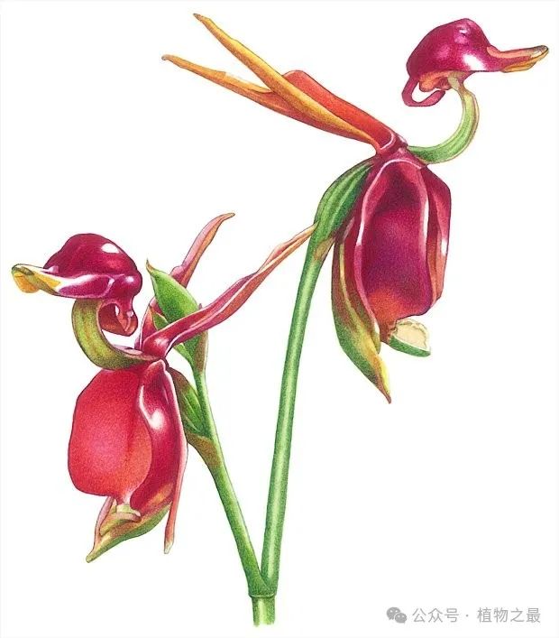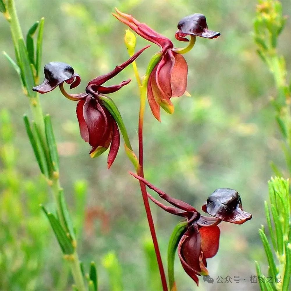 飞鸭兰(Caleana major),是一种来自澳大利亚的奇特兰花,以其独特的鸭子状花朵而闻名。这种花朵通常是红色、紫色或绿色的,开花时非常小,长度仅有1到2厘米,通常在春末和初夏盛开,花期 9 月至 1 月。![]() 花植株高18–40厘米,基部有狭鞘状苞片。叶狭披针形,长4–13厘米,宽4–8毫米,通常微红色。花红褐色,1–3朵(顶端有未发育芽),生于极细的花梗上,被急尖的苞片包裹;子房隆起;背萼片在柱下紧密弯曲,有沟,狭倒卵形至匙形,短尖,长12–15毫米;侧萼片反折,有沟,中部以上收缩,后呈狭管状或尖形,长12–16毫米;花瓣向柱翅外折,狭线形,长约11毫米。唇瓣爪带状,弯曲,长5–8毫米,着生于叶片膨大部分中部;叶片倒卵形,长 8-9 毫米,光滑,中部膨大中空,下部空腔开口,柱侧有喙状延伸,远端有扁平钝的下弯附属物。柱内弯,从花药到基部有极宽的翅,杯状,翅与唇瓣爪相连。 ![]() 飞鸭兰的花朵是为了吸引雄性锯蝇而进化的,这些雄性昆虫会误以为花朵是雌性锯蝇。植物的“喙”设计得十分巧妙,能够捕获这些昆虫。每当锯蝇试图逃脱时,它们无意中会被花粉粘上,从而帮助飞鸭兰授粉。这种独特的传粉方式对飞鸭兰的生存至关重要。 ![]() 值得一提的是,飞鸭兰的美丽和独特性使它成为了澳大利亚邮票上的常客。然而,由于栖息地的破坏和重要传粉者数量的减少,飞鸭兰已被列为易危植物。 ![]() 虽然很多兰花爱好者想要培育飞鸭兰,但这种植物在市场上很难找到,想要看到飞鸭兰,唯一的方法就是亲自去澳大利亚。这是因为飞鸭兰的根部与一种特定真菌有共生关系,而这种真菌只在澳大利亚南部和东部的桉树林中存在。 ![]() 虽然许多植物爱好者尝试过在其他地方种植飞鸭兰,但由于缺少这种真菌,飞鸭兰无法存活。研究表明,这种真菌对于维持植物健康和抵抗感染非常重要。 ![]() 总的来说,飞鸭兰是一种令人惊叹的兰花,其独特的生物特性和美丽的花朵让它在植物界中独树一帜。了解飞鸭兰的生态特点和生长要求,可以帮助我们更好地欣赏这种珍稀植物的魅力。虽然难以栽培,但亲自去观赏它在自然环境中的姿态,绝对是一次难忘的体验! 猜你喜欢: 含有8种毒植物的巴巴斯科酱:探索神秘的植物世界 骷髅花的秘密:你知道天使与魔鬼并存的是什么花吗 地球上最诡异植物排行:一个比一个恐怖 千万别碰!揭秘那些看似无害却极具危险的致命植物 民间神奇防蛇秘方!揭秘八大‘毒蛇克星’植物及背后传奇故事 |