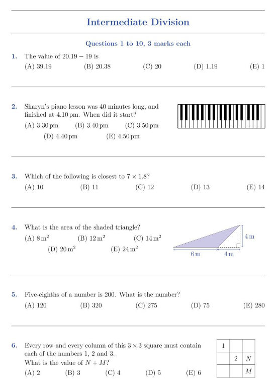 关注我们|获取更多国际竞赛信息 小编汇总了澳洲AMC历年真题,大家可以下载PDF版,打印刷题。关注公众号扫码领取~ 01 澳洲AMC真题 A级 ![]() B级 ![]() C级 ![]() D级 ![]() E级 ![]() 滑动查看更多 澳洲AMC A-E真题&答案 关注公众号扫描二维码领取 02 澳洲AMC竞赛难度 澳洲AMC共30道题目,25道选择题,5道问答题(需要整数答案),总分135分,1-10每题3分,11-20每题4分,21-25每题 5分,最后5道题,26、27、28、29、30题,各为6、7、8、9、10分(不答或答错不扣分)。前10道题较为容易,可视为基础的课内类型题目;由第11题难度开始逐渐加大,即介于学校大纲与竞赛数学,专项考察学生的计算、观察、空间和逻辑等数学能力;21题起,属于挑战题。需要学生运用综合的分析能力和多维的数学思想来完成此部分。此竞赛的成绩及奖项的决定因素在于这10道题目的发挥。03 澳洲AMC奖项设置 Peter O'Halloran 成就奖:满分的同学将获得该奖项 卓越奖(Prize):A-E 级别排名前0.3% 一等奖(High Distinction):A-D 级别排名前3% / E 级别排名前5% 二等奖(Distinction):A-D 级别排名前 20% / E 级别排名前 25% 三等奖(Credit):A-D 级别排名前 55% / E 级别排名前 60% 数学技能奖(Proficiency):总分超过既定分数线但没有获得优秀奖的同学(每年分数线会因为难度不同有一定波动,平均在32分); *每个难度级别分年级单独评奖,例如等级A 包含了小学三年级和四年级同学,则报名三年级的同学和报名四年级的同学分开按照比例评奖,不跨年级混合评比。 点击关注获取更多国际教育资讯 |