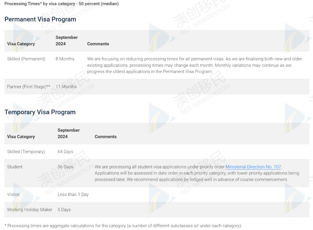 -- 技术移民永居签证申请,平均审理时长为8个月; -- 配偶移民永居签证申请,平均审理时长为11个月;