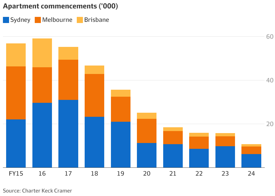 点击蓝字关注我们![]() 本文来自公众号:澳房汇 ![]() 目前有不少住房项目因缺乏经济可行性而被搁置 图:Bloomberg 文/Robert Harley 今年5月的时候,澳洲央行首席经济学家Sarah Hunter曾经精准地指出过导致住房危机供应疲软的原因。 “考虑到目前新住宅审批的水平、以及很多项目在经济上仍然不可行的事实,新增供应需要过一段时间才能好起来,”她表示。 斜体字部分就是我想强调的。项目可行性如今已成为关键问题。 许多项目,即使是在交通便利、社区设施完善的中环城区,正是规划者和政界人士急于增加人口的区域,仍然无法顺利推进。 土地价格、建筑成本、开发费用以及长期项目的融资成本,远远超出了那些受限于房贷的买家所能支付的价格。 这一问题在独立房产服务公司Charter Keck Cramer的最新图表中得到了充分体现。新建待售公寓的开盘量和随之而来的施工启动量急剧下降,2023-24年的数字可以说是十年来的最低点。 一位在公寓销售领域有35年经验的资深人士告诉我,目前的市场是他见过的最奇怪的,需求极大,但建房却极少。 然而,围绕这一问题的讨论、辩论以及新的政策层出不穷——不仅联邦反对党和商业委员会参与其中,州政府也不断推出新举措,尤其是维州政府最近一周内,出现了一系列政策高潮。 对此,开发商Intrapac的首席执行官、澳大利亚城市发展研究院(UDIA)前全国主席Max Shifman发表了一篇广为流传的评论,内容同样适用于悉尼或布里斯班。 他写道:“尽管人们非常希望在成熟城区的活动中心建设更多中高层公寓,但短期内,我们却不太可能建造这类公寓。” “为什么呢?因为开发这类项目无法取得可行的销售数字,尤其是大规模开发,短期内更是如此。” Shifman指出,新公寓每平方米的成本是优质联排别墅的三倍,是外城区新独立房屋的四倍。 他写道,“目前唯一能够产生合理投资回报的是高端精品公寓,专门针对想换小房的富裕人群”。 公寓开盘量(千套) ![]() Lendlease首席执行官Tony Lombardo, Consolidated Properties Group的资深开发商兼主席Don O’Rourke在9月的《澳洲金融评论》房地产峰会上也表达了类似的看法。 布里斯班市长“更好城区计划”主席Ross Elliott在其为澳大利亚进步研究院撰写的布里斯班住房报告《更快、更好、更多》中,对这一挑战进行了量化分析。 他估算,在布里斯班,建造一套中档规格的85平方米公寓成本至少需要130万澳元,只有高端的买家才能负担得起。 可行性问题甚至导致了一些已经通过规划并获得开发许可的项目停滞不前。 KPMG估计,截至6月30日,超过34,000套新住房项目陷入了“开发已获批但未推进”的僵局,其中大部分是公寓和联排别墅项目,仅悉尼就有12,000套。 KPMG的城市经济学家Terry Rawnsley告诉我的同事Larry Schlesinger,开发商可能正在等待完成预售,又或者是正在找寻合适的建筑商。 “要启动一个500或1000套公寓的大项目,你还需要充足的资金和信心,但开发商依然非常谨慎,”他说。 这些都对,但还有一个更简单且更根本的原因。如果开发商贸然推进,他们只会亏损更多,因为这些项目已经不再具备经济可行性。 从长远来看,开发的平衡点会逐渐恢复。 CBRE太平洋地区研究主管Sameer Chopra预测,一旦利率开始下降,强劲的需求将推动新公寓的价格上涨,体现出真实的开发成本,而目前售价低于重建成本的现有公寓也将随之上涨。 公寓开建量(千套) ![]() 独立研究中心首席经济学家、强烈主张进行土地用途分区改革的Peter Tulip认为,随着地块被重新融资或以反映新建成本的地价出售,已获批但停滞的项目积压问题将逐渐缓解。 “与此同时,增加住宅密度并不会带来任何负面影响,”他指出,悉尼上北岸的一些开发项目已经在行动。 Solido开发金融公司执行董事、澳大利亚城市发展研究院(UDIA)前全国主席Michael Corcoran认为,在短期内,唯有降低政府费用——如繁杂的开发费和税费——才能提高项目的可行性,并推动新住房的增长。 “为什么政府总是在谈规划?”他问道。“最重要的还是项目的经济可行性。” 维州Allan政府在其一周的住房政策中提出,针对期房公寓购买者进行为期一年的印花税减免,但同时增加了基础设施收费,抵消了这一利好。 Charter Keck Cramer全国研究执行董事Richard Temlett表示,这一印花税减免措施应扩大到已完工但未售出的公寓,这将有助于消化当前市场中未售出的库存。 他对许多政府举措表示欢迎,尤其是新成立的建筑和管道委员会,旨在增强购房者对住房质量的信心,但他也警告,这些新政策不会对市场产生显著的影响。 Elliott在布里斯班的报告中提出了一些实际建议:“理论上,通过采取一系列相对简单的措施(不包括简化监管程序带来的成本下降),可以使新建独立屋的成本降低12万澳元,新建公寓的成本降低16万澳元。” 并非所有人都同意Elliott的建议。他的提议包括削减最近为提高房屋可持续性而对《国家建筑规范》做出的变更,这些变更增加了3万澳元的成本。 (联邦反对党提议冻结《国家建筑规范》的变更十年,这一提议把这个“规范”推上了风口浪尖。澳大利亚建筑师学会批评该提案为“令人担忧的举措”。) 但正如Elliott所说,住房危机 "不是发生在我们身上。是我们自己造成的"。随着时间的推移,我们应该可以挽回这一切。 更多详情请参阅:https://www.afr.com/property/residential/this-is-why-new-housing-isn-t-ge
