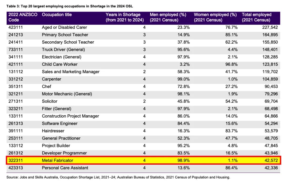![]() 03 根据SEEK 2024年公布的最新数据显示,金属制造工的平均年薪约在$75,000-$90,000;此外,积累一定经验后,部分有经验的金属制造工年薪可高达10.5万澳币。 ![]() 数据显示,金属制造工的就业率在未来5年预测还会增长3.2%。 ![]() 04 ![]() ⭐职业评估Job Ready Programm 第一步:Provisional Skills Assessment(PSA) 完成至少 360 小时的工作或实习。 第二步:Job Ready Employment (JRE) 在JRE开始之日起至少12个月内完成至少1725小时的带薪工作。 第三步:JobReady Workplace Assessment (JRWA) TRA派工作人员到工作地现场评估。 第四步:JobReady Final Assessment(JRFA) 做满1年之后,完成以上的三个步骤, 提交相关的证明文件, 就可以完成职业全评估。 ![]() *审批周期至少3个月(如果包含实地技能测试,则时间更长) 如需了解更多澳洲留学、投资移民、定居、签证等资讯,请联系睿渡教育咨询:4008-277-955版权声明:"睿渡教育咨询”公众号所发布的内容及图片,除了原创类稿件,部分内容来自网络,版权归原作者所有。由于摘用时未能找到作者和原始出处,望谅解。如原作者看到,请第一时间在公众号留言,我们会在后续的文章中声明,如觉侵权,我们会在第一时间删除。 视频号展示 ![]() End 【干货推荐】 直接点击阅读 澳洲移民职业推荐——焊工Welder 2024-10-25 ![]() 澳洲移民职业推荐——木匠Carpenter 2024-10-18 ![]() 澳洲移民职业推荐——中学教师Secondary School Teacher 2024-10-11 ![]() 澳洲移民职业推荐——建设项目经理(Construction Project Manager) 2024-09-27 ![]() 澳洲移民职业推荐——公司总经理Corporate General Manager 2024-09-20 ![]() 澳洲移民职业推荐——电工(Electrician) 2024-09-13 ![]() ![]() |