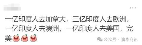 上周,澳洲移民部长Matt Thistlethwaite访问印度,为印度送上了一份厚礼: 印度正式成为澳洲“打工度假计划”(Working Holiday Maker)第50个合作伙伴国,印度人可以通过打工度假签来澳洲。 ![]() 为此,澳洲政府推出了面向印度人的打工度假签证“First Work and Holiday Visa”(subclass 462)。这一签证也是“澳洲-印度经济合作与贸易协定”的重要部分。 ![]() 根据协议,澳洲每年将为1000名符合条件的18-30岁印度公民发放打工度假签证。 该签证有效期一年。签证持有者可以在这一年的时间内来澳洲短暂地工作或学习,体验澳洲的生活。如果符合条件,可以申请延长一年。 ![]() 移民部长Matt Thistlethwaite特别强调,这一签证对工作类型没有任何限制。也就是说,持这一签证的印度人,在澳洲做什么工作都可以。 Thistlethwaite部长说:“我们可能会发现,他们倾向于在餐饮住宿行业、农业、老年护理行业以及澳洲缺人的众多服务行业工作。” ![]() 说好的收紧移民呢? 别急!注意只有1000个名额而已! 2024-2025年度面向印度人的打工度假签从今年10月1日起开放预申请,10月31日截止,注册费25澳元。虽然只有1000个名额,但需求非常旺盛,遭到了“疯抢”,已经有超过40,000名印度年轻人报名,加入了预申请的行列。澳洲政府将采用随机抽签的方式从中选出1000个名额,邀请其正式申请打工度假签。 ![]() 华人移民圈炸锅了! Thistlethwaite部长对印度观众说:“印度人在澳洲备受喜爱。我们即将庆祝排灯节(印度宗教节日)。我返回澳洲后,也会庆祝排灯节。” “这是印度人如何通过你们的节日、美食、艺术和文化丰富澳洲社会和文化的伟大象征。生活在澳洲是一件很棒的事情。” 澳洲民众天塌了, 加拿大你不要笑得太大声 看到这个消息,澳洲的华人网友瞬间觉得天塌了。 毕竟,印度人一个人就是一支队伍,很多人担心澳大利亚即将沦为印度利亚。 ![]() ![]() ![]() ![]() ![]() ![]() ![]() ![]() 还有人表示,1000个打工度假签倒没什么,更该担心的是技术移民,那才是印度移民的大头。 ![]() ![]() ![]() 如果印度移民只是人多,那倒也还好,但问题是,大家都知道印度人的卫生习惯…… ![]() ![]() ![]() ![]() 唉,以后还能不能去澳洲的海边愉快地玩耍了? ![]() ![]() ![]() 不过,这个新闻可把苦印度人久矣的加拿大网友乐坏了,敲锣打鼓、普天同庆,就差放鞭炮了: ![]() ![]() ![]() ![]() ![]() ![]() ![]() ![]() ![]() ![]() ![]() ![]() ![]() ![]() ![]() ![]() ![]() 还有加拿大的过来人分享了经验: ![]() 因为印度人,加拿大和澳洲的网友还十分罕见地彼此谦让了起来: ![]() ![]() ![]() ![]() ![]() 新西兰和德国的网友也混进来幸灾乐祸: ![]() ![]() ![]() 但是,谁都别高兴太早。 以印度的人口基数,哪个国家都跑不了,迟早都得被印度人占领: ![]() ![]() ![]() 印度成澳洲第一大移民来源国 据统计,截至今年6月份,澳洲有高达97.6万印度移民(以出生在印度计)。 按照目前的移民趋势,这一数字现在应该已经超过百万。 在截至今年6月的一年中,印度首次成为澳洲最大的永久移民来源国。 ![]() 冷思考:澳洲偏心谁谁了吗?今天(9月17日)是澳大利亚公民日(Citizenship Day),让我们来看看新公民来自哪些国家,并回顾澳大利亚引入公民身份75周年的历史。要点: