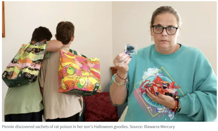 ![]() ![]() 地狱空当当,魔鬼在人间!万圣节当天居然如此凶险,很多家长可能都没意识到… 就在刚刚,澳媒报道了一位妈妈的恐怖经历,她在孩子讨回来的糖里,发现一包致命老鼠药! ![]() 这个药一旦被孩子吞服,后果不堪设想。此前就有小孩因吃了讨来的“糖果”被紧急送医。 家长们切莫掉以轻心,赶紧检查讨来的糖果,警惕里面被人放入大麻、刀片、针钉、玻璃、子弹、芬太尼、冰毒等!NO.1 万圣节糖果竟发现致命老鼠药! 据澳媒报道称,澳洲妈妈Pennie Smith在孩子们讨糖回来之后,就在专心做着自己的事情。 大概是发现了什么好玩的东西,儿子的朋友拿着一块蓝色的类似糖果的东西跑到Smith面前,对她说,“你看,有人把这个东西放到了糖果里,是不是很有趣?” 当她眼神聚焦到这颗“糖果”上的时候惊出一身冷汗,因为这根本不是什么糖,而是剧毒的老鼠药Ratsak! ![]() *什么是RATSAK?被称为Ratsak的毒鼠强品牌含有致命的杀鼠剂Brodifacoum,它是一种引起大规模出血的抗凝血剂,也是世界上最广泛使用的杀鼠药之一。 Smith再三追问之下,才得知这颗“糖”,是孩子们昨天讨糖时得到的。 她立马觉得事情不简单,一身鸡皮疙瘩都起来了, ![]() 她赶紧检查了孩子们讨来的糖果,果不其然,又发现了另一枚Ratsak,这枚包装袋已经被打开,里面的蓝色饵料也不见了... 为孩子们的安全考虑,Smith决定将所有糖果全部扔掉,以免孩子误食被毒药污染的糖果。 ![]() 之后她赶紧将这个消息分享到了当地的一些群组中,并提醒其他父母,一定要仔细检查孩子万圣节讨来的糖果! ![]() Smith还报了警,她说:“有人竟然想要害人,他必须为自己的行为付出代价...” NO.2 这些“危险糖果”你知道吗?万圣节讨糖活动出事,这位妈妈的经历绝不是个例,此前,墨尔本就有一名3岁小女孩因吞服了讨回来的“糖果”,被紧急送往医院,着实让人惊出一身冷汗... ![]() 据悉,这名女孩要到的“糖果”,其实是一种治疗精神分裂症和双相情感障碍的处方药,别说是小孩子,就连成年人被误服后,都会严重扰乱身体的神经系统… 还有这些,都是前车之鉴...... 毒奶糖 一名11岁的小男孩在一个草莓味的奶糖里发现了类似安眠类的药物。 ![]() 藏有针的糖《太阳报》曾将报道过,一位男子在士力架中发现了一根缝纫针,而这块士力架是他的孩子在万圣节收到的。不敢想像如果这根针没有被发现而被小孩子吃下去的后果… ![]() ![]() 一位妈妈万圣节带着孩子要糖回来,却在孩子要到的糖果中发现一根缝衣针,这根长达三英尺的缝衣针藏在一块巧克力中,妈妈表示,她发现包装内没有一点空气时觉得有点奇怪,后来在包装上找到一个洞口。 ![]() 另一位妈妈,发现女儿的糖果包装似乎有人动了手脚。她将女儿巧克力棒折半,发现一根缝纫针,针孔还有细线。她将实物照片上载脸书网页,提醒家长小心查看孩子的糖果。 ![]() 冰毒糖果这些“小糖块”看起来好像绝命毒师中老白制作的冰毒Blue Sky!然而这是一个八岁小女孩在她的万圣节糖果中发现的。 ![]() 剃刀片糖果Press of Atlantic City报道了一则新闻,有人在Tootsie Roll中发现藏有刀片。 ![]() 另一名小孩未经父母检查就把Kitkat巧克力放到嘴里,发现不妥后立刻把巧克力吐出来,才发现巧克力里插着剃须刀片。警方已确认,该糖果的包装确实已被篡改,庆幸的是小孩没受伤。 ![]() 一名少女在她要来的糖果条里发现一枚刀片。所幸在她咬第一口时就注意到有异样,而及早发现,没有受伤。 ![]() 玻璃碎片糖警察接到了一个报案,报案人称在Tootsie Pop中发现了玻璃碎片,而这块糖果是孩子们一起庆祝Beggar’s Night的时候收到的。(跟trick or treating类似的活动) ![]() 子弹糖果据KFOR报道,一名妈妈报警称她在她儿子的Milk Duds里发现四盒子弹,每盒里装有有三枚.22口径的子弹。更糟糕的是,这些糖果是由她儿子所在的幼儿园分发的。 ![]() 钉子糖果有人在孩子们的万圣节糖果中发现了几块金属物体。她说,当时她的儿子和朋友们正在吃糖果,有一个小朋友咬到了一颗钉子并被扎伤了。当他们查看剩下的糖果发现还有几颗糖果里面藏有钉子和订书针。 ![]() NO.3 家长们应注意以下几点:在万圣节前夕,警方就曾发出呼吁,提醒所有的小鬼怪(和他们的父母)在进行“不给糖就捣蛋”(Trick or Treat)活动的时候要注意安全。 ![]() 以下是安全提示: 1、即便是可怕的妖怪,也应该有成年人陪同。结伴捣蛋才有趣,也最安全! 2、“不给糖就捣蛋”的活动应该在天黑前结束。 ![]() 3、只拿密封和包装完好的糖果。 4、就算你是吸血鬼,并被邀请进入,也千万不要进入陌生人的家中。 ![]() 对年幼无辜的孩子都能下得了毒手,所以说,万圣节是人们一年一度扮鬼扮马的日子,但在每天,又有多少怪物披着人皮扮人呢? 总之,无论参加任何活动,人身安全总是第一位的,切勿掉以轻心。 编辑:zhouyu 材料来源:先驱太阳报、News、今日澳洲app等 Ref: https://www.heraldsun.com.au/lifestyle/nsw-mum-petrified-after-rat-poison-slipped-into-12yos-sons-halloween-lollies/news-story/0ef013c98d60cfe77551d694f141655a https://www.sydneytoday.com/content-101944658403059 https://www.sydneytoday.com/content-1024535271298005 END ![]() 精彩视频推荐 · 广告推广· ![]() |