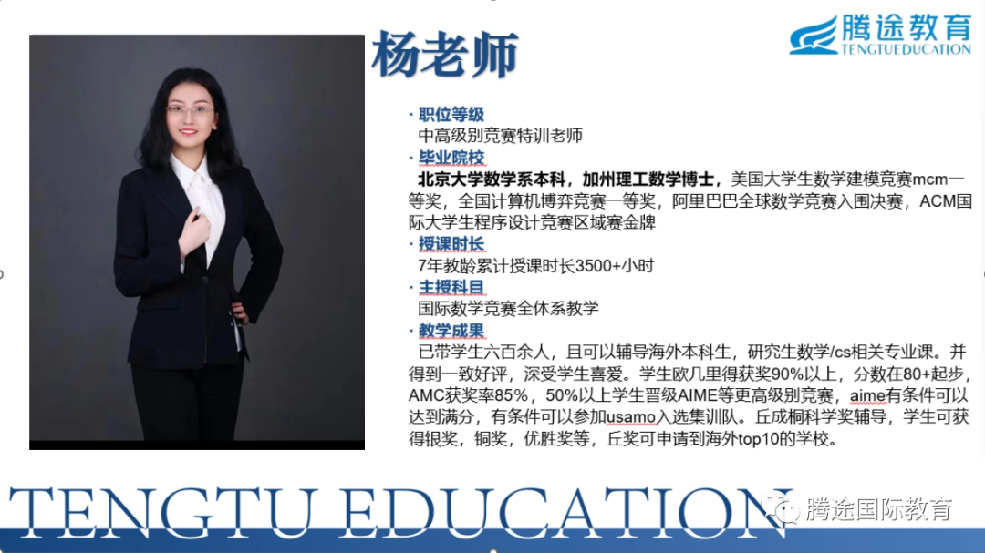 TENGTU EDUCATION![]() 点击蓝字关注腾途国际竞赛咨询 2024年澳洲AMC竞赛已经考完,今年参加考试的考生也感受到澳洲AMC竞赛的难度与魅力!很多刚接触的家长还是不知道澳洲AMC含金量几何?澳洲AMC适合哪些学生参加? ![]() 澳洲AMC历年真题可以添加Candy老师的微信进行了解 ![]() ![]() 具体课程咨询 TEL:18621174612 ![]() ![]() · 澳洲AMC分数线预测· ![]() ![]() 📌国际认可度:作为全球规模领先的数学赛事之一;📌考试设计科学:题目梯度合理,注重实际应用能力;📌覆盖年龄广:从小学三年级至高中毕业生均可参与; 📌低龄段友好:相比AMC8难度更为适中。而且每两个年级为一个等级,设计更加合理。不同年级和基础的孩子都能找到适合的难度。 ![]() ![]() · 什么学生适合参加澳洲AMC竞赛 · 01 年龄维度 澳洲AMC竞赛最低年级组(3-4年级)的考察内容紧贴基础课程,2-3年级的学生同样可以尝试。值得一提的是,赛事提供中英双语试卷,降低了语言障碍。 02 难度维度 虽然考察范围基本限定在年级对应知识点内,但试题设计颇具挑战性,特别是后十题,能够全部攻克的选手凤毛麟角。 03 时间维度 9月底的考试时间恰好处于AMC10/12(11月)和AMC8(次年1月)之前,为准备美国AMC竞赛的同学提供了绝佳的实战机会。 ![]() ![]() · 腾途澳洲AMC数学竞赛课程· 针对想要备考澳洲AMC的学生们,腾途教育特设澳洲AMC冲刺备考课程,课程内容包括澳洲AMC高频考点、重难点突破、重点题型精讲、训练竞赛思维、以及归纳总结解题方法与考试技巧,全面掌握澳洲AMC知识难点,高效梳理竞赛知识体系,提升澳洲AMC竞赛成绩,并带领学生通过考试! ![]() 课程类型:澳洲AMC 适合对象:适合1-12年级学生 班型设置:1对1/小班3-8人 授课语言:中英文双语/全英文 上课形式:线上线下同步进行授课老师: ![]() ![]() ![]() 上下滚动图片查看详情腾途特色: ![]() 特点:为了给腾途在读学员的冲刺备考更好地保驾护航,腾途答疑自习室全天开放,线上线下双管齐下,助教老师全程答疑+监督,帮助学生专注学习。 想要了解澳洲AMC数学竞赛的报名方式和备考建议的家长,欢迎私聊腾途国际竞赛咨询的Candy老师: ![]() ![]() 具体课程咨询 TEL:18621174612 // 关于腾途 // 🔔教研团队 腾途成立于2018年,汇集原校内资深教师和海外名校毕业精英共同组建,毕业院校包括加州理工、美国威斯康星大学、北京大学、清华大学、耶鲁大学、牛津大学等世界一流学府。 ![]() 🔔腾途高分展示: 桃李不言下自成蹊,腾途的学员们在老师们的带领下,共同创造了非常漂亮的战绩! ![]() 🔔腾途学员好评: ![]() 🔔腾途校区环境: ![]() ![]() ![]() ![]() ![]() 具体课程咨询 TEL:18621174612 ![]() -TengTu International Education- 腾途教育以始为终 聚焦国际理科竞赛 将会持续分享竞赛资讯、择校经验、留学规划等 更多资源欢迎关注“腾途国际竞赛咨询” |