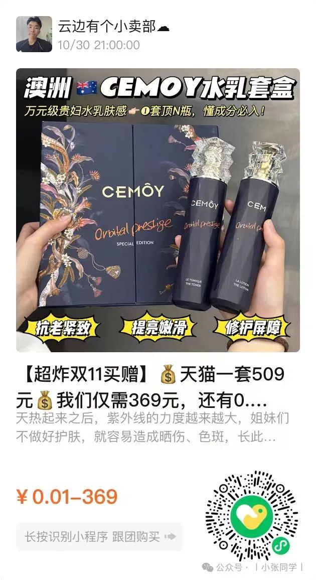 【澳洲🇦🇺Cemoy蓝闺蜜抗老修复水乳套装】 平台团购:369 (直接图一扫码下单即可) (如遇二维码邀请过期,请联系团长) ![]() 【超炸双11买赠】 💰天猫一套509元 💰我们仅需369元,还有0.01换购限量福利 天猫抗老水乳TOP.1【澳洲🇦🇺Cemoy蓝闺蜜抗老修复水乳套装】富含野生蓝藻、法国海洋水、蓝铜胜肽、精纯烟酰胺等15重植萃等豪华配方 1️⃣套顶N瓶👉🏻紧致淡纹➕修护提亮➕深层保湿,万元级贵妇肤感,拥有软滑滋润、饱满通透、平滑光泽的好皮肤,素颜出街无压力 快递 团管理订单管理商品核销 今天 发布 跟团中62天2小时31分39秒后结束 ![]() 天热起来之后,紫外线的力度越来越大,姐妹们不做好护肤,就容易造成晒伤、色斑,长此以往还容易加快肌肤老化的速度,所以基础的水乳也不能乱选! cemoy蓝闺蜜水乳套盒,富含北美野生蓝藻、法国海洋水、蓝铜胜肽、99%精纯烟酰胺、15种植萃精华,从内到外抗老修复,懂成分的姐妹必入! 万元级贵妇水乳肤感,一套顶 N 瓶,集齐< 紧致 + 淡纹 + 修护 + 提亮 + 补水>全部拉满,轻松让你拥有软滑滋润、饱满通透、平滑光泽的好皮肤! |