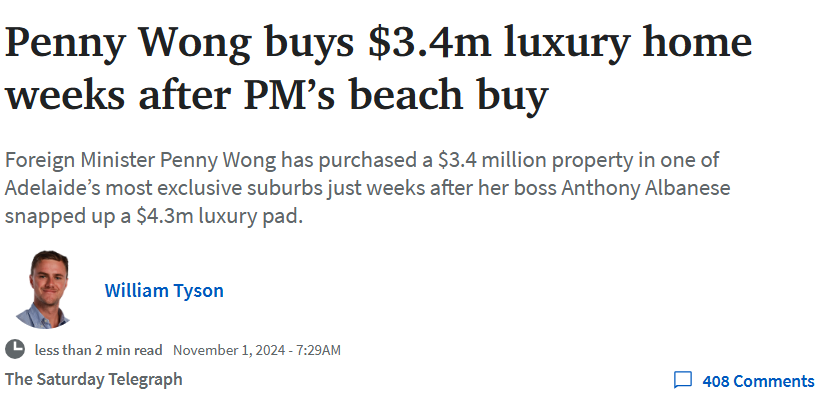 ![]() 就在刚刚,澳媒曝光了一组数据, 悉尼也加入墨尔本行列,房价开始出现下跌! ![]() 另外,澳洲总理和外交部长最近接连被曝出“花费数百澳元购置房产”,引发民众广泛讨论... ![]() 最新数据出炉,悉尼房价开始出现下跌! ![]() 据澳媒报道称,根据最新的CoreLogic数据显示, 在刚刚过去的10月份, 悉尼房价出现微跌, 下跌了0.1%! 要知道,这是自2023年年初以来,悉尼房价首次出现的月度下跌。尽管如此,悉尼中位数房价仍高达148万澳元。 ![]() 此前,澳洲大部分首府城市房价连续上涨,只有墨尔本房价“跌跌不休”。 就在上个月,墨尔本房价下跌0.2%,在过去三个月里,墨尔本房价累计下跌1%,而在过去一年里下跌1.8%,中位数房价降至928,808澳元。 达尔文和首都领地房价也有所下降,分别下跌了1.1%和0.7%。 同一时期,珀斯、阿德莱德、布里斯班房价持续飙升,10月份分别上涨了4%、3.6%和0.7%,年度涨幅分别是22.4%、14.5%和11.9%。 ![]() CoreLogic研究总监Tim Lawless指出,房价下跌主要集中在高端房产,首次购房者和投资市场的房价依然坚挺。 Lawless说,“房价增速放缓伴随着市场上房源数量增加,悉尼和墨尔本的挂牌房源比长期平均水平高出13%。 其它首府城市的中等规模房源也有所增加,其中,珀斯的房价虽然较低,但增幅达到了20.6%,它和阿德莱德以及布里斯班的挂牌房源量比5年前的平均水平低20%以上。” ![]() 人口增长放缓、房源增加,遏制了持续上涨的房价,也影响到了租赁市场。 数据显示,在过去三个月里,悉尼、墨尔本、布里斯班、霍巴特、首都领地的租金均有所下降,分别下降了0.6%、0.4%、0.3%、0.6%和1.5%。 ![]() 此外,根据澳洲统计局最新数据显示,新房供应量可能会有所增加。 今年9月份,私人住宅审批量增长了4.4%,达到2022年8月以来的最高水平。 在过去一年里,独栋屋审批量增长16.7%,公寓审批量累计下降12.2%,但在当月增长了4.7%。 ![]() 消费方面,截至今年9月份,澳洲人均支出已经连续九个季度下降,降至2021年9月以来的最低水平。 ![]() 毕马威(KPMG)首席经济学家Brendan Rynne表示,零售业仍面临严重的人均消费下降,数据显示消费者正在精打细算地生活。 Rynne指出,“这一结果也增加了第三季度经济前景不佳的可能性。” ![]() ![]() 民众过得苦哈哈,澳洲总理、澳外交部长接连买房,网友热议! ![]() 民众过得苦哈哈,澳洲总理和外交部长最近却接连被曝出“花费数百澳元购置房产”,引发网友广泛讨论... ![]() ![]() 就在大约两周前,据澳媒报道称,澳洲总理Anthony Albanese在新州中央海岸的Copacabana购入一套价值430万澳元的海景房,双方在9月就已经签署了合同。 ![]() ![]() ![]() 在随后的采访中,Albanese证实了这一消息,他表示,这处房产拥有壮丽的海景以及悉尼天际线的全景视野,是“悬崖顶上的完美之作”。 他还说,自己未婚妻Jodie Haydon从小生活在这里,为了让她的家人和朋友更近,所以选择买这里的房子作为婚房。 ![]() 而就在刚刚,据澳媒报道称,澳外交部长黄英贤(Penny Wong)在阿德莱德最高档的城区之一,购买了一处价值340万澳元的房产,这将成为黄英贤在南澳的第三处房产! 据称,这处房产拥有宏伟的入口、豪华的餐厅以及被花园环绕的大型游泳池。 ![]() ![]() 黄英贤的办公室证实了买房的消息,称这是黄英贤和妻子Sophie Allouache的新家庭住宅,她们还计划出售黄英贤母亲的房产以及目前拥有的房产。 ![]() 二人接连的买房动作,引发了网友热议: “340万澳元在阿德算是豪宅了吧?!” ![]() “搜了下,Penny的房子应该是在Unley ,算是阿德莱德的一个老牌富人区,主打一个贵,是真的贵!” ![]() ![]() “很容易得出一个结论:澳大利亚的领导也是普通人,领多点薪水而已,他们肯定是觉得房价未来几年可能会上涨,早点买房上车。” ![]() ![]() 澳洲降息预期加剧,但很多人已经“倒在了黎明前的黑暗”,现在有些房主不得不通过卖房以缓解资金压力!对于,澳洲总理与外交部长的买入行为,妈妈们怎么看? - END- 妈妈帮视频号, 每天都有精彩... 2. Naplan历年真题,OC攻略, 3. 27页悉尼奖学金考试攻略等信息, 请扫码后台回复“排名”来查看 ![]() ![]() |