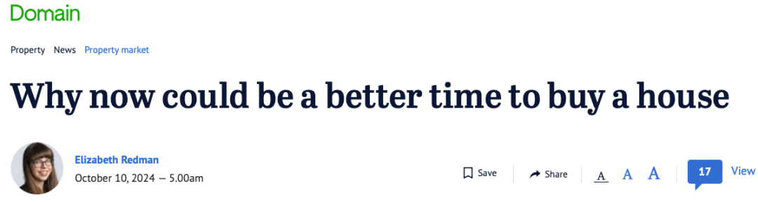 ![]() 专家又来了 高息让澳洲,尤其是墨尔本的房市情绪持续低迷,不过,现在却又越来越多专家提醒澳洲的潜在购房者们:如果你有计划买房,现在可能会是一个好时候! ![]() 根据最新的Westpac-墨尔本研究所消费者信心调查:澳洲潜在购房者对当前是否是购房良机的悲观情绪降至2023年初以来的最低水平。潜在购房者们普遍预计:利率要么开始下降,要么至少不会再继续上升,同时,还预计未来一年房价将上涨。Westpac的高级经济学家Matthew Hassan指出:“购房时机” 这一指标上升至78点,是去年初以来的最高水平,不过,依然处于负面区域(100点一下)。Hassan表示:这一结果远低于长期平均值约120点,虽然有所改善,但依然是相当悲观的水平。人们对加息的恐惧有所缓解,消费者逐渐接受了利率可能更有可能下调而不是上升的想法。 ![]() Hassan还表示:部分改善与地方因素有关,例如昆州和南澳的首套房买家援助计划推动了当地市场情绪,而维州由于对房地产投资者征收更高的税收,情况则相反。调查显示:消费者对抵押贷款利率的预期自7月以来下降了三分之一,同时三分之二的消费者预计未来一年房价将上涨。Hassan说:利率的确会产生影响,但房价和收入同样重要。尽管利率预期正在扭转购房负担能力问题,但改善幅度可能相对有限。尽管是目前是否适合购房取决于个人情况,但Hassan指出:那些能在高利率环境下承担债务的人,比那些因高利率被市场淘汰的人更具优势。目前,延迟购房并不会获得更低价格,但较低的利率尚未出现,无法缩小购房成本的差距。AMP的首席经济学家Shane Oliver表示:尽管调查显示许多消费者认为现在不是购房的好时机,但实际上在高利率和买家需求低迷的情况下,特别是在价格走软的墨尔本和悉尼部分地区,可能是不错的时机。 ![]() 在这些地方,房源上市数量增加,市场逐渐向买方倾斜,现在不失为一个好时机。相比之下,布里斯班和珀斯的情况不同,因为那里的房价还在飙升。Oliver预测:澳洲明年2月可能降息,甚至最早可能在12月,随着通胀率下降,降息周期将进一步提振房地产市场。但历史经验表明,通常需要经历几次降息,市场才会真正启动。他补充道:当开始降息时,买家会对未来更多的降息抱有更高期望,这将最终推高房地产市场。到明年4月或5月,预计房价会有更强的上涨动能,市场周期将逐步恢复。他还表示:随着降息预期的出现,可能不会有大量的房产抛售,这也为房价提供了一定的支撑。如果降息即将到来,卖家可能更倾向于坚守房产。房贷经纪人Chris Foster Ramsay表示:他已经注意到一些购房者在抢在央行降息前购房。他说:聪明的买家正在抢在降息前购房,因为他们担心降息后市场竞争加剧。当被问及应该现在买房还是等降息时,他提醒购房者:若等待降息,可能会面临更高的房价。而且对于单收入家庭来说,想要在市场上具有竞争力是极其困难的。他们通常要在房屋大小或位置上做出妥协,或依靠家庭的经济援助。而双收入家庭往往具备更强的借贷能力,但依然需要现金储备或联邦政府的首付支持。 闲话澳洲 澳洲华人妈妈创业苦与乐 澳洲生活成本危机,普通民众压力山大,墨尔本华人妈妈 Sabarina 却选择了自主创业。她本是墨尔本大学建筑学毕业,一路读到了硕士,后来却选择接手家族生意、自立品牌,这期来和她聊聊其中的苦与乐吧... ![]() ![]() ![]() |