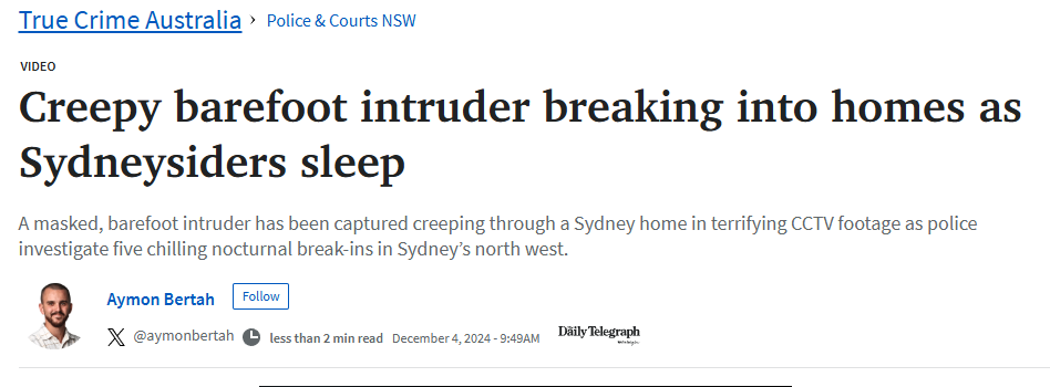 ![]() ![]() 就在刚刚新州警方公布了一系列非常惊悚消息: 有人盯上华人民宅,悉尼很多华人已经中招! ![]() 就在最近一段时间,悉尼多个华人区频繁发生入室盗窃案,针对的很可能就是华人! 警方公布的消息中有一条最惊悚的信息: 被入侵的民宅,发生被窃案时,住户全都在家! ![]() 试想一下,当大家正在家中休息或者娱乐的时候,有一个人悄悄来到了你身边,财物被盗已经是最小的影响了,严重了甚至有生命危险! 悉尼华人被盯上 盗窃案频发 多个家庭损失惨重 新州警方最近发布了紧急消息, 全市范围追查一名男子! 这名男子最近频繁犯下入室盗窃案,已知就有5个起案件与他有关联,而被盗的民宅几乎都在华人区! ![]() 这5起入室盗窃案发生在10月8日至20日之间,看一看发生的地点吧: Ryde区Heath St、Carlingford区Shirley St、Epping区Willoughby St、Castle Hill区Murrung Way、Cherrybrook区Purchase Rd! ![]() 这其中包括了多个华人区...如此频繁且有针对性的入室盗窃案,已经引起了新州警方的高度关注,Sweetenham打击小组的警官正在仔细调查。 在警方的描述中,这名男子不仅有针对性的选择了目标,就连犯罪手法也是十分娴熟。 ![]() 根据监控录像显示,这名男子大多都是从后院翻进民居之中,然后确定民居内的具体情况,也就是住户是否熟睡。 一旦发现条件允许,立刻用工具破门! ![]() 侵入民宅以后,他做的第一件事情就是脱去鞋子赤脚进屋,尽可能不发出任何声响。 有监控录像拍摄到了他行窃的过程,他赤脚走上楼梯,身后明显还有两个人在接应。 ![]() video: https://mp.weixin.qq.com/mp/readtemplate?t=pages/video_player_tmpl&action=mpvideo&auto=0&vid=wxv_3752963294504714245 过程中他还特意向同伴示意千万不要发出声音。 ![]() 走上楼以后,他开始搜刮各种财物,现金、值钱的珠宝首饰包包电子产品等等他全都不放过。 但是他们最主要的目标 还是车钥匙! ![]() 在打包好要偷窃的东西以后,他会快速搜索车钥匙的位置, 拿着脏物开着住户的车子扬长而去! 这五起盗窃案中,除了Epping民居的那次盗窃之外,这名男子都偷走了住户的车辆。 ![]() 这些家庭不仅丢失了很多财物,汽车也被偷了,可谓损失惨重。 眼看着他们作案手法如此娴熟,新州警方担心未来会有更多受害者出现,于是立刻进行追查。 ![]() 最关键的是,这几起入室盗窃案中,住户全都在家,没有人受到伤害已经是不幸中的万幸... 如果这些人再次犯案,更多人的人身安全会受到威胁! ![]() 据警方描述,这名男子大约是20多岁的年纪,中等身材,肤色较深,左小腿有一个纹身。 他当时戴着面罩,穿着黑色连帽衫、灰色手套、运动裤和短裤,以及深浅两色的运动鞋。 ![]() 警方呼吁任何掌握线索的民众,一定要第一时间与Gordon警署取得联系或拨打灭罪热线:180 333 000。 墨小编每天第一时间跟大家分享墨尔本最新的大事小事,记得关注墨尔本生活资讯,接下来那些吃喝玩乐奇闻趣事跑不了的! ▼长按这个二维码▼ 墨尔本新闻抢先知道! ![]() 8000多个家庭遭殃 悉尼零元购愈发猖獗 现在悉尼的犯罪率真的越来越高了,特别是入室盗窃案这种直接威胁人身安全的罪案,更是日渐频繁! ![]() 新州犯罪统计局的最新数据显示,在截至2024年3月的12个月内,新州一共报告了2万多起入室盗窃和民宅入侵案, 创4年来的最高纪录! ![]() 上一财政年,悉尼地区有8000多个民宅被盗...平均每天就要发生20多起... 为了自身安全,大批民众开始安装监控摄像头,以至于闭路电视系统的销量持续升高! ![]() 最夸张的一家豪掷6万澳币,在房子周围安装了30台监控镜头! ![]() 但是安装监控并不能阻止犯罪分子,只能给警方破案提供一些帮助。想要真正解决问题还要彻底降低犯罪率! ![]() 偏偏悉尼的犯罪率居高不下,特别是与盗窃有关的案件! 不只是入室盗窃,过去两年时间里新州的零售盗窃案同样暴增了12.6%,比疫情之前的水平还要高! ![]() 而且悉尼的犯罪分子现在已经开始协同罪案,很多案件都是团伙罪案。 ![]() 这种犯罪行为不仅让零售商损失惨重,还时刻威胁员工和购物者的安全。 经常有新闻报道,犯罪分子在偷窃行为被发现后,挟持路人或者伤害商场安保人员。 ![]() 作为一个国际大都市,悉尼犯罪率飙升这一点已经严重影响了城市宜居性,试问谁会愿意居住在一个人身安全都得不到保证,晚上睡觉还要担心有人入侵自己家的城市呢... 现在华人区又被犯罪分子盯上了,真心希望警方能够拿出应对措施,从根本上解决问题,不要让普通民众的人身安全持续受到威胁! 关于我们 Perfect Lover——作为澳洲新西兰最大的华人婚恋交友平台之一,不定期在各大城市举办各类主题的线上线下交友活动。 ![]() ![]() ![]() 澳洲上万人线上线下首选脱单平台——70后、80后、90后、00后优质单身男女聚集地。 ![]() ![]() ![]() ![]() Perfect Lover公众号 每周都会推荐 优质单身男/女 ![]() 如果你正好在 澳洲或新西兰 如果你 年龄在20-45岁 如果你是 单身 ![]() 脱单添加小红娘微信 ![]() 说出你的要求和条件 为你匹配Perfect Lover! (本文图片均来自网络) ![]() ![]() ![]() ![]() ![]() ![]() ![]() 告诉大家一个了解墨尔本生活资讯的小诀窍。现在只要点亮一个小星星🌟,每天就能在第一时间看到各种最新鲜的资讯!墨尔本哪里打折💰,哪里有好玩的活动🎉,哪里的餐厅最实惠🍰,哪里有同乡聚会👬,还有墨尔本各种政策福利、隐藏技能,全都知道啦! ![]() ![]() ![]() 冰雹!10