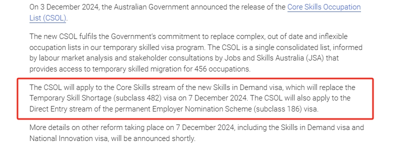 ![]() 前两天,澳洲发布了最新的移民清单。 出现了很多新的专业,几乎可以秒拿PR。 但也有不少之前的热门职业被移除。 另外,澳洲国家创新签证NIV,千呼万唤始出来。 终于以立法的形式确定了。 虽然澳洲对移民态度强硬,但据统计, 澳洲净移民仍未恢复到疫情前水平。 移民清单 澳洲移民局正式发布了全新的 Core Skills Occupation List(核心技能职业清单),简称 CSOL! ![]() 这次的清单从原来的216个职业扩展到了456个职业,范围大幅增加!CSOL上的职业,不仅可以申请即将于12月7日推出的全新雇主担保SID签证,还可以申请一步到位的186雇主担保永居签证。 ![]() 令人兴奋的是,这次新增了许多热门职业,比如市场营销专员、销售代表、人力资源等。连从事房产销售的朋友都迎来了“拿PR的春天”!只要你有相关工作、具备足够的工作经验,并且有雇主愿意担保你,就可以开启移民之路了!除此之外,一些原本就很热门的职业也继续被保留,比如: