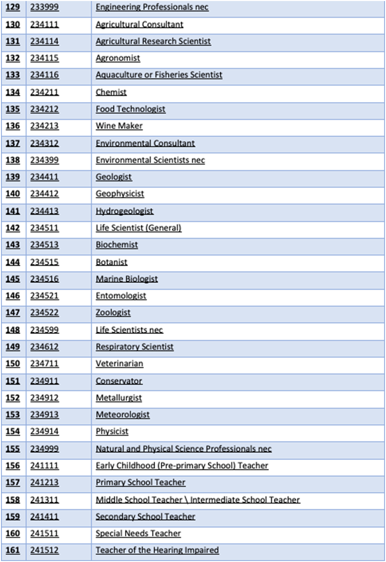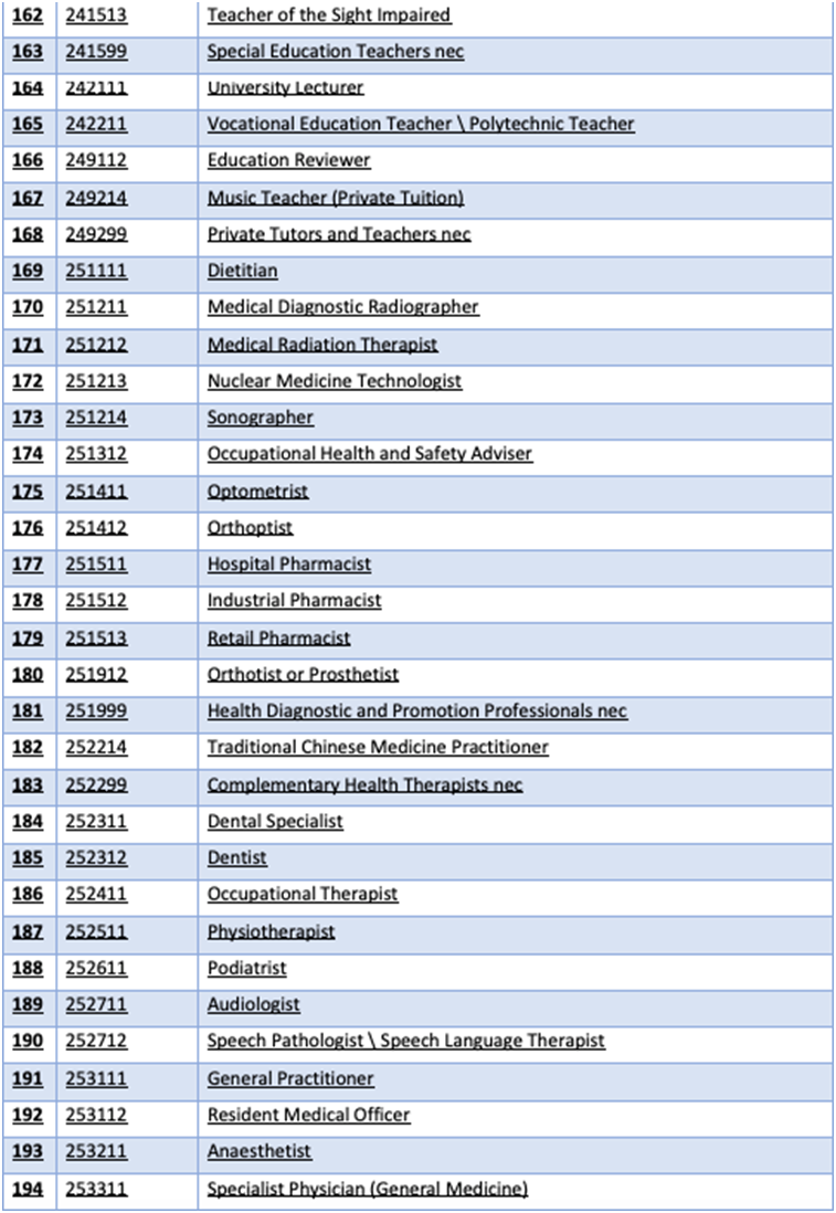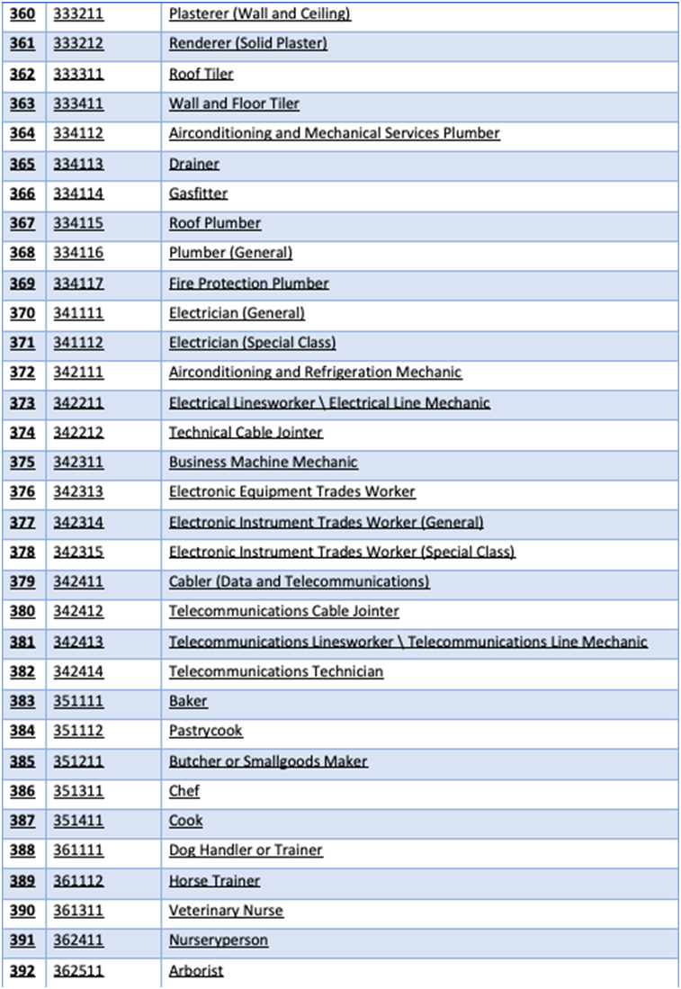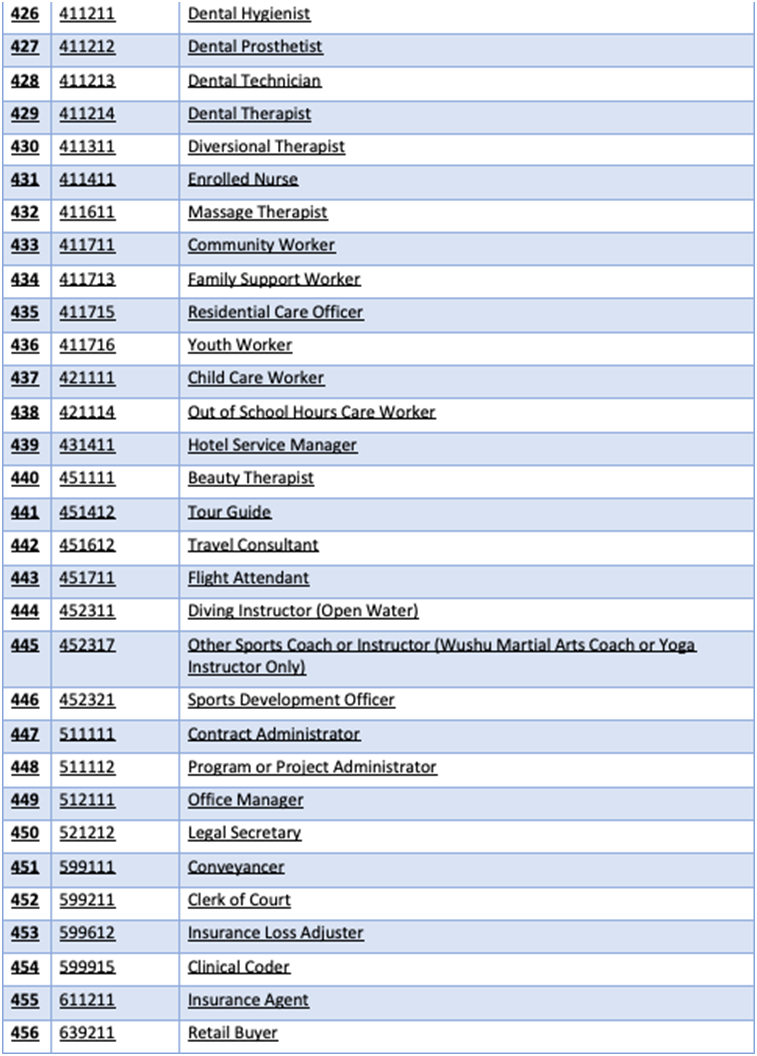 为了帮助陷入困境的建筑业,项目经理、建筑检查员、砌砖工和木工等行业也被列入清单,联邦政府公布的完整CSOL清单涵盖了456种职业。 此外,可申请快速通道签证的职业包括瑜伽教练、空乘人员、记者、美容师和山羊饲养员等。 这次的职业选择可以说是啥都有。 ![]() 澳洲雇主担保类482 TSS签证将会变身SID,SID签证按照年薪划分为三条申请通道: 1. 高薪通道:无职业限制,适用于年薪13.5万澳元以上;2. 核心技能通道:针对年薪73,150至135,000澳元的职业,需符合特定职业列表;3. 低技能紧缺通道:支持特定短期紧缺职业,类似劳工协议。职业清单CSOL适用的是核心技能通道,是SID签证三条申请通道中、年薪在7.315万到13.5万澳元之间的主流申请通道。上述的456个职业的清单也适用于直接一步到位就可以拿到永居的186DE签证。当然有人欢喜有人忧,有一些职业并未纳入新CSOL,未来将无法通过SID或186DE申请,包括: