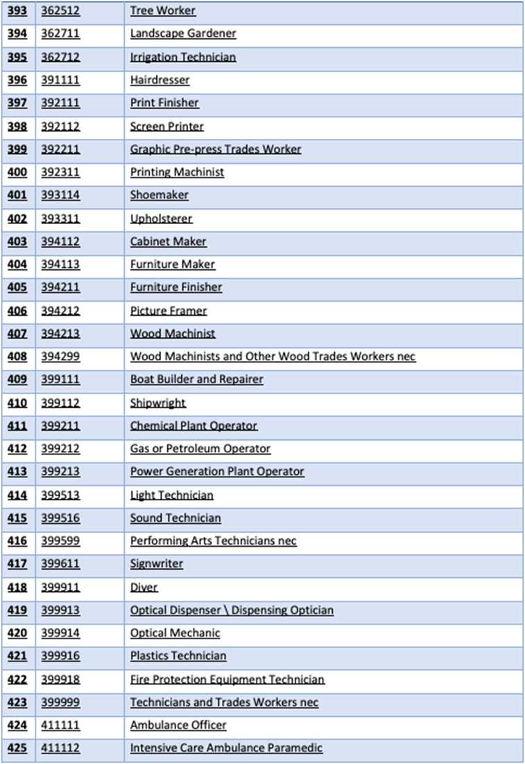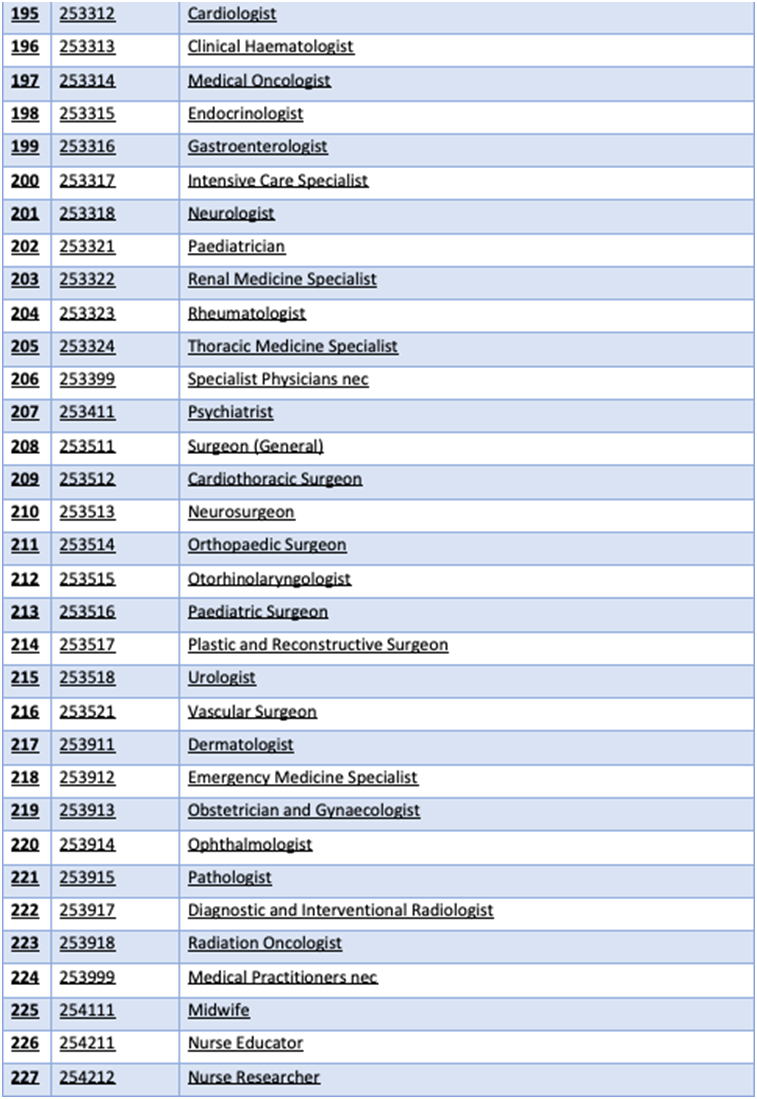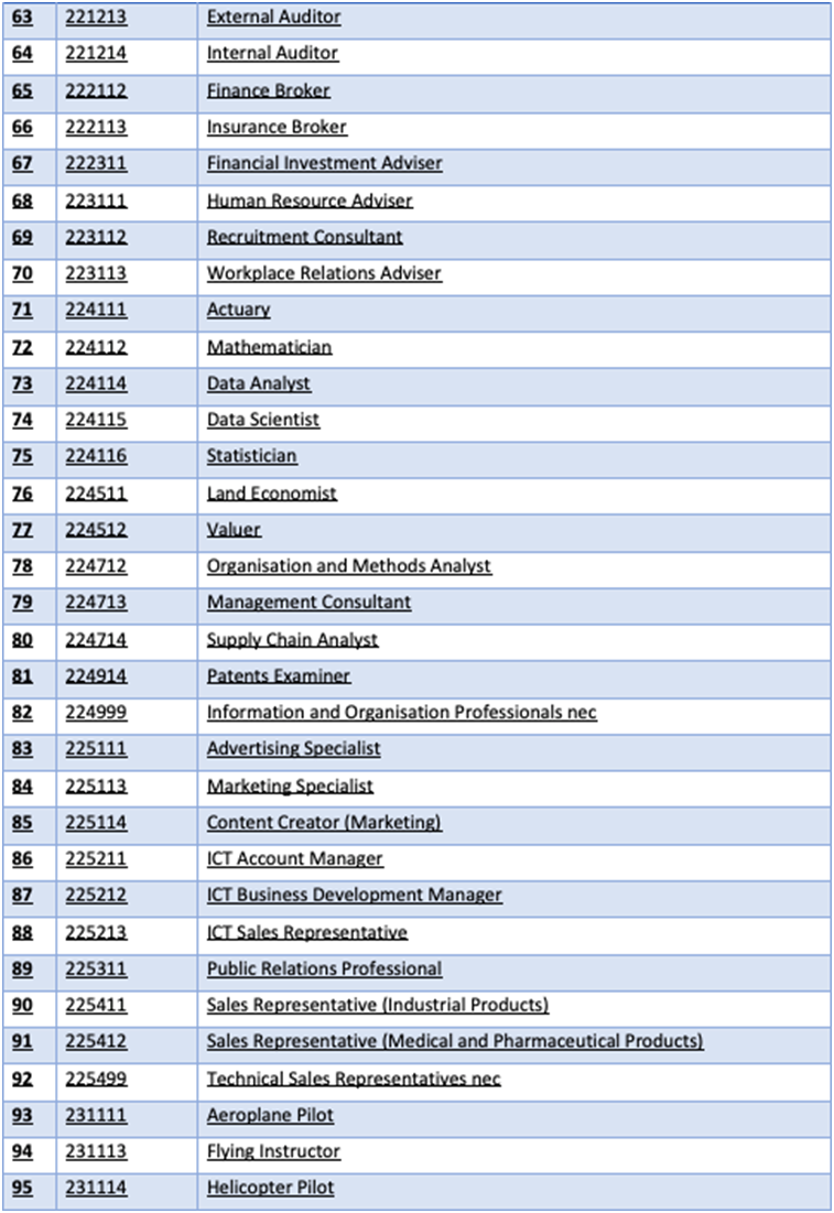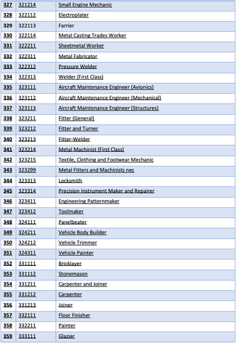 为了帮助陷入困境的建筑业,项目经理、建筑检查员、砌砖工和木工等行业也被列入清单,联邦政府公布的完整CSOL清单涵盖了456种职业。 此外,可申请快速通道签证的职业包括瑜伽教练、空乘人员、记者、美容师和山羊饲养员等。 这次的职业选择可以说是啥都有。 ![]() 澳洲雇主担保类482 TSS签证将会变身SID,SID签证按照年薪划分为三条申请通道: 1. 高薪通道:无职业限制,适用于年薪13.5万澳元以上;2. 核心技能通道:针对年薪73,150至135,000澳元的职业,需符合特定职业列表;3. 低技能紧缺通道:支持特定短期紧缺职业,类似劳工协议。职业清单CSOL适用的是核心技能通道,是SID签证三条申请通道中、年薪在7.315万到13.5万澳元之间的主流申请通道。上述的456个职业的清单也适用于直接一步到位就可以拿到永居的186DE签证。当然有人欢喜有人忧,有一些职业并未纳入新CSOL,未来将无法通过SID或186DE申请,包括: