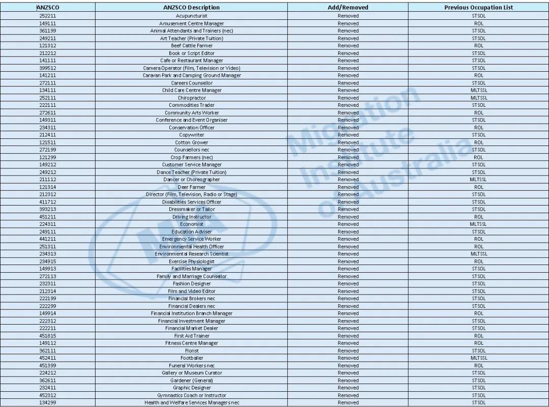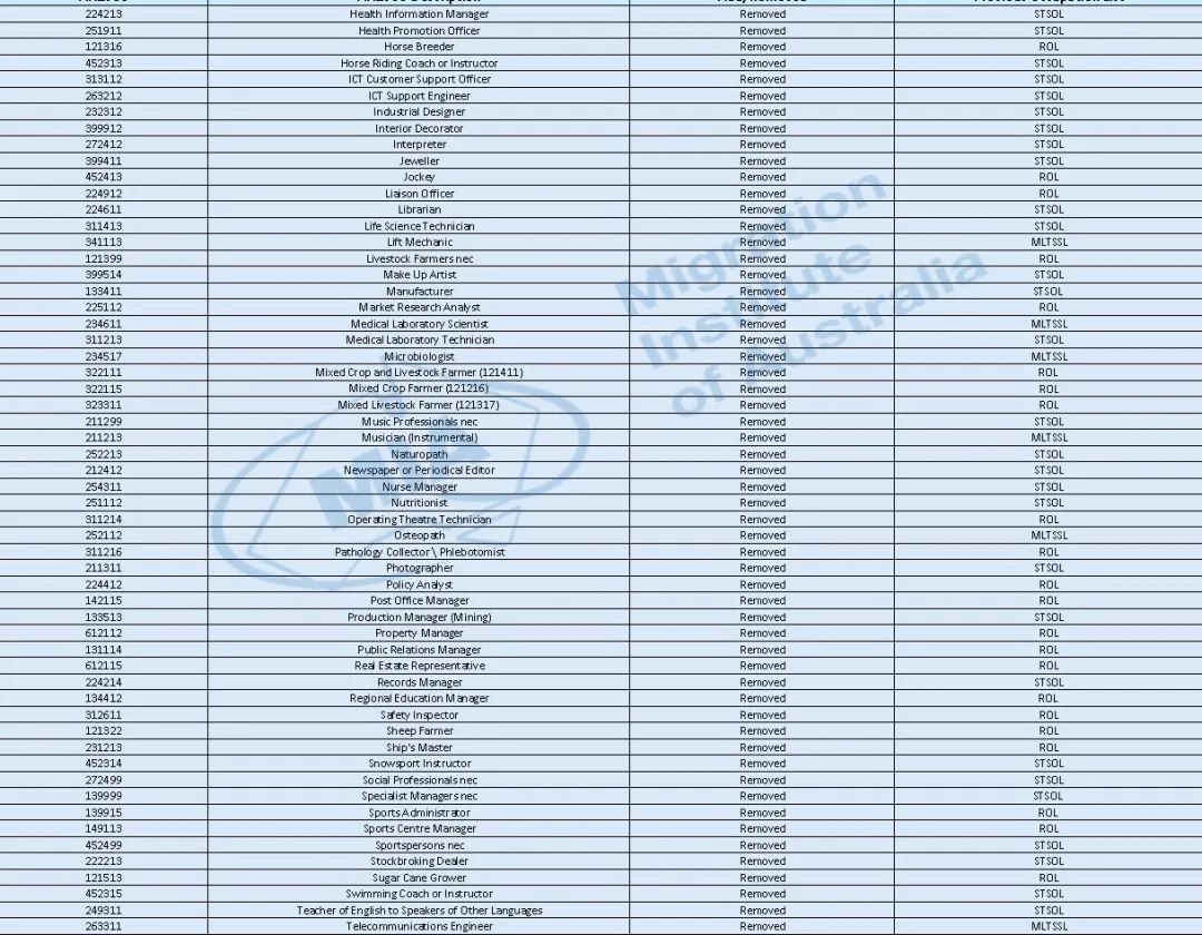 移民的事情一直是需要踏准节奏,左顾右盼的情况下不但增加成本和精力,甚至错过政策风口后可能就是下一个8年10年才有机会了。 本次CSOL列表中被剔除的名单,无论是S短期列表,M中长期列表,还是ROL列表都占有一定的比例。 本文分享下最新的MIA澳洲官方给出的剔除岗位名单,大家可以参考: ![]() ![]() ![]()
