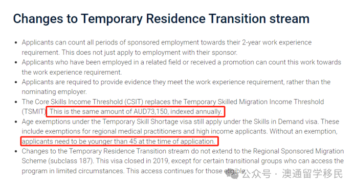 ![]() 12月3日(上周二),澳洲移民局正式发布了全新的Core Skills Occupation List(核心技能职业清单),简称 CSOL!职业由过去的216个苦熬栈道看456个职位!并于2024年12月7日正式取代TSS482雇主大担保签证。目前移民局官网已更新签证内容,今天小编就带大家一起来看看都有哪些变化。 ![]() 1、职业变化 这次的核心技能职业列表新增了很多热门职业,如:市场营销专员、销售代表、人力资源等。连从事房产销售的朋友都迎来了“拿PR的春天”! 只要你有相关工作、具备足够的工作经验,并且有雇主愿意担保你,就可以开启移民之路了! 除此之外,一些原本就很热门的职业也继续被保留,比如: ●各类会计师(包括税务会计、管理会计、审计等); ●大部分的IT和工程类职业; ●建筑和土木相关职业等等。 为了帮助陷入困境的建筑业,项目经理、建筑检查员、砌砖工和木工等行业也被列入清单,联邦政府公布的完整CSOL清单涵盖了456种职业。 此外,可申请快速通道签证的职业包括瑜伽教练、空乘人员、记者、美容师和山羊饲养员等。 这次的职业选择可以说是——啥啥都有! 澳大利亚移民局公布新的核心技能职业清单 2、申请通道 SID签证按照年薪划分为三条申请通道: 1).高薪通道:无职业限制,适用于年薪13.5万澳元以上; 2).核心技能通道:针对年薪73,150至135,000澳元的职业,需符合特定职业列表; 3).低技能紧缺通道:支持特定短期紧缺职业,类似劳工协议。 职业清单CSOL适用的是核心技能通道,是SID签证三条申请通道中、年薪在7.315万到13.5万澳元之间的主流申请通道。 上述的456个职业的清单也适用于直接一步到位就可以拿到永居的186DE签证。当然有人欢喜有人忧,有一些职业并未纳入新CSOL,未来将无法通过SID或186DE申请,这些职业包括: ●会议与活动组织者(Conference and Event Organiser) ●客户服务经理(Customer Service Manager) ●平面设计师(Graphic Designer) ●餐厅经理(Restaurant Manager) ●物业经理(Property Manager) ●房地产代表(Real Estate Representative) ●幼托中心经理(Child Care Centre Manager) 可以说,这次的职业清单极大地拓宽了移民的可能性。如果你符合条件,这可能就是一个绝佳的机会! ![]() 3、申请要求 目前新的SID 申请时需注意: 1)、语言变化: 由过去的雅思总分5分,单科不低于4.5,调整为4个5分,PTE4个36分; 2)、工作经验变化 由过去的3年以上工作检验,降低为1年工作经验,并且除全职工作外,兼职工作经历累计满1年,也可以用于递交申请。但是需要注意,这1年的工作经验必须是5年内的。 ![]() 3)、签证有效期不再有中长期和短期之分 无论是核心技能通道、高薪技能通道还是底薪技能通道,签证有效期均为4年有效。 ![]() 5、永居年龄无变化 新的SID对年龄依旧没有要求,但2年后申请永居时,如果没有豁免,申请时年龄依旧在45岁以下 6、2年后永居时年薪要求: 1)核心技能通道转永居时年薪不得低于73150澳币; 2)高薪技能通道,永居时年底不得低于13.5万澳币的门槛,且不低于同一职业的澳大利亚工人; 3)底薪技能通道,永居时年薪可低于73150澳币。 这里2年的工作经验可以是多段的,每次更换工作时可以有180天的空窗期。 ![]() 6、未来趋势 更多细则还在待定中,CSOL清单内的新增职业,目前部分尚无对应的职业评估机构或明确要求。随着OSCA的全面推行,澳大利亚雇主担保及技术移民政策或将迎来新一轮调整,涉及更多职业与申请细节。 澳大利亚政府的这一系列改革,不仅为雇主提供更灵活的用人选择,同时也向全球人才发出明确信号,欢迎高技能专业人士加入澳大利亚的经济 ![]() END ![]() 澳通 OZ LINK 澳通公司20年海外项目方,业务涉及:澳洲、新西兰、加拿大、英国、美国、以色列、欧洲各国、以色列、日本;澳洲澳通公司(大连公司)欢迎各代理公司和商务部资质公司留学移民公司洽谈合作! 加入澳通合伙人团队!共创出国产业链! ![]() ● 全球代理超过3500所院校,包括美国、英国、加拿大、澳大利亚、新西兰、欧洲、亚洲等各个国家 ● 各国国家留学生超3000多个成功申请案例,免费申请学校offer ● 各国名校中国一级代理 ● 全部澳大利亚公立中学中国地区招生代表 ● 澳洲移民局首批授权电子签证机构 ● 移民局统计保持99.5%澳大利亚签证成功率 ● 办理各国留学陪读/探亲/旅游/工作签证 ![]() 澳通出国留学服务(大连)有限公司联系电话: 座机:0411-62901184 13998871448/13842858466 13795180917/13591768963 微信: 13008713 / 13842858466 13998871448 / 13795180917 国内办公地址: 辽宁省 大连市 中山区 鲁迅路35号 盛世大厦1601/1701 国内网站: hppt://www.aotongchuguo.com/ ![]() 澳洲总部![]() Oz link International pty Itd澳洲境内电话: 0413732358/0425198508 澳洲微信: 994929154/wenfangdan 澳洲公司办公地址: 1002/401 Doklands Dr, Docklands VIC3008 扫描下方二维码关注我们了解更多签证知识![]() 澳通留学移民![]() 澳洲移民家园【文章内容来源于澳洲移民局官网】 |