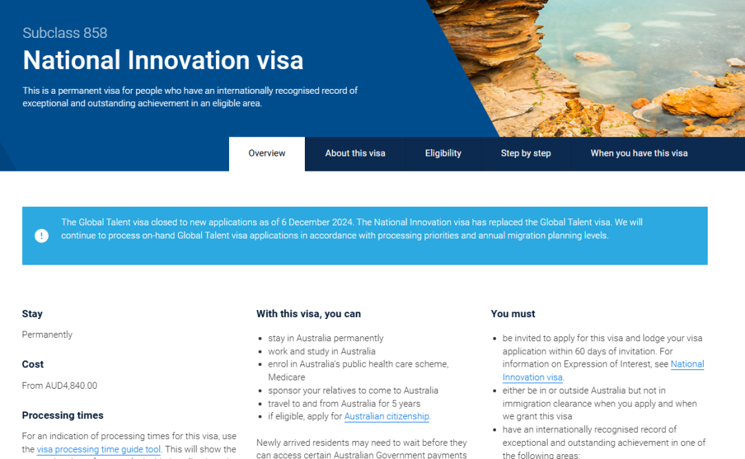 近日,澳大利亚移民政策做出重大调整,发布多项更新,对于全球人才、雇主担保签证、旅游签证等都发出了利好消息。 仅上周内,澳洲官方就连续发布了3条重磅新规: 1、向中国开放10年的旅游签证; 2、NIV国家创新签证正式启动; 3、新482(SID)签证开始生效。 对我国旅游、探亲人士开放十年多次往返签证,全新的雇主担保移民也是增加了200多个职位到总数达到了456个。 同时,与部分签证申请相关的全新的 Core Skills Occupation List核心技能职业清单(简称 CSOL!),也于上周内生效,新增了不少热门行业。 澳大利亚雇主担保签证Skills in Demand Visa(SID) 澳大利亚技术签证计划已于2024年12月7日开始。 SID签证有3个种类: 1、专业技能Specialist Skills Stream: 适用于非技术工人、机械操作员、司机和劳工外的任何职业,且年收入至少达到135,000澳元的高技能移民。 2、核心技能Core Skills Stream: 适用于新CSOL列表上的技术移民,年收入需超过73,150澳元的核心技能收入门槛。 3、劳动协议Labour Agreement Stream: 适用于年薪低于73,150澳元的特定行业劳动力需求,延续482TSS的现有模式。 对于持有482签证的申请人,更换雇主时无需重新计算转186TRT的时间,并享有180天的宽限期寻找新雇主。 同时,签证申请的英语要求统一调整为雅思总分5分,单项不低于5分。 核心技能职业列表(CSOL) CSOL取代以前用于临时技能短缺(TSS)签证的现有多种技能职业清单。 需求技能(子类482)签证取代了临时技能短缺(TSS)签证。 482临时技能短缺签证更名为SID482,工作经验要求也从两年缩减至过去5年内的至少1年全职工作经验,该经验可通过全职、兼职或临时工作累积。 ![]() 新CSOL职业清单 最新名单涵盖职业456个,篇幅过长不在文中逐一展示,需要完整职业清单的朋友,下方扫码进群,发送关键词【清单】领取。 ![]() 欢迎扫码加入澳洲交流群,群内每日推送 澳洲热点资讯、政策解读、房源信息等 国家创新签证(NIV) ![]() 澳大利亚开放全新永久签证项目,国家创新签证(NIV)将取代全球人才签证。 新的NIV国家创新签证取代了原有的858全球人才签证(GTI),同时也整合了之前关闭的投资移民签证。 该项目面向特别有才华的移民。从2024年12月7日起开始接受申请,这是一个专为拥有世界领先技能的移民提供的项目。 这些技能可能涉及先进机器人、量子计算和清洁能源等领域。NIV的有效期为2年。 什么人可以申请? 1、国际研究者:如在领先期刊上发表文章,发表高水平文章和被引用,获得顶级领域奖项; 2、企业家:需获得州/领地政府背书; 可以是成熟的商业模式也可以是新兴企业; 需要有利于具体的提名州的产业结构; 申请人的整体背景要与澳洲经济发展所需要产业相契合。 3、创新投资者:新的NIV签证邀请将更看重投资质量,而不是简单的满足门槛要求,需要能够推动澳大利亚创新发展的项目; 4、体育和创意人才:能够为澳大利亚未来繁荣做出重大贡献的运动员和创意人员 NIV没有年龄限制,英语语言要求也很灵活。接受来自海外或已在澳大利亚持临时签证的人士制作的EOL。 过渡时期安排