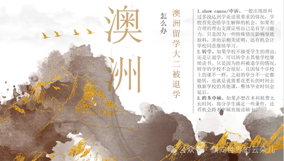 澳洲留学大二被退学怎么办 澳洲留学第二年,因为挂科收到被退学的邮件,假期回国没及时查看邮件,已经过了学校给的申诉截止日期。这对本来愉快过完假期要回澳洲继续学业的学生恍如一个晴天霹雳,雷的不知所措。 澳洲大学普遍有一种政策,如果一学期挂科超过一半,或者重修的课第二次挂科,属于学术表现不佳,这类情况第一次出现有可能是予以警告,第二次出现则有可能会退学。 ![]() 谈一谈解决办法: 1.show cause/申诉。一般出现挂科过多没达到学业进展要求的情况,学校首先会给学生解释的机会,如果有合理的理由支撑证明自己是有学习能力,只是因为一些特殊情况影响导致挂科,并出示相关证明,还有机会让学校同意继续学习。 2.转学。如果学校不接受学生的理由,还是让退学,可以转学去其他学校继续读书。只是因为挂科被退学的情况,转学的学校不会很好,且因每个学校上的课不一样,之前的学分不一定都能转,也就是说需要花更长的时间去修新学校的其他课,整体毕业时间会延后。 3.跨本申硕。如果不想在本科耗费太长时间,部分学生满足一些条件,还有机会跨本申硕直接读硕士。 综上,澳洲留学虽然挂科有重修的机会,但是也不能有侥幸心理,挂科太多也会影响学业,导致中途被退学。 文/云朵儿 公众号/微 信 425059101 |