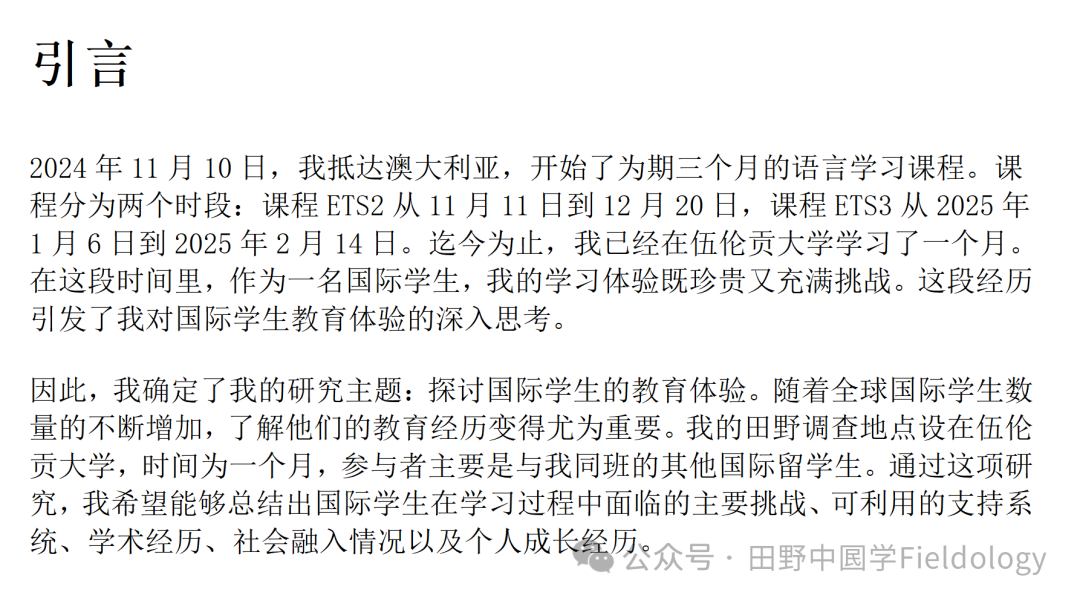 - 编者按 - 熤园青年学人杨思颖以一人之力开辟了《澳洲田野》文化分享。这种精神令人敬佩。《澳洲田野》呈现的文化与我们在【南亚田野】与【东南亚田野】中所呈现的文化有显著的区别,给读者提供了不一样的文化体验与文化启示。这正是熤园学术专注全球田野的价值所在。希望未来有越来越多的青年学者进入世界不同地区,运用熤园学术理论与方法分享更多的文化观察与体验。 ![]() 笔者:杨思颖,拍摄于2024年6月,摄影师:张清 熤园澳洲代表思颖的留学日志002期 2024.12.10 来澳洲一个月啦,一直想写第二篇田野文,也收集了很多澳洲的素材,但一直没有动笔写,真的是因为懒了。我平日里收集了很多澳洲的素材,但一直没有动笔写,真的是因为懒。好在谭老师惦记我,一语点醒了我这个浑浑噩噩的“澳洲留学生”,我怎么可以丧失斗志呢,我可是肩负重任——将田野中国学传道至澳洲的熤园学子啊。于是赶紧在忙完这一天之后,写下这篇日志。 今日照常7.20的闹钟将我唤起,最近精神状态不佳,来澳洲一个月了,慢慢地,对家人的思念也变得不可收拾,在学校的时候还好,有老师有同学陪伴,但回家,到了深夜,就经常会半夜开始翻手机里面的照片,看看家人的照片和视频以解相思之苦。前几天每天都失眠,三点左右睡,七点起床去学校,知道这样不对,但实在是没有办法,于是我想了一些办法对这件事情进行正向干预。 ▎干预措施1.办健身卡既然说到了这里,就给大家介绍一下我的这段经历吧。我办理健身卡的动机前面已经提到了,像是单纯想要正向干预一下我的生物钟,调节情绪。在下课之后再去健身房折腾一两个小时,身体累了,自然也就入睡早些。我是12月4日周三去办理的健身卡,当时我有两个地方可以选择,一个是学校的UNIACTIVE,一个是我所居住的社区的24小时健身房jatts。 ![]() 图为伍伦贡大学的Sports Hub,Uniactive在这个sports hub的旁边 我当时忘记拍Uniactive外景图了,只有这个sports hub的外景,但好在它们的建筑风格都差不多,可以给大家作为建筑外观的参考,这里的建筑特色就是放在环境中,不会感觉很突兀,与中国不同,澳洲这边的建筑对于周围的环境而言,不会造成大的视觉冲击,整体上任然是给人一种居住在自然中的“开阔感”。 ![]() 图中最左边的建筑就是健身房jetts(红色招牌) Jetts是一个24小时健身房,里面只提供健身的器械,收费标准是7刀/每周。 在澳洲,人们习惯以周为收费单位。比如我所在的澳洲的房租和电话费,单间的房租都是300-400刀/每周,汇率目前是4.65,澳洲的电话卡也是按照四周28天收费,你去线下购买电话卡的时候,有28天和360天的这两种规格供你选择,第一天落地澳洲办理电话卡的时候,很不解,这个28的天数是怎么得来的,几周后才后知后觉,原来是4*7=28呀。至于电话卡的另一种套餐天数360天,至今我还没想明白是为什么,等我以后在澳洲呆久了,悟出来了,再跟大家分享。 (1刀可以理解为1块钱,“刀”是澳洲的货币单位,1刀大致等于4.6元人民币) 学校的健身馆Uniactive的收费标准是19刀/每周,但是在我入学的11月,他正在做活动,90刀90天,Uniactive提供提供器械,普拉提,游泳馆,篮球场,网球场。 从收费标准来看,在澳洲,你想要健身,经济门槛真的很低,只要一刀钱一天,这个物价在国内是不敢想的,你想想,在中国,带游泳池和场地的健身房怎么可能一周19刀,折算下来,每月80刀,这要是在中国,收费单位起码应该是百起步,带泳池的价位自然也是水涨船高。有时候想想,“全民健身”哪里是一句口号,低门槛的健身途径应该比口号宣传更具体地落实到每一个社区才行。但这条路任重而道远啦。 ▎干预措施2从我个人的感受切入,选定一个合适的研究主题,探究我这种复杂的情感到底是一个个案还是普遍现象。于是我选择了international students' educational experiences作为我的研究主题,并很快确定好了我初步的访谈框架,大致分为六个部分 1.学生的基本情况,包括性别,籍贯,出生年份,高考年份(如果有高考经历),学制,专业等 2.Challenges Faced:包括但不限于language barriers, cultural differences, and adapting to new educational systems. 3.Support Systems:包括但不限于university services, peer support, and community resources. 4.Academic Experiences:包括但不限于their interactions with faculty, participation in class, and performance in assessments. 5.Social Integration: Summarize how international students integrate socially, including their involvement in extracurricular activities and forming friendships. 6.Personal Growth: Highlight the personal growth and development that international students experience, such as increased independence, resilience, and cross-cultural understanding. 考虑到访谈的对象是国际学生,所以我的访谈提纲准备了中英文双份的,目前为止受访者是两位,一位来自中国,一位来自日本,由于样本量有限,所以迟迟没有成文。但我今天构思了我这篇研究论文的引言和研究设计部分,也算是万里长城走了两三步了。 ![]() ![]() 图为研究论文的引言和研究方法手稿 闲聊分割线 ﹀ ﹀ 闲聊完毕,接下来进入我的课程分享,周二一共有三节课。 8点半,第一节课开始——Lecture,今日讲座的主题是Recommendations in the conclusion 我们这一周的主线任务就是学会写report报告中conclusion这个部分。 结构就是 3. Conclusion 3.1 Recommendation for the requestor 3.2 Recommendation for further research ![]() ![]() 图为讲座的课件,图片来源UOW官网 总