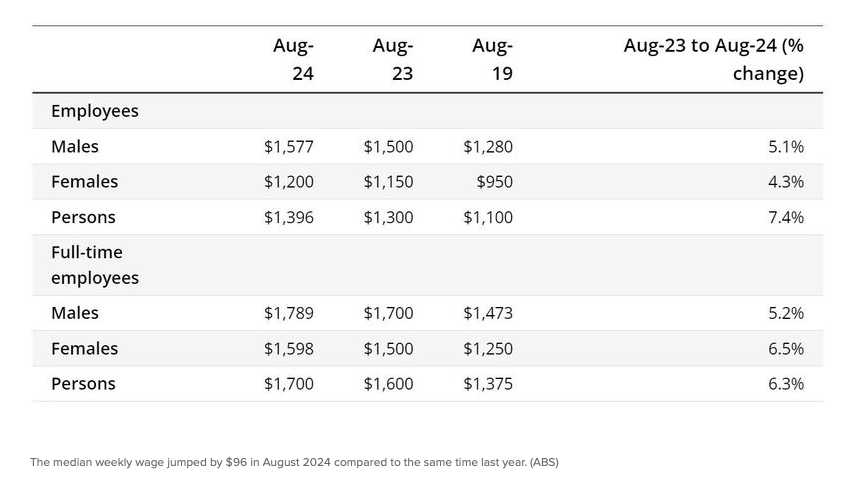 ![]() 你处于什么水平 “普通澳洲人都赚多少钱” 是一个永远都让人好奇的问题。 今天就来看看最最最新的统计数据吧! ![]() 根据最新的就业数据: 目前,一个澳洲普通工作者的平均周薪接近1400澳元。 澳洲统计局(ABS)的数据显示: 自2023年8月以来,澳洲工作者的周薪中位数温和增长了7.4%, 从1300澳元升至1396澳元。 平均时薪也从2024年8月的39.70澳元小幅上涨至40澳元。 ![]() 具体来看: 兼职工作者的周薪中位数为691澳元。 而全职打工人的周薪中位数为1700澳元,比2023年8月的1600澳元增加了100澳元。 性别导致的额收入差异也依然存在。 数据显示: 过去五年间,澳洲女性的周薪增长速度明显快于男性。 然而,在绝对值方面: 男性仍比女性平均每周多赚377澳元。 2024年8月,男性的周薪中位数为1577澳元,而女性则为1200澳元。 ![]() 此外,数据还显示: 现在在家办公的澳洲人的比例略有下降。 目前,36%的工作者日常通常在家工作,较去年减少了1个百分点。 ABS劳工统计部门负责人David Taylor指出: 尽管这一比例从2023年的37%略有下降,但仍比疫情前高出四个百分点。 这表明疫情期间工作方式的某些变化已延续下来。” 与此同时,临时工作正逐渐成为澳大利亚人的就业首选方式。 ABS的统计发现: 目前澳洲75%的临时工表示他们更喜欢这种工作形式。 Taylor解释道: 更高的时薪是近四分之一临时工选择这一就业形式的主要原因。 而对于希望转为非临时职位的临时工而言,最常见的原因是希望获得带薪假期福利或更稳定的就业环境。 来源:age 闲话澳洲 最快十年才能当上澳洲GP一路都在披荆斩棘 从中国医生到海外执业,Henry花了十年,但如果你在澳洲学医,到最后能成为医生,最快也要十年,今天澳洲华人全科医生Henry详细介绍了澳洲医科生的从业路径,以及这条路上的挑战与快乐。 ![]() ![]() |