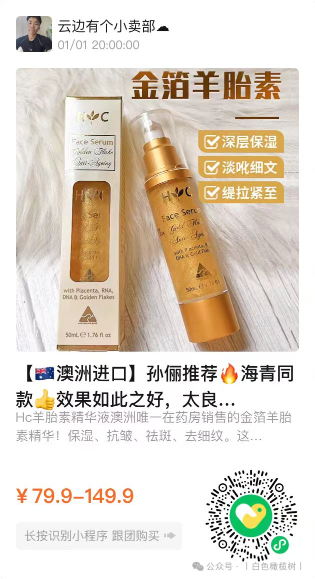 【澳洲小金瓶Healthy Care金箔羊胎素精华液 】团购秒杀:79(直接图一扫码下单即可)![]() 【🇦🇺澳洲进口】孙俪推荐🔥海青同款👍效果如此之好,太良心❤️平价版的贵妇级护肤体验! 澳洲小金瓶Healthy Care金箔羊胎素精华液 50ml ✅主要成分金箔+羊胎素 主打保湿抗氧化、淡斑、减少皱纹、抗辐射、改善老化细胞,使肌肤完美更年轻! 适合所有肤质,特别是大干皮的妹子,千万别错过,抗衰入门款! 📆最新日期28年3月 快递 团管理订单管理商品核销 昨天 发布 跟团中1098天23小时46分36秒后结束 ![]() ![]() ![]() ![]() ![]() ![]() ![]() ![]() ![]() Hc羊胎素精华液 澳洲唯一在药房销售的金箔羊胎素精华! 保湿、抗皱、祛斑、去细纹。 这里面不光含有羊胎素精华,还含有金箔。 羊胎素是抗衰老的灵丹,去细纹也是一流。 金箔是一种独特的抗衰老精华,对皮肤保湿锁水效果非常好!精华很清薄,非常容易推开,吸收很快。关键性价比超高! ![]() ![]() ![]() 它是按压瓶身的设计,既不会造成浪费,也不用担心接触空气变质。 里面是闪闪的金箔✨ 是略浓稠的质地,可以流动,很水润,味道不廉价不含任何人工香料,是玫瑰天竺葵油和薰衣草油的香味,气味很天然。 ![]() ![]() 上脸不油不粘腻,无任何不适感,摸起来很水润,吸收速度按摩一下还蛮快的,我每次都是挤2-3泵 爽肤水后使用。 平时搭配上补水面膜,化妆起皮超有缓解,如果你和我一样,是大干皮,真的可以冲一下,便宜大碗,保湿效果贼拉棒。 ![]() 连有着“国民媳妇”头衔的海清,都摆在化妆台上 用的就是hc家的羊胎素精华啦! 这不,在微博晒出来她化妆间里的驻颜小秘密。 ![]() ![]() 美妆圈也是好评如潮🔥 常混护肤圈的妹子们对这款精华绝对不陌生 它更被网友评为澳大利亚十大必买单品之一。 网络平台上口碑炸裂,无数种草帖亲测安利。 ![]() ![]() HC羊胎素精华液的4️⃣大功效 ★淡化色斑:精华液中羊胎素萃取精华,能够有效改善肌肤的状态,变得细腻光滑、富有弹性。 ★美白保湿:富含胺基酸和骨胶原蛋白成分,让肌肤变得白皙,恢复肌肤的保湿能力。 ★提高肌肤光泽度:加速细胞生长更新,让肌肤变得健康有光泽。 ★抗衰:中和自由基,平衡皮肤的酸碱度,让肤质更稳定,延缓皮肤老化。 ![]() ![]() 讲真,女人一旦过了25岁,时光就不再对你温柔以待 不仅走的悄无声息~ 离开时还不忘送你几许皱纹和暗斑。 并且每次换季时肌肤都要考验仙女们的心里底线! 尤其是干细纹,松弛,色斑,粗糙暗黄⋯ 其实这些都是胶原蛋白流失导至的肌肤老化问题。 ![]() ![]() 好用必买好物,是这款不到百元的好用精华! 澳洲药房最受欢迎的产品,都会放在最显眼的货架里 每次都能看到它,这个颜值很高! 并且是很平价的精华,50ml一瓶。 自己用空两瓶了,每次去澳洲都会买几瓶囤起来。 相比于其他精华来说已经是非常便宜的了。 可以说是每个妹子不可错过的护肤好物! ![]() ![]() 内含羊胎素和铂金精华液 挤出来像果冻一样质地很浓稠,上脸吸收很好。 之前换季脸掉皮还又红又疼,粉底都推不开。 用了这个以后真的完全无压力! ![]() 脸和脖子都可一起擦 女同事用了一个月,抗皱效果不要太好呀! 就连脖子颈纹都有明显改善。 不管是油皮、干皮、敏感肌均可使用~ 早晚涂上厚厚一层,再擦面霜,或者涂完后再敷面膜 第二天起来脸真的又滑又嫩🥰 就是这样做的皮肤真的好了不止一点点! ![]() ![]() 最惊喜的就是使用之后的效果肌肤变得紧致弹润 肤色也有所提亮,连纹路也变得平滑了许多。重“金”打造娇嫩脸庞 羊胎素,一直是抗衰老的代言词。 而澳洲拥有世界上最干净的羊群🐏 它们喝的是矿泉水,吃的是没有任何农药化肥的青草 用羊胚胎活性组织提取的羊胎素 抗衰老成分更安全,嫩肤效果更好! ![]() 羊胎素+金箔 还添加了骨胶原蛋白、DHA甘菊花、维他命等天然成分🍃 这些都是天然护肤原料的佼佼者组合在一起,成就了Healthy Care抗衰老金箔精华液美白、保湿、抗皱、嫩肤于一体。 ![]() ![]() ![]() ![]() ![]() ![]() 提取浓缩后的羊胎素蕴含皮肤细胞所必须的各种营养成分,加速皮肤细胞的蛋白质、脂肪肌动蛋白及胶原按白的大量产生。 可有效缓解皱纹,亮白肌肤长效24小时,保湿从而恢复皮肤的青春、柔软幼滑。 ![]() ![]() ![]() ![]() 【品 名】Healthy Care金箔羊胎素精华液 【产 地】澳洲 【产品规格】50ml 【有 效 期】2028年3月 【发货时效】48小时 【偏远地区】西藏不发(新疆加10元)(甘肃、宁夏、青海、内蒙古加5元) 【每日截单时间】下午6点前的订单可当天发出 【7天无理由退换】不影响二次销售,7天内可无理由退货退款(运费自理) 【24小时售后】快递售后问题,24小时内处理 【发货时间】下单后48小时内 【发货地区】广东省深圳市 【发货快递】中通/韵达 【假一赔十】只做原装正品;假一赔十 【品质保障】提供报关单【甘肃,宁夏,内蒙,东三省,新疆西藏】 ❄️冬天容易冻破,不建议下单❤️ 春秋夏三季没问题👌🏻 |