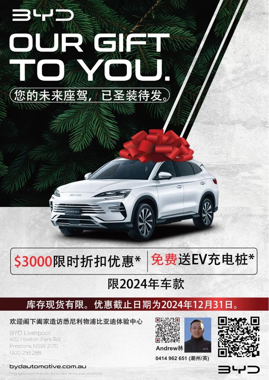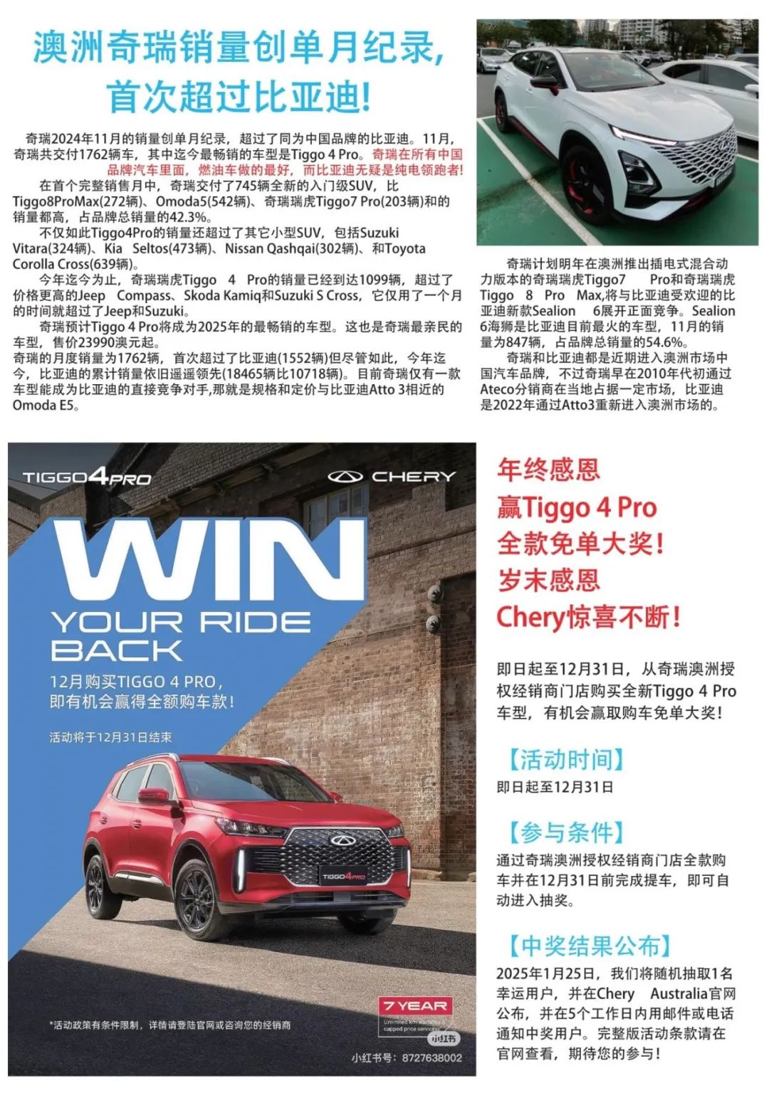 ![]() 长按识别二维码或者点击左下角"阅读原文"即可手机在线阅读本期《澳洲汽车杂志》 ![]() 比亚迪在澳大利亚野心很大 腾势B5(即方程豹豹5)、仰望 U8,目前正在澳大利亚路试,预计今年下半年在澳上市。在出海方面,腾势和方程豹合在了一起,国内不少加盟店也是放在一起卖的。 ![]() 常州二期投产后,常州一二期新增的产能,将部份满足澳大利亚预计上半年引入的两款新车型(一季度海狮07 EV、二季度海鸥)。 2025年1月1日开始,澳大利亚将实行严格的新车排放法规(半年过渡期),下半年澳洲车市或迎来巨变。 在海外,如澳大利亚这类无自主品牌的百万量级汽车市场,比亚迪的目标就是No.1,预计2027年实现。 ![]() ![]() ![]() ![]() ![]() ![]() ![]() ![]() ![]() ![]() ![]() ![]() ![]() ![]() ![]() ![]() ![]() ![]() ![]() ![]() ![]() ![]() ![]() ![]() ![]() ![]() ![]() ![]() ![]() 《澳洲汽车杂志》创刊21年,每周平均10多个新车品牌,几十家车行给您选择,汽车保养维修贷款配件一应俱全,悉尼华人商圈周末免费派发,更多一手澳洲车市资讯及独家原创车评,尽在澳洲汽车网www.autoweekly.com.au及微信公众号:autoweeklyau。澳洲华人买车省钱买车必看 ,简单粗暴有疗效 ![]() 。 重要信息 华人销售精英全家福 购车咨询问答专栏《澳洲汽车杂志》免费派发点 澳洲汽车杂志宣传片 |
