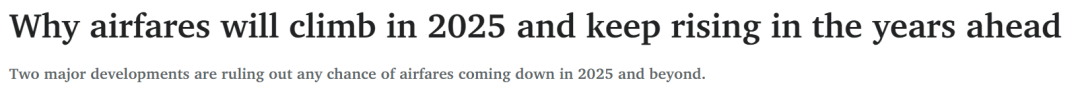 ![]() //前言// 2025年, 澳洲机票价格, 恐将大涨! 低价票优惠票将不复存在, 背后原因竟是...... #01: 澳洲机票价格将暴涨 机票优惠“水分多” 常坐飞机的人都知道,在特定时间订购机票,有时候能捡到大便宜。航空公司也经常搞一些优惠活动,用低价票和折扣促销来吸引客户。 对于生活成本危机中的澳人来说,能薅到航空公司的羊毛,绝对是一大乐事。毕竟大部分机票的价格并不便宜,如果能以优惠价购入,能省不少。 然而,最新报道显示,这种能买到低价票的日子,很可能要一去不复返了! ![]() 图片来源:daily telegraph 最近,一些机票的促销活动,就能看出一些“猫腻”。 以卡塔尔航空为例,其新推出的“特价机票”包括墨尔本至雅典往返1799澳元,悉尼至罗马往返1839澳元,阿德莱德至巴黎往返1949澳元。 商务舱方面,珀斯至德国往返起价7749澳元,布里斯班至德国往返8189澳元,墨尔本至德国往返8179澳元。 新加坡航空也推出了类似的“折扣票价”,从悉尼飞往巴黎,经济舱起价 1706 澳元,商务舱起价 8275 澳元。 相比之下,两年前 Webjet 提供的折扣票价为墨尔本至雅典往返 1482 澳元起;悉尼至伦敦往返 1398 澳元起;悉尼至罗马往返 1619 澳元起。 悉尼至巴黎往返商务舱票价为 7869 澳元起;墨尔本至伦敦往返商务舱票价为 8067澳元起。 今年这所谓的优惠价,实际也并没有优惠到哪里去,和往年比依旧是高价。 据澳媒报道,专家警告称,2025年及未来几年,澳洲机票价格还会持续攀升! ![]() 图片来源:dailytelegraph.com.au 而且在未来,长途航班上享受“无邻座”的机会也将大幅减少,订票难度也会大大增加。 这背后的原因究竟是什么? #02: 机票供需不平衡 背后原因曝光 专家的预测主要源于两大因素——新飞机交付严重滞后,以及航空公司不得不为昂贵的绿色燃料支付额外费用。 从2024年1月1日起,欧洲和英国的350多个机场要求燃料供应中必须含有至少2%的可持续航空燃料(SAF)。 这种环保燃料的价格约为普通航空燃料的两倍,无疑会增加航空公司的运营成本。 更为严峻的是,更加节油的新型飞机的交付时间远超预期,这不仅导致燃料费用居高不下,还限制了航空公司的扩张计划,使得机票供应紧张,价格进一步攀升。 国际航空运输协会(IATA)总干事Willie Walsh表示,飞机交付延迟已经开始对航空公司造成损害,最终影响将传导至乘客。 ![]() 图片来源:dailytelegraph.com.au Walsh指出: “ 由于飞机无法按时交付,航空公司错失了更好地服务客户、升级产品和改善环保表现的机会。 ” 还有一项数据也令人担忧。亚太地区的载客率(即航班座位的填满百分比)已达到85%的历史新高,全球平均水平为83.4%。 对于乘客来说,这意味着在长途航班上享受“无邻座”的机会大幅减少。我们乘坐飞机时,如果乘客较少,不少人能享受到两个甚至三个座位,乘机体验也会提升不少。 随着新飞机交付延后,未来,可能再也没有这种机会了。 与此同时,由于需求强劲,机票价格持续居高不下。 在追求绿色、低碳的未来航空业中,可持续航空燃料(SAF)的强制使用已成为不可逆转的趋势。然而,这一环保举措在为航空公司带来正面形象的同时,也为其增添了不小的成本压力。 澳洲航空已承诺在从伦敦Heathrow机场起飞的航班上使用约8%的SAF混合燃料,且不会向乘客额外收费。 这部分费用由其“绿色联盟”企业支付,包括Woodside Energy、澳洲邮政、BCG、Fortescue、Accenture和McKinsey & Company。 ![]() 图片来源:news 然而,未来几年内,随着SAF强制使用要求的逐步推广,航空公司面临的成本压力也将日益凸显。 尽管SAF的使用对于减少航空碳排放具有重要意义,越来越多的国家开始采用绿色燃料强制措施,但全球范围内SAF的供应仍然严重不足。 2024年,SAF的产量仅相当于航空公司总燃料需求的0.3%,预计到2025年这一比例将提升至0.7%,但这仍然远远不能满足航空业的需求,航空业要实现2050年净零排放目标还有很长的路要走。 从2025年开始,新加坡将引入1%的SAF强制使用要求,印度、加拿大、马来西亚、巴西和日本等国家也将在未来五年内效仿。 澳洲目前也在权衡是否应该实施类似措施,但国内尚无SAF生产能力,这无疑将进一步加剧供应紧张的局面,从而对机票价格产生上涨压力。 一旦类似的措施开始实施,这将是一笔巨额支出,必将会转嫁给澳洲的国际旅客。 所以,虽然目前看来对于中国和澳洲航线的价格可能影响不大,但是随着这个趋势的发展,未来也迟早会影响到需要往返澳洲中国的华人。 #03: 政府需采取行动 未来仍充满挑战 面对SAF供应不足和价格上涨的双重挑战,航空业需要寻找更加可持续的解决方案。 Walsh 表示: “ 制造业 2025 年的新年决心必须是找到快速、持久地解决其供应链问题的方案。 ” IATA的分析显示,要实现2050年净零排放的目标,需要新建3000到6500多家可再生燃料工厂,每年成本约为1280亿澳元。这一庞大的投资需求对于航空业来说无疑是一个巨大的挑战。 ![]() 图片来源:The Australian 在此背景下, Walsh呼吁政府采取行动,提供具体的政策激励措施,以加快可再生能源生产。 他指出,风能和太阳能发电的转型已经提供了一个可以效仿的模式,政府可以通过税收减免、补贴等激励措施,鼓励更多企业投资可再生燃料工厂的建设和运营。 同时,航空公司也需要加强与国际合作伙伴的合作,共同研发更加高效、经济的SAF生产技术,提高SAF的产量和质量,降低