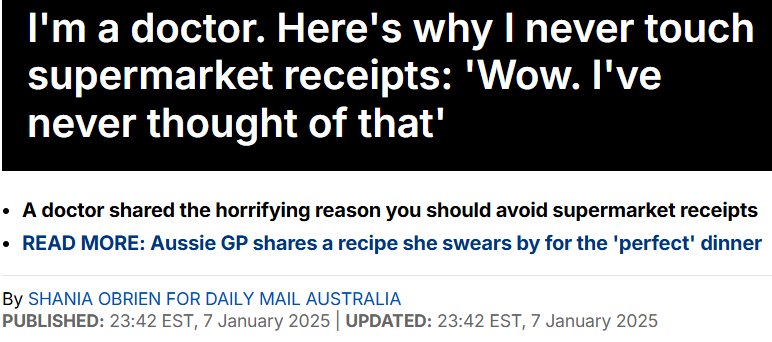 最近,一位医生警告称,超市常见的这种东西最好别碰,尤其是孩子... 一位妈妈表示,由于长期接触这东西,导致她“怀孕四次,三次不良妊娠”,真是太可怕了...![]() 医生警告! 超市这东西最好别碰,尤其是孩子! 原来背后藏着如此可怕的真相... ![]() 据澳媒报道称,最近,一位医生网红@Poonam Desai 公开表示, 她绝不触碰超市小票, 而且她也不允许自己的孩子接触小票。 ![]() 究竟是什么原因,让她如此警惕这些我们日常生活中司空见惯的小票呢? Poonam表示,超市、药店、加油站、餐馆甚至服装店常见的小票,往往是用热敏纸打印的,而这种热敏纸通常会涂覆有有害化学物质—— 双酚A(BPA)和双酚S(BPS)。 这两种物质是一类已知的内分泌干扰物,能够干扰人体的激素水平,增加癌症的风险,甚至可能导致儿童的发育问题。 ![]() 根据墨尔本大学的一项研究显示,孕妇接触高浓度的BPA,可能会增加儿童患自闭症风险。 该研究发现,如果在孕妇的尿液中发现这种化学物质,那么孩子出生后在两岁左右出现自闭症症状的几率会增加三倍以上。 ![]() 更令人震惊的是,有研究发现, 个别小票上BPA的浓度 可能比罐装食品中的BPA 高出1000倍! ![]() 在澳大利亚,BPA(双酚A)并未被禁止,但在2010年,澳大利亚政府宣布自愿逐步淘汰在聚碳酸酯婴儿奶瓶中的BPA使用。 ![]() 我们大多数人认为BPA的暴露来源于塑料水瓶或食品容器,殊不知小票也是一个巨大的隐形威胁。 ![]() 让人更加担忧的是,这些化学物质能够通过皮肤迅速吸收。 特别是当你刚使用过护手霜 或消毒液时, BPA的吸收速度会大大加快。 ![]() 根据密苏里大学的一项研究表明,当人在接触小票前使用了护肤品如洗手液、香皂或防晒霜时,BPA的吸收量会明显增加。 由于超市小票几乎在每个人的日常生活中都出现,长期积累下来的风险不可忽视。 Poonam建议,尽量选择电子小票(通过邮件或短信的形式),以减少接触有害物质的机会。 对于那些无法避免接触小票的人,建议在接触完小票后立刻洗手,并避免使用含有酒精的消毒液。因为消毒液可能会加速BPA的吸收,从而增加健康风险。 ![]() ![]() Poonam的视频让很多网友感到震惊,有不少人表示,自己常常接触小票,这个消息让她们非常担忧。 其中,一位女性网友表示,“我天天都在触碰小票,这真是太可怕了...” 还有人抱怨:“又多了一个我们应该害怕的东西。” 也有人对这一健康警告表示怀疑。一位网友写道:“现在我们连小票都不能碰了吗?” ![]() 有华人妈妈表示,虽然不知道这事真假,但自己是收银,在一天营业额十几万的地方工作, “我怀孕4次,有3次不良妊娠,我和老公都做过检查,不是我们的(身体)原因。后面又怀孕,一怀孕我就没有上班了,只是足月的时候上了半个月班。 真是太可怕了,以后我都要戴手套。” ![]() ![]() 澳妈提醒! “千万别给孩子买Kmart这东西,有毒!” ![]() 除了热敏纸,有位澳妈此前警告家长,称Kmart的一款产品也具有一定的危险性, “家长们,请不要给孩子买这东西!” ![]() 据澳媒报道,这位妈妈在TikTok视频中提醒说,“我再也忍不住了,我要提醒家长们,请不要给孩子买这东西,有毒!” ![]() 这位妈妈所说的就是Kmart的热敏打印相纸,虽说它们家的相机号称8岁以上的孩子可以使用,但这位妈妈认为, “这些可爱的相机使用的热敏纸中,含有高浓度的BPA(双酚A),让孩子接触这种东西很危险...” ![]() 前面我们提到,BPA可能会干扰人体正常内分泌,增加癌症的风险,甚至可能导致儿童的发育问题。 而因为这些潜在风险,许多国家和地区已对BPA的使用进行了限制或禁止。 ![]() 不过,对于普通人来说,也不必恐慌。 根据Food Standards Australia的信息,关于BPA可能引发健康问题的担忧已经存在多年,只不过,当全球食品安全机构审查BPA时,他们通常得出结论认为, “在普通人群能够接触到的水平下,不存在安全问题。” ![]() Kmart Australia对于这位妈妈的担忧回应称,Kmart所有产品都符合澳大利亚的相关规定,该产品不存在任何“危险”, “我们有相关的流程来确保销售的产品对客户安全,并且遵守澳大利亚法规中要求的监管和安全标准,该产品不存在BPA合规性问题。” ![]() ![]() ![]() 对于这两位妈妈的提醒,大家怎么看呢? - END- 如果你想知道 1. 最新墨尔本中学、小学排名情况, 2. 27页墨尔本私校奖学金考试攻略, 3. NAPLAN历年真题 请扫码后台回复“排名”来查看 ![]() 社群矩阵, 各种学习群在等着你,抓紧上车啦 ![]() |