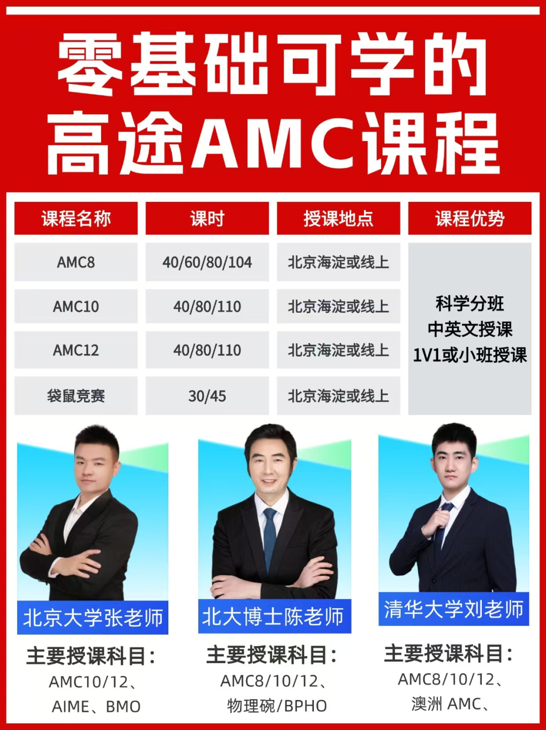 ![]() ![]() 咨询AMC寒假课程 扫码领取AMC历年真题 微信/电话 :18519353304 大家一谈AMC竞赛,首先想到的就是美国AMC数学竞赛,但是今天咱们主 讲澳洲AMC数学竞赛。 美国AMC vs 澳洲AMC 首先,二者的国际认可度和含金量都很高。 ![]() 美国AMC 8/10/12分别适合8、10和12年级以下的同学参与,而澳洲AMC从3到12年级都可以参加,参赛年龄段更广。 从难度上来说,美国AMC>澳洲AMC>袋鼠竞赛。 因此,对于想锻炼数学思维,感觉袋鼠的题目太简单,而美国AMC又略感吃力的小学段孩子们来说,澳洲AMC是最合适的! ![]() 低龄牛娃必看的澳洲AMC 澳大利亚数学联合会(Australian Maths Trust)简称AMT,每年为澳洲选拔国际数学奥林匹克(IMO)的国家代表队。 ![]() 作为全球历史悠久的金牌校际数学测评,澳洲AMC吸引了来自32个国家、1600万多名学生参与。 01 适合人群/DIVISIONS