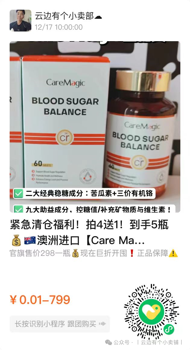 紧急清仓福利!拍4送1!到手5瓶💰🇦🇺澳洲进口【Care Magic血糖灵】安全无副作用,糖值稳稳的!新西兰澳洲大药房同款!官旗售价298💰 澳洲TGA认证⚠️安全放心 🔺二大经典稳糖成分:苦瓜素+三价有机铬 🔺九大助益成分,控糖值/补充矿物质与维生素 🔺知名学刊认证,不含二呱不伤肝 四倍增效❤1-2瓶调控指标,3-6瓶改善身体,7-10瓶指标稳定