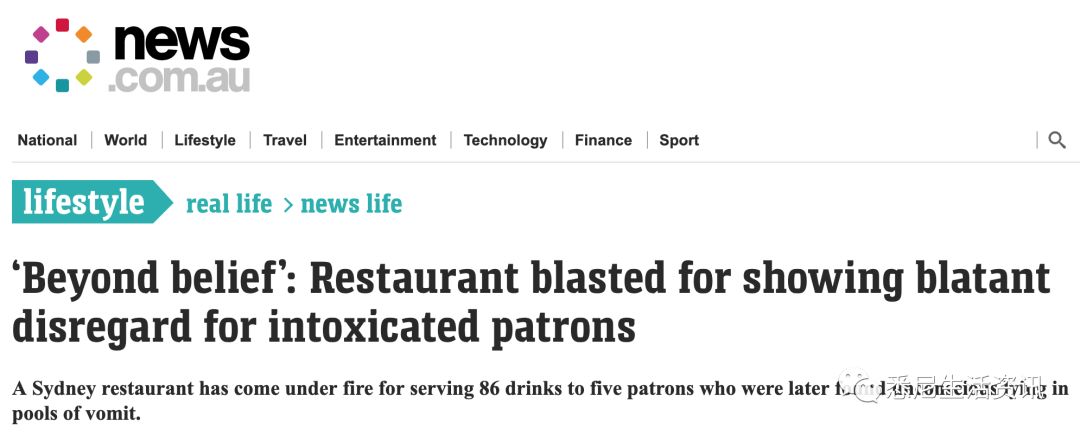 ![]() ![]() 位于悉尼CBD的Haru Fusion Soju,是一家广受亚洲人欢迎的餐厅,他们通常下午5点开门,营业到凌晨4点, 因此特别多客人会来这里宵夜喝酒。 ![]() (图片来源于网络) 前些日子,他们店门刚打开,一群不速之客却突然涌了进来,神情严肃地告诉他们, 你们店被警告了! 还有可能会被处罚! ![]() (图片来源于网络) 店员面面相觑,赶紧叫来了店长,店长一看来人出示的工牌,哎呦这不是新州酒精管理局(The NSW Independent Liquor and Gaming Authority)的吗! ![]() (图片来源于网络) 店长立马就陪着笑说大人你搞错了吧,小店本分经营啥也没干,怎么就被警告了呢? 来人反问道,去年10月10号,你们是不是来了一桌客人庆生,他们还喝了很多酒啊? ![]() (图片来源于网络) 店长心想每天这么多人来往,一下子怎么能想起来…… Perthlife珀斯生活资讯每天第一时间跟大家分享西澳最新的大事小事,记得关注珀斯生活资讯,接下来那些吃喝玩乐奇闻趣事跑不了的! 👇长按这个二维码👇 西澳新闻抢先知道! ![]() 但听到来人提到喝了很多酒,这才突然记起,前阵子确实有一群人来店里喝了超久,他们店都赚翻了……这才将信将疑地点点头。 ![]() (图片来源于网络) 来人说,这就没错了!你们摊上事了!快把你们的营业记录和监控通通翻出来! 店长一听更蒙了,普通招待客人咋就摊上事儿了呢? ![]() (图片来源于网络) ![]() 客人烂醉,餐厅要负责! 通过营业记录和监控录像,新州酒精管理局的调查人员这才把事件还原出来。 10月11日,正好是一个朋友生日,于是一行5人,三男两女便开心地相约CBD里的这家韩国餐厅聚会庆生。 ![]() (图片来源于网络) 这里的韩国烧酒特别好喝,从16-53度都有,任君选择。 他们聚会非常开心,吃饭喝酒不亦乐乎,连时间都忘了, 吃喝足足6个小时, 这期间所有人都喝多了。他们根本记不清自己喝了多少酒,又都是多少度的,只知道身旁的人在不断地叫服务员再来一打酒, 就这么一杯接一杯地喝下去了。 ![]() (图片来源于网络) 期间,一个男生喝得头晕,没站稳摔倒在了地上,结果还是拍拍屁股笑着说没事,就又站起来继续喝。 ![]() (图片来源于网络) 到了最后, 其中一个女生喝得晕了过去, 还是被另外两个男生朋友抬出店的! ![]() (图片来源于网络) 当时已经到了深夜,大家出了店,谁也没管的上谁,喝得烂醉的人就这么散了。 然而到了凌晨1点25分, 悉尼警察却突然接到报案, 是路边作业的工人报告警察, 说在路边看到两个醉死的男女! ![]() (图片来源于网络) 警察立马赶到现场,看到两人就这么躺在路边, 旁边路上和他们身上 全都是呕吐物, 显然是喝吐了直接晕死过去! 警察忍着呕吐物的恶臭,探了探他们发现还有生命迹象,就连忙找来救护车往医院里送去。 ![]() (图片来源于网络) 竟然喝得晕死在路边的呕吐物中!这得喝了多少!患者清醒后,警察这才从他们口中得知, 原来他们都是在餐厅里喝成这样, 却没有人管被丢下的! ![]() (图片来源于网络) 事关重要,警察赶紧上报了新州酒精管理局,让他们快点管管这种不负责任的商家! ![]() News.com.au: 餐厅因为给醉酒客人卖酒而被罚! ![]() 澳洲的酒精管制特别严格! 通过调查,新州酒精管理局的工作人员都惊呆了! 这一桌5人, 竟然在那天晚上 连续喝了6个小时! 一共86杯烧酒! 从16到53度都有! 如果不是有工人路过发现,那么晕倒在路边的两人就很有可能会 因酒精中毒或 呕吐物堵塞气管而导致死亡! ![]() (图片来源于网络) 而新州酒精管理局更是把这次事件的矛头,直指给5人无限量卖酒的韩国餐厅! 跟东亚的酒文化不同,澳洲对酒精控制有着严厉的规定。 在中日韩三国中,喝酒是给面子,喜庆的事情,似乎喝得越多证明感情越深,因此很多人习惯在饭桌上互相劝酒,饭店餐厅也很乐意给顾客无限量提供酒水,毕竟酒水是重要的营业额啊…… ![]() (图片来源于网络) 然而在澳洲,如果醉酒者因为醉酒而发生事故,无论是劝酒的人还是卖酒的餐厅,都要负上责任! ![]() (图片来源于网络) 对于这家韩国餐厅此次不负责任的售酒行为,新州酒精管理局对他们提出了严肃警告,一旦警告超过三次,那么这家店将有可能会被强制缩短营业时间,被吊销他们的卖酒执照, 甚至有可能直接吊销营业执照! ![]() ![]() 新州酒精管理局规定,酒类经营者如果给酗酒者卖酒,将会面临警告和处罚! ![]() ![]() (图片来源于网络) 喝酒从来都是 小酌怡情,暴饮伤身。 喝醉酒闹事的新闻相信大家都看过不少,而这次事件的主角们虽然喝醉了没有闹事,但最终却差点断送了自己的性命,就连卖酒的餐厅都一并背责。 所以,无论是为了自己还是为了他人,无论是自己喝还是看朋友喝,都要记住, 喝酒还是要有度, 千万不要以身试法! ![]() (图片来源于网络) 关于我们 Perfect Lover——作为澳洲新西兰最大的华人婚恋交友平台之一,不定期在各大城市举办各类主题的线上线下交友活动。 ![]() ![]() ![]() 澳洲上万人线上线下首选脱单平台——70后、80后、90后、00后优质单身男女聚集地。 ![]() ![]() ![]() ![]() Perfect Lover公众号 每周都会推荐 优质单身男/女 ![]() 如果你正好在 澳洲或新西兰 如果你 年龄在20-45岁 如果你是 单身 ![]() 脱单添加小红娘微信 ![]() 说出你的要求和条件 为你匹配Perfect Lover! (本文图片均来自网络) ![]() ![]() ![]() ![]() ![]() ![]() 西澳人都爱看的 珀斯生活资讯 ![]() 澳洲女士半夜遭重创,老鼠正在啃食她的眼球!婴儿
