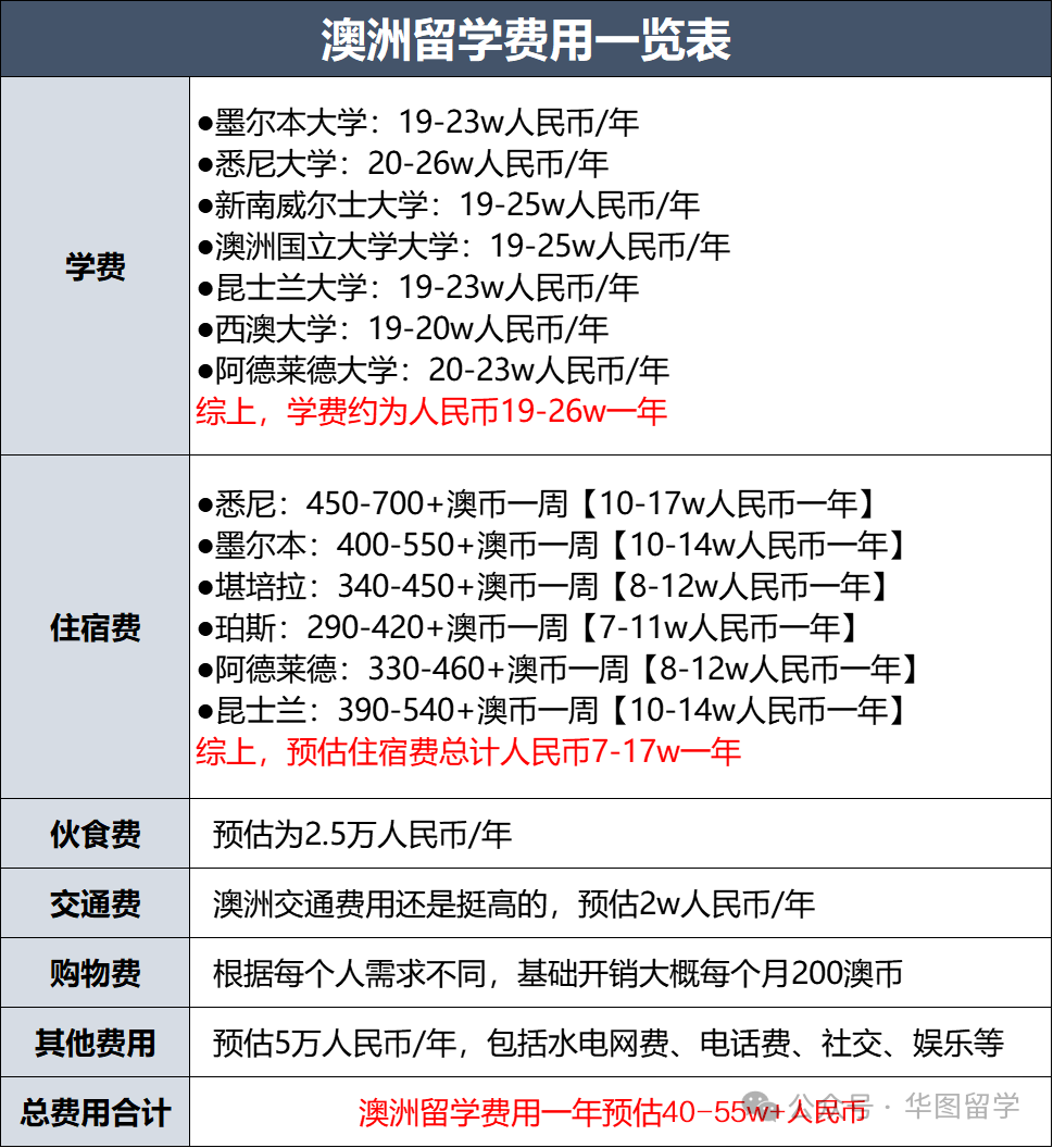 ![]() 澳门回归25周年 ![]() 02 澳洲本科申请方式 澳洲本科的申请路径多样,以下四种方式适合不同背景和需求的学生。 △ 用高考成绩申请大多数澳洲大学接受中国高考成绩申请本科,除了墨尔本大学外。申请优势在于节省时间,可以直接进入澳洲大学的大一年级开始学习,无需经过额外的预科或桥梁课程。👉适合对象:高考成绩出色,语言成绩优异的高中毕业生。👉本科申请要求:学术要求:高中毕业,高考成绩60%-90%不等;语言要求:大部分专业雅思6.5-7.0。 △ 国际高中直接申请国际课程如A-level、IB、AP等课程可以直接申请澳大利亚本科,部分学校要求提供AP课程成绩和美国高中毕业证书。优势在于直接入读本科,无需额外的预科或语言课程。👉本科申请要求:A-Level成绩要求CCC-AAAIB成绩要求25-37分AP成绩要求GPA:3.0-3.7及其以上👉语言要求:托福88+或雅思6.5+ △ 读预科+本科澳洲预科课程为有意留学澳洲的学生提供一个理想的过渡阶段,帮助适应新的学习环境和文化氛围。如果不参加高考,可以选择读一年的预科,预科课程包括语言课和专业基础课;预科课程的入学要求相对宽松,只需要完成高二的学习,不需要依赖高考成绩。👉适合对象:高二完成,或高三在读/完成的学生👉预科申请要求:学术要求:高二或者高三完成,平均分60-90%语言要求:雅思5.0-6.5 △ 国际大一+本科国际大一课程(大一文凭课程或快捷课程)将预科和大一课程合并在一年内完成,适合未参加高考或不想提供高考成绩的学生。课程安排紧凑,要求学生具备较强的语言能力和学习能力,学生在完成大一快捷课程后,可直接进入大二,大大节约时间和费用成本。👉适合对象:高中平时成绩名列前茅,想要更快速完成本科学习的学生。👉入学要求:高中毕业,高中三年成绩60%-90%;或高考成绩60%或67%(根据具体院校要求而定);雅思成绩5.5-6.0分,部分课程6.5分。1999-2024 ![]() 澳门回归25周年 ![]() 03 澳洲留学费用 综合考虑学费、生活费以及杂费,澳洲留学一年的平均费用大概在40-55万人民币左右。不同专业、不同院校及不同的生活方式,费用也会有很大的差别。 ![]() 1999-2024 ![]() 澳门回归25周年 ![]() 04 澳洲本科留学申请材料 在申请澳洲本科课程时,准备齐全的申请材料是成功的关键。以下是您需要准备的主要材料清单,帮助您顺利完成申请过程。 1、申请表 每所大学都有自己的官方申请表,通常可以在学校官网上下载并填写。确保填写的信息准确无误。 2、身份证明 护照复印件或扫描件,包括护照首页、签证页(如适用)及签证授予信(如已获签证)。对于中国学生,可能还需要提供身份证的复印件。 3、学历证明高中毕业证书及学位证书(中英文对照),以及高中阶段的成绩单(中英文对照,需学校盖章)。如果在国外就读,还需提供相关的学历证明。4、英语成绩证明如雅思(IELTS)、托福(TOEFL)等成绩单。5、推荐信通常需要两封推荐信,建议一封来自学校老师,另一封来自实习或工作单位的推荐人。推荐信应突出申请者的学术能力和个人素质。6、个人陈述一份详细的个人陈述,介绍自己的学习背景、个人经历、职业规划等,展示您的动机和适合该专业的理由。7、作品集(如适用)对于艺术、设计等专业,可能需要提交作品集,展示您的创意和技能。8、其他证明材料包括社会活动经历、获奖情况、研究计划等,这些材料有助于提升申请者的竞争力,但并非所有专业都要求提供。9、申请费大多数澳洲大学在提交申请时会收取一定的申请费用,具体金额因学校而异。 注意事项 ●提前准备:确保您有足够的时间来准备这些材料,尤其是需要翻译和公证的文件。 ●保持联系:在申请过程中,保持与学校的联系,及时了解申请状态和任何补充材料的要求。 ●关注截止日期:每所大学的申请截止日期可能不同,请务必提前确认并按时提交申请。 ![]() 华图留学,专业领航!资深顾问团队为您量身定制留学之路。 如果你也想留学,但是又无从下手,欢迎扫描下方二维码咨询华图留学小助手,我们会给你制定专业的申请规划和方案哦~ 祝大家都能申请到自己的梦想学校! 华图留学-联系我们 ![]() 微信咨询 ![]() 添加华图留学小助手 免费一对一留学咨询规划 ![]() 点一点 · 关注华图留学公众号 ![]() ![]() ![]() 华图留学公众号长按二维码 关注华图留学公众号了解留学资讯 获取资深专属指导 声明: 本公众号所发布内容,凡未注明“原创”等字样的均来源于网络善意转载,版权归原作者所有!如千辛万苦未找到原作者或原始出处,请理解并联系我们;文中部分图片源于网络。 |