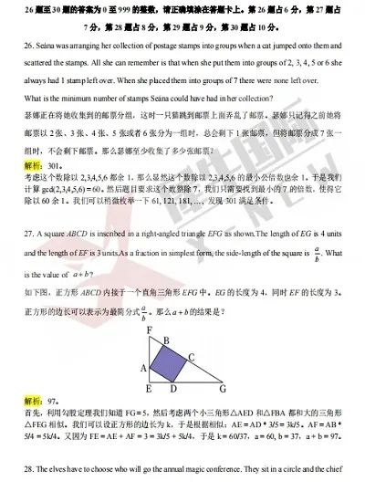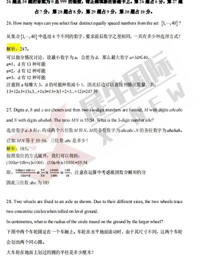 澳洲AMC 备考攻略 澳洲AMC是面向全球学生的数学竞赛,对拓展数学思维、提升数学能力很有帮助。 以下从不同阶段为你规划备考攻略: 1. 基础评估与资料收集 评估基础: 做一套近几年的真题,按照考试时间要求完成,了解自己在代数、几何、组合数学等板块的知识掌握情况,找出薄弱环节。比如,若在函数题上频繁出错,就表明代数函数部分需要重点复习。 收集资料: 官方真题:澳洲 AMC 官网有过往真题,能直观了解考试题型、难度和命题风格,分析常考知识点与出题套路。 辅导教材:选择涵盖竞赛知识点的专项教材,像《澳大利亚数学竞赛题解》,其对题目剖析详细,有助于深入理解解题思路。 在线课程:“学而思网校”“高思在线” 等平台的竞赛课程,老师会系统梳理知识点,传授解题技巧。 2. 知识学习与巩固 制定学习计划: 依据考试时间倒推,合理分配每个阶段的学习任务。比如,距离考试 3 个月,前 2 个月用于系统学习,每天安排 1 - 2 小时学习新知识;最后 1 个月巩固复习、刷题冲刺。 分板块学习: 代数:熟练掌握方程、函数、数列等知识。以一次函数为例,不仅要牢记表达式,还要学会通过图像分析其性质,以及在实际应用题中的运用。 几何:牢记三角形、四边形、圆等图形的性质与定理。如勾股定理,能在直角三角形中通过已知两边求第三边。 组合数学:理解排列组合、概率等概念。例如,用排列组合公式解决不同物品的排列方式问题。 学习技巧: 整理笔记:把重要公式、定理、解题方法记录下来,方便随时复习回顾。 错题整理:分析做错的题目,标注错误原因和正确解法,定期复习,避免再次犯错。 3. 技巧提升与模拟训练 解题技巧学习: 选择题技巧:运用排除法,根据题目条件,排除明显错误的选项,提高答题准确率。比如,在几何选择题中,根据图形的大致范围,排除不符合条件的数值选项。 难题突破:遇到难题,尝试从特殊情况或简单例子入手,找到解题思路后再推广到一般情况。 模拟考试: 严格限时:模拟真实考试环境,按照规定时间答题,适应考试节奏,提高答题速度和时间分配能力。 考后分析:考试结束后,仔细分析试卷,总结答题策略的优缺点,针对薄弱环节加强训练。 4. 考前冲刺与心态调整 复习错题:临近考试,重点复习错题集,强化对易错知识点的理解和掌握。 回顾公式:再次熟悉重要公式、定理,确保在考试中能准确运用。 调整心态:保持充足睡眠,以轻松、自信的心态应考,避免因过度紧张影响发挥。 澳洲AMC真题领取 ![]() ![]() ![]() ![]() ![]() ![]() 澳洲AMC历年真题 回复"澳洲AMC真题"可得 扫描下方二维码 添加微信:xiniujiaoyu6 ![]() |