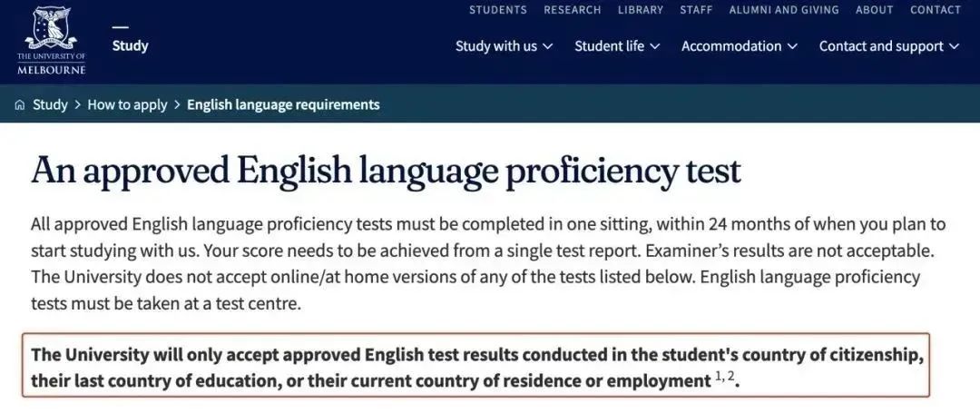 ![]() 点击上方蓝字 关注我们 ![]() 对于雅思偏科的同学来说,多少都经历过留学受阻的情况。明明总分已过线,却因单项成绩不足,与梦校失之交臂。 不过,随着单科重考的逐步推行,这种情况得以改善。 近期,澳洲留学圈又传来好消息,阿德莱德大学官宣接受雅思单科重考成绩。这项政策将适用于 2024 Entry 及后续的入学时间。 这意味着已有 7 所澳八大接受该政策,现在和同学们分享下~ 八大对雅思单科重考的态度 ![]() 01 悉尼大学:接受 ✦ 雅思:6.5(6.0),商学院、人文社科学院部分专业要求更高。 ![]() 图源:悉大官网 特殊要求:悉大的 IELTS 单项重考需与标准的 IELTS 测试一同评估。两年有效期适用于原始测试,而非 IELTS 单项重考的日期。 02 新南威尔士大学:接受 ✦ 雅思:6.5(6.0),多数专业要求总分 6.5-7.0 ![]() 图源:UNSW 官网 特殊要求:UNSW 要求申请人须在原始测试日期后 60 日内报名单项重考,且每个完整的 IELTS 测试只能重考一次。成绩将从原始测试日起两年内有效。 03 澳大利亚国立大学:接受 ✦ 雅思:6.5(6.0),个别专业(如心理学硕士),要求较高。 ![]() 图源:澳国立官网 04 蒙纳士大学:接受 ✦ 雅思:6.5(6.0),商科部分专业同样按照上述标准要求,对申请人较友好。 ![]() 图源:蒙大官网 05 昆士兰大学:接受 ✦ 雅思:6.5(6.0),部分专业要求较高,如高等护理硕士、临床牙科硕士(博士)等。 ![]() 图源:昆大官网 06 西澳大学:接受 ✦ 雅思:6.5(6.0),多数专业符合该要求。 ![]() 图源:西澳大学官网 07 阿德莱德大学:接受 ✦ 雅思:6.5(6.0),许多专业分数要求更高,达 7.0 以上。 ![]() 图源:阿大官网 08 墨尔本大学:不接受 ✦ ![]() 图源:墨大官网 墨尔本大学语言要求卡得很死,暂不接受雅思单项重考,且不接受跨国语言成绩,要求国际申请者的语言成绩只能在原籍国,或 last 接受教育国,或目前居住、就业国考取,其他跨国考点获得的成绩将不被接受。 其他接受单科重考的澳院校 ![]() ☞悉尼科技大学/学院 ☞皇家墨尔本理工大学 ☞科廷大学 ☞麦考瑞大学 ☞卧龙岗大学 ☞迪肯大学 ☞昆士兰科技大学【雅思 6.5 课程】 ☞乐卓博大学 ☞格里菲斯大学【6.5(6)及以下课程】 ☞南澳大学 ☞西悉尼大学 ☞詹姆斯库克大学(JCU 新加坡校区) ☞邦德大学 想要咨询出国留学申请,欢迎扫描下方二维码,咨询鸣谦留学小助手哦,为你提供专业的留学申请辅导! ![]() 目前我们提供英国/美国/澳洲/新西兰/爱尔兰/马来西亚/新加坡/中国香港/中国澳门全程留学申请服务,详情请咨询小助手哦↑↑ ![]() End 关注鸣谦·留学 获取一对一名师留学规划 让你离世界名校更近一步 ![]() ![]() 你点的每个赞,我都认真当成了喜欢 |