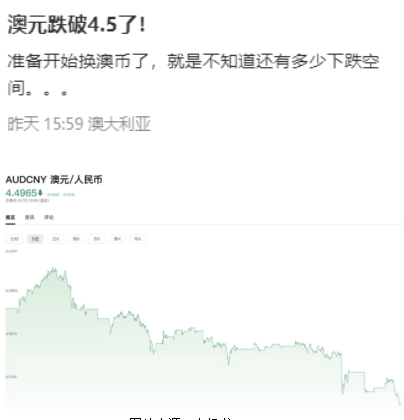 ![]() ![]() 前言 最近, 越来越多的澳洲人开始直呼 “再也看不到未来”, 对澳洲越来越没有信心。 而这一切, 都和这三件事有关…… 澳元汇率跌破4.5 原本以为澳元兑人民币汇率一路下行跌到4.5已经是极限。 而就在本周一,澳元汇率竟真的跌破4.5了! ![]() 图片来源:小红书@Wayne 在达到新低位之后,澳元汇率开始回升,一度回到了4.5410的水平。 ![]() 图片来源: 新浪财经 不过昨天开盘之后,澳元兑人民币汇率再度下跌,汇率水平为4.5315。 ![]() 图片来源: 新浪财经 澳元汇美元汇率同样下跌,至0.6185的水平。 ![]() 图片来源: 新浪财经 最近澳元汇率几度到达新低点,不少华人都在期待更低的汇率,准备出手换汇。 从K线图中可以明显看出,自2024年10月以来,澳元汇率呈现出持续的下跌趋势,兑人民币汇率目前已经从接近4.77下降到约4.53的水平。 除了美元的强势,澳元的疲软与澳大利亚经济数据不及预期相关。 同时,澳大利亚作为大宗商品出口大国,铁矿石、煤炭等商品价格的波动直接影响澳元汇率。 虽然澳元汇率的持续下跌,让等待着换汇的华人欣喜若狂,但是对于澳洲本土居民来说,这可算不上是一个好消息…… 由于澳洲近期的经济表现以及澳元疲软的情况,澳洲民众的信心正在逐渐消失! 经济表现不尽如人意 澳洲人信心逐渐消失 根据西太银行墨尔本研究所的调查,1月消费者信心指数下滑0.7%,至92.1点。 虽然与去年同期相比消费者情绪有所改善,但低于100点的信心指数仍然表明整体情绪较为悲观。 导致消费者信心下降的主要因素包括: 澳元走弱:澳元兑美元汇率已接近新冠疫情初期的最低水平,目前徘徊在61美分左右。 利率调整缺乏明确信号:消费者对利率下降的预期减少,进一步加剧对经济的担忧。 就业安全感降低:尽管失业率维持在3.9%的低水平,但消费者对就业前景的信心仍在减弱。 ![]() 图片来源:News.au 西太银行首席经济学家Luci Ellis指出,澳元贬值可能是消费者信心下降的重要原因之一。 消费者可能对澳元兑美元汇率的贬值反应强烈,这种走势引发了对利率及整体经济前景的负面预期。 澳元兑美元在过去三个月内已累计下跌近9%,从9月底的69美分跌至当前的61美分左右。周一的交易中,澳元最低触及61.44美分。 而澳元走弱可能推高进口商品价格,从而对家庭支出造成额外压力。 同时,这也导致央行利率政策调整空间受限,贬值趋势可能促使澳储行在2月的利率决策会议上维持现金利率在4.35%的高位不变。 尽管官方数据显示失业率维持在低位,且职位空缺数量有所增加,但消费者对就业的信心仍然下滑。1月就业信心指数下降2.8%,至127.2点,接近历史高位的128点。 Luci Ellis指出: 即使官方数据显示失业率保持低位,但消费者对就业市场的信心却持续恶化。 ![]() 图片来源:News.au 关于首次降息的时间,澳大利亚四大银行意见不一: