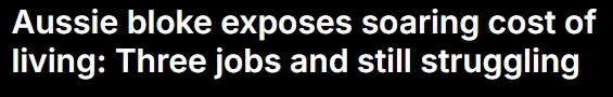 澳洲小伙曝光真相 澳大利亚梦已破碎 虽然从去年年底开始澳洲房市开始放缓,部分地区房价出现下跌,但对生活在澳洲的人来说,澳洲生活成本依旧是越来越高,基本生活已成问题,买房更是遥不可及。 最近,有一名澳洲小伙灵魂发问: “这真的是澳大利亚梦吗?” ![]() 图片来源:Daily Mail 住在阳光海岸的30多岁的澳洲男子Chris Booy分享了自己目前的现状:“我从未赚过这么多钱,但我也从未感到如此穷困。” 目前,Chris Booy每周工作大约60小时,远超澳洲标准工时。同时从事三份工作,包括保险业、DoorDash 和Uber Eats配送员以及YouTube内容创作者。 然而尽管如此,Chris Booy表示并未觉得自己生活水平有所提高, 我打三份工,我这辈子从来没有挣过这么多钱,但我却感觉自己并没有进步。 ![]() 图片来源:Daily Mail 他认同澳洲是个伟大的国家,是个居住的好地方且机会很多,但不可否认的现在物价太高了,生活成本也太高了。 Booy称,平均而言,澳人如果只从事一份工作,年收入为67000澳元,那么就只能接受生活水平略高于贫困线。 相比之下,十年前的Booy年收入只有4万澳元,但生活却过的相当舒适。 他表示那时候收入只有现在的一半,但只需做一份工作,且不会为任何杂货烦恼,也不会为房租烦恼,以当时的收入水平,尽管不是高收入者,也完全负担得起。 而现在,做了三份工作收入翻倍后,越来越多的事情都遥不可及了,虽然每周工作60小时是不可持续的,但Booy表示,一份平均薪资的工作完全不足以维持生计。 ![]() 图片来源:Daily Mail 因此他灵魂发问:“这真的是澳大利亚梦吗?” 此前他的梦想是成为一名房主,但现在越来越努力后,却发现这个目标已经逐渐无法实现了。 因为随着房价上涨,需要的首付金额会大大增加,而即便是购买一套普通住房所需的贷款数额也会让借款人背负数十年的债务。 ![]() 图片来源:dailymail.co.uk 对于这名小哥的感受,网友也纷纷发声支持, 有些不对劲。当一个国家的大多数人、一个经济体的大多数成员生活都不富裕、挣扎求生时,那就肯定出了问题. 如果你在70年代和80年代在澳大利亚长大,那你几乎就是中了彩票。不幸的是,那些日子已经一去不复返了,现在最伟大的澳大利亚梦就是离开澳大利亚。 另一位人士表示,澳大利亚的工薪阶层根本无法跟上步伐,唯一能够过上舒适生活的人是那些有钱投资的人,或者是那些在房价便宜得多的时候买房然后以高价卖出的人。 ★ 最后 ★ 澳元汇率疲软, 经济就业前景不明朗, 利率下降的希望越来越渺茫, 生活成本却越来越高, 这让澳洲人渐渐不到未来, 澳洲梦也成幻想…… 或许未来, 会有越来越多的年轻人, 选择离开澳洲再也不回来。 Ref: https://www.news.com.au/finance/economy/australian-economy/consumer-sentiment-dips-in-january-on-gloomier-economic-outlook/news-story/378a2dd7a6896b7d9450ec4a20036c83 https://www.dailymail.co.uk/news/article-14280089/cost-living-australia.html 推荐阅读 ![]() ![]() ![]() ![]() ![]() ![]() |