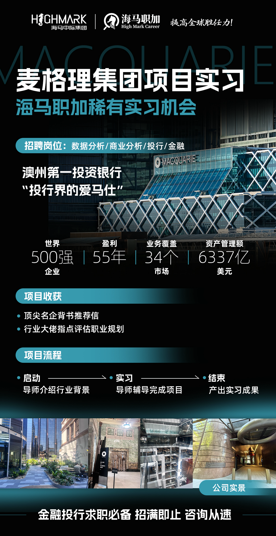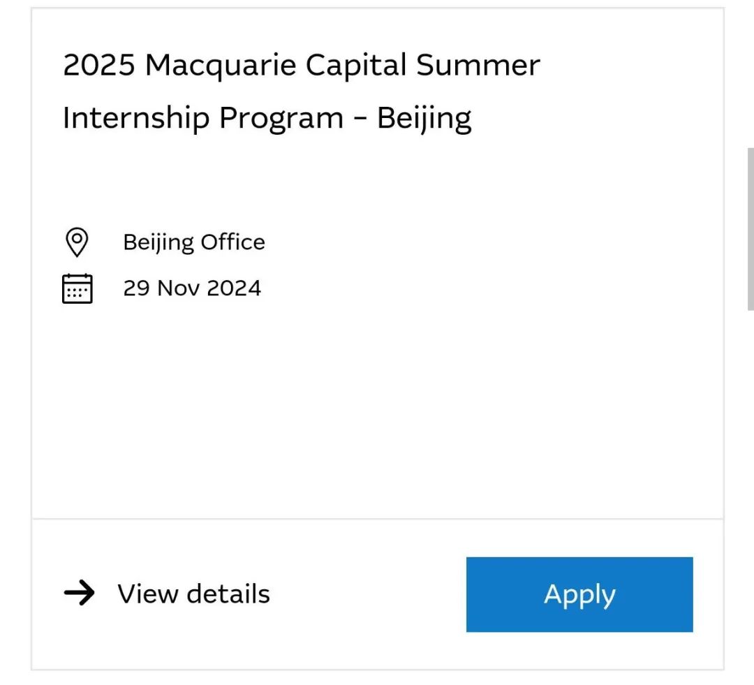 ![]() ⚠️所有准备进投行的留子/在校生们注意了 澳洲第一投资公司「麦格理」Macquarie实习项目开始申请! ![]() 招聘项目 :2025 Internship Program / 澳洲本土实地实习 面向对象 :所有25-28届在校生 实习地点 :北京、香港、伦敦、澳洲 岗位方向 :Financial、Technology、Capital、Risk、Asset Management等 ![]() 麦格理实习投递方式 ▼ ![]() HIGHMARK CAREER 关于麦格理Macquarie ![]() 麦格理作为“投资界的爱马仕”,无论是行业地位和声誉、职业发展机会和薪酬福利待遇方面都足够吸引实习生。 麦格理集团(简称“麦格理”)总部设在澳大利亚,是澳大利亚提供全面投资银行业务、金融市场服务和零售金融服务的一家主要银行。麦格理包括麦格理银行有限公司(MBL)及其在世界各地的附属机构。 ![]() *图/麦格理实景图 麦格理银行于1996年在澳大利亚证券交易所上市,麦格理银行是世界八大投行之一,澳大利亚排名第一的投资银行。从1992年以来,麦格理创造了连年盈利、持续增长的良好业绩。2021年5月,麦格理集团位列“2021福布斯全球企业2000强”第307位。 作为澳洲投行老大哥,麦格理提供的实习机会吸引了大量留学生申请实习。不仅为实习生提供了宝贵的工作经验,还为他们的未来职业发展奠定了坚实的基础。 ![]() *图/麦格理官网截图 麦格理25年实习申请 ![]() ![]() ![]() ![]() ![]() ![]() ![]() 麦格理澳洲本土实地实习项目 ![]() 不同与普通的实习,像麦格理这样顶级企业申请通过率不到10%,海马职加澳洲实习项目申请通过率翻倍,大厂导师直接帮你进行岗位对接,并提供申请指导,为申请人顺利通过全程护航。 除此之外,你将收获: ✅ 顶尖名企背景,可写进简历的真实投行项目经验 ; ✅ 线下行业大佬导座谈会,投行Director和四大Director的亲自指教,并帮你评估职业规划; ✅ 获得推荐信等相关证明。 ![]() 无论国内or国外求职,实习经历or项目经历都必不可少。 如果你想趁寒假抓紧补充项目,但又毫无头绪可以看看下面是否有你心仪的企业/岗位👇 ![]() ![]() ![]() ![]() 海马职加是海马High Mark ®国际教育集团旗下高端留学生求职辅导品牌。汇集全球各大热门行业500强在职导师,同时依托海马教育集团严格的教学管理体系,为学生提供从职业定位到背景提升,从能力培养到求职应战等多维度的求职指导,贯穿学生留学生涯和职场初期。 |