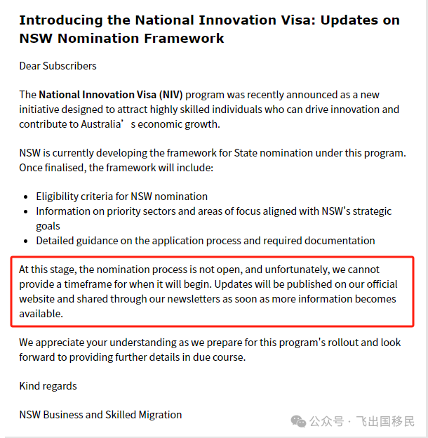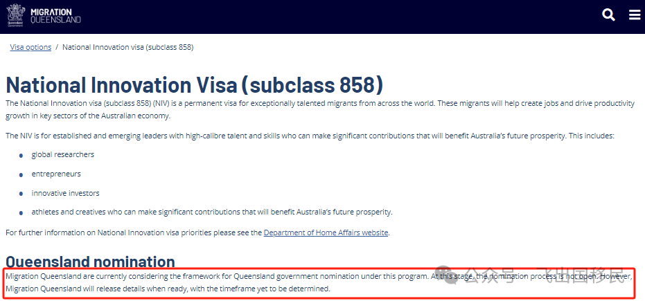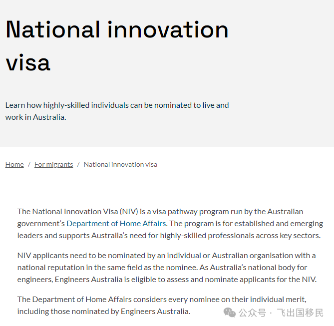 点击蓝字关注我们 上个月出台的NIV签证项目,有一个核心要求是申请人要有澳洲提名人,可以是州政府,澳洲机构,也可以是有澳洲公民或者永居身份的个人。这篇文章汇总说下NIV推荐人的几种情况。 州政府作为推荐人 澳洲移民局公布的NIV签证申请要求里,有规定移民局发放邀请的优先级别,其中申请人如果有州政府作为推荐人将是第二个优先级别。要知道最高的第一个优先级别是需要申请人获得专业领域的最高国际奖项的,而这样的申请人从全球范围来讲也是凤毛麟角,因此,从某种程度来讲,要是有州政府作为推荐人,那么NIV申请人的优先级别已算是“最高”了。那么,州政府的NIV担保怎么申请呢? 截止到目前,包括新州,昆州,维州官方消息都是说还没有正式开放NIV担保申请,那么,想要申请州政府作为NIV推荐人的话,还得等等了。 不过道理和申请技术移民州担保也会是类似的,无非是各州制定自己的一个标准,比如需要哪些专业领域,何种类型的NIV申请人,然后需要提交哪些材料来证明,从而州政府会进行审理,然后给申请人提名。 ![]() ![]() ![]() 行业机构作为推荐人 除开州政府作为NIV推荐人,NIV项目的推荐人还可以是机构或者个人。而目前官方宣布可以提供NIV提名服务的就是EA和IML两个机构。 这两个机构,之前一直是作为澳洲技术移民职业评估机构为大家所熟知的,也曾提供过GTI项目的提名人服务。 ![]() EA是澳大利亚工程师协会,是澳洲移民局指定的专门负责澳洲技术移民工程师相关职业的机构,同时,在澳洲有些州从事工程师职业有执业注册要求,也一般是通过EA这个机构来申请的。 现在EA公布可以提供NIV提名服务,而想要申请EA提名人服务,申请人需要有是国际认可的专业成就,包括高级职位,专利,专业奖项,国际发表文章及会员等。同时,对于满足要求的博士毕业生也是可以申请的。 EA主要会参考移民局对NIV项目设立的要求来进行审理,参考以下流程: