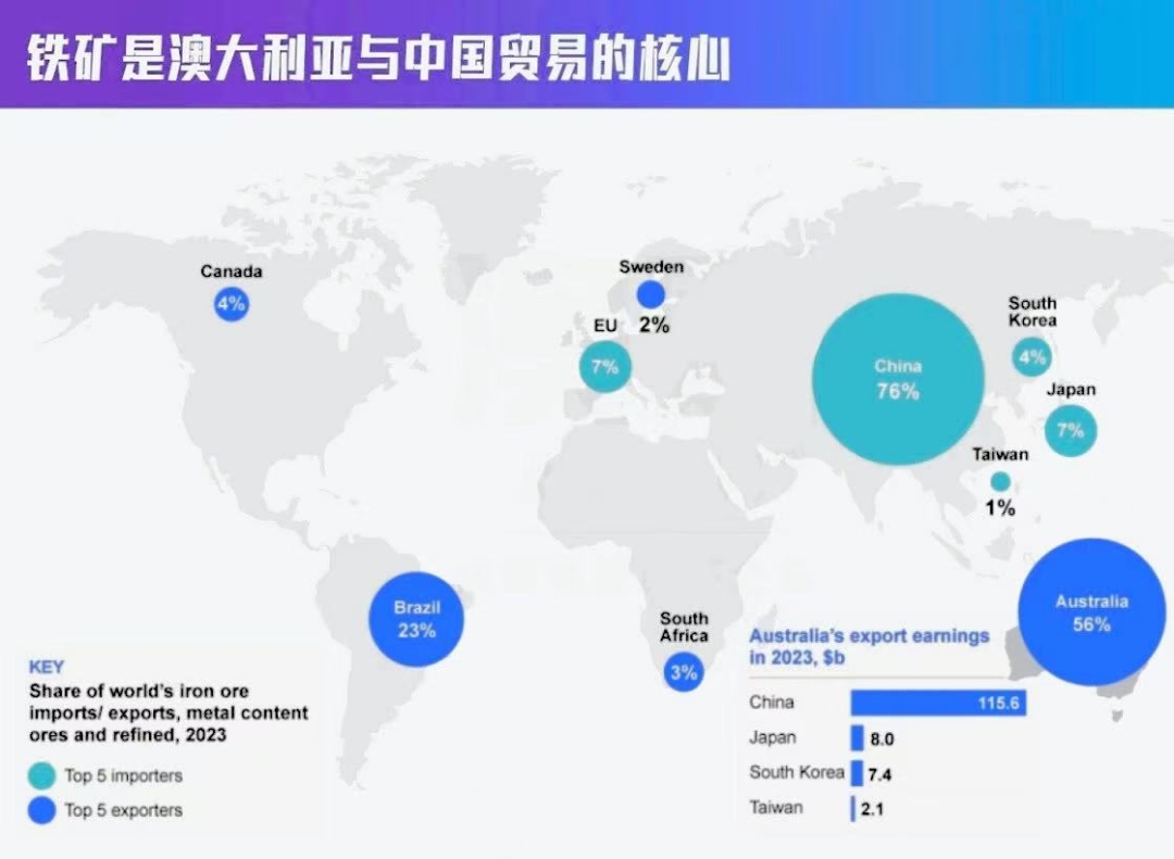 ![]() ![]() ![]() ![]() 1952年,澳大利亚富二代Lang Hancock驾驶着私人飞机掠过皮尔巴拉地区,一次偶然的发现,竟成了改写澳大利亚命运的神来之笔,地球上储量最大的铁矿床由此被揭开神秘面纱,巨额财富之门就此缓缓开启。 ![]() 而百余年间,澳大利亚也以其独特的地理位置和丰富的自然资源,孕育了强大的传统优势产业,从“羊背”到“矿车”,再到服务业蓬勃兴起,这些传统优势产业已化作其纵横全球经济舞台的关键“密码”,支撑起一片繁荣盛景。 2025年,在全球经济的浪潮中,澳大利亚的传统优势产业还会成为其坚固的基石吗? 01 “矿车上的国家”: 经济增长的强劲引擎 在地球南端的广袤大陆上,澳大利亚宛如一座天然的“矿产宝藏库”,其丰富的矿产资源储备在全球资源版图中占据着关键一席,当之无愧地成为世界矿产供应的重要支柱之一。 ![]() 时光回溯至19世纪中叶,金矿的意外现身,如同一颗投入平静湖面的巨石,瞬间激起全球移民奔赴澳大利亚的淘金狂潮。此后,煤矿、铁矿等众多珍贵矿产资源相继被发掘,命运的齿轮悄然转动。 凭借大自然慷慨的馈赠,澳大利亚如今已查明的矿物资源多达70余种,且储量可观。其中,铝、铁、金、锂、稀土元素等19种重要矿物的大规模生产,使其在全球市场中稳稳占据领先地位,为澳大利亚赢得了“坐在矿车上的国家”的美誉。 ![]() 矿业在澳大利亚经济中扮演着举足轻重的角色。最新数据显示,矿业占澳大利亚国内生产总值的13.6%,同时在全国出口额中更是贡献了惊人的66%。这一数据不仅凸显了矿业对澳大利亚经济的巨大贡献,也进一步证明了其在全球矿产资源市场中的核心地位。 ![]() 近年来,全球经济逐步回暖复苏,新兴市场对于基础设施建设的需求呈现出强劲的增长态势。在这一时代浪潮之下,铁矿石和锂矿石等关键矿产的价格一路飙升,涨势如虹。 仅在2022-2023财年,这两种矿产就为澳大利亚政府带来了高达180亿澳元的额外税收收入,进一步增强了澳大利亚在全球矿业市场中的竞争力。 关键矿产-锂矿石 锂矿石,作为制作电池的关键原料,澳大利亚在全球锂矿供应中占据主导地位。成为全世界最大的锂矿出口国。 ![]() 同时,澳大利亚拥有多家知名的锂矿公司,如Pilbara Minerals(ASX:PLS),这是澳大利亚最大的上市锂矿公司,以生产高品质的锂辉石精矿而闻名于世。 此外,Talison Lithium作为世界上最大的硬岩锂矿生产商,由天齐锂业/IGO(持股51%)和雅保(持股49%)合资持有,进一步巩固了澳大利亚在全球锂矿市场中的领先地位。 关键矿产-铁矿石 再看铁矿石,澳大利亚是毫无争议的全球最大铁矿资源国与出口国。长期以来,铁矿石出口始终是澳大利亚与中国贸易往来的核心关键,其出口规模持续稳步上扬,为澳大利亚经济源源不断地输送着强劲动力。 ![]() 关键矿产-铜矿 铜矿领域同样不容小觑,作为全球第四大铜矿出口国,澳大利亚的铜矿资源在全球市场上具有重要地位。 随着全球制造业积极迈向“零碳排放”的绿色发展之路,对铜的需求呈现出持续增长的良好态势,这无疑为澳大利亚的铜矿出口开辟了更为广阔的市场空间,前景一片光明。 ![]() 关键矿产-稀土 在稀土产业,尽管中国在稀土产业链的各个环节都占据着主导优势,但澳大利亚政府正在积极支持稀土产业的发展。 据悉,澳大利亚政府为Arafura(ASX:ARU)提供了高达8.4亿澳元的信贷和补助,助力其稀土加工厂的建设。与此同时,美国国防部也慷慨拨款2.58亿美元,支持Lynas在美国德克萨斯州建设稀土加工厂。 ![]() 图注: Lynas在马来西亚的稀土加工厂 目前,澳大利亚拥有全球除中国外唯一一家具备稀土大规模加工能力的工厂,这一独特优势使其在全球稀土市场中成功争得一席之地。 矿业股:经济晴雨表 矿业作为澳大利亚经济的强大驱动力,不仅为澳大利亚带来了巨大的经济效益,也为其在全球矿业市场中树立了良好的声誉。随着全球经济的不断发展和新兴市场需求的持续增长,澳大利亚的矿业前景将更加广阔。 而矿业繁荣不仅体现在实体经济上,也在资本市场上得到了充分反映。公开数据显示,矿业股约占澳交所市值的20%,绝大多数分布于基础材料板块,涵盖了许多世界影响力巨大的矿业公司,如2000多亿澳币市值位居首位的全球矿业巨头如必和必拓(BHP)。 这些公司的优异表现,不仅为投资者带来了丰厚的回报,也进一步巩固了澳大利亚在全球矿业市场的领先地位。 ![]() 澳洲矿业代表企业 因此,尽管矿业已经取得了巨大的成就,但其未来仍充满挑战和机遇。随着全球对可持续发展和绿色能源的日益重视,澳大利亚的矿业需要更加注重环境保护和资源的可持续利用。同时,面对全球矿业市场的波动和不确定性,澳大利亚的矿业企业也需要不断提升自身的竞争力和抗风险能力。 02 农业: “羊背”之上的国际竞争力传奇 早有传言称,《圣经》里那令人神往的“蜜和牛奶流淌”之地,恰似澳大利亚这片神奇的大陆。 在19世纪20年代,羊毛作为澳大利亚的主要出口产品,成为当地的支柱产业。因为羊毛产业兴盛,澳大利亚也得到了“羊背上的国家”的戏称。 时至今日,澳大利亚已经是全球最大的羊毛生产国与出口国。公开数据显示,其每年生产的羊毛超过70万吨,出口创汇占澳大利亚出口总额的10%以上,成绩斐然。 ![]() 澳大利亚政府更是始终将农业和畜牧业作为立国之本。每年国家科研经费的70%