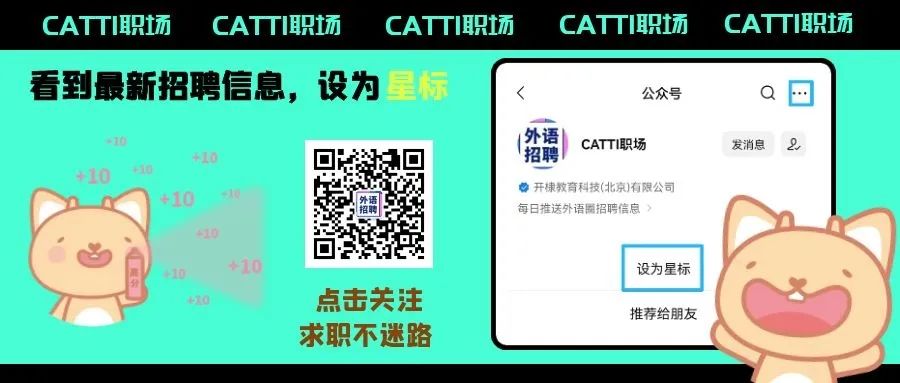 Applications and inquiries should be emailed to beijinghrrecruitment@dfat.gov.au. Closing date for applications is 17:00 on Monday, 20 Janaury 2025. Applications received after this time will not be considered. Please consider your application unsuccessful if you have not received any contact within four weeks from the closing date. *声明:CATTI中心仅提供信息分享,最终解释权归招聘方所有,具体信息请咨询招聘单位。 ![]() ![]() ![]() ![]() 课程咨询与备考指导 ![]() ![]() 点个在看你最好看 |