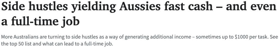 ![]() 近年来,越来越多的澳洲人走上了“副业发家致富”的道路,这股潮流背后的推动力,毫无疑问是生活成本的压力。 副业不仅能补贴家用,有些甚至还能为从事者开辟一条全职职业的新赛道。 ![]() 目前,烘焙、内容创作和编码被认为是最受欢迎的三大副业,甚至能发展成为长久的全职工作。 专业招聘机构Randstad指出,这些副业往往能够培养“创造力、情商和批判性思维”等热门可转移技能,这些正是当下就业市场最炙手可热的“金牌能力”。 ![]() 他们强调,未来职业发展与人工智能、编码、内容创作及电子商务等领域的深度结合将不可避免,善用副业来提前积累相关技能,是明智的选择。 数字平台的繁荣也为副业的崛起提供了强大的支持。 例如,Etsy、Uber、Airtasker等在线商业平台,让大家可以轻松发布和接取任务,每周发布的任务量超过5万个。 ![]() 除了技能和选择方向的思考,法律合规问题同样不容忽视。 根据澳洲税务局的规定,任何副业收入都需要缴税,而如果副业发展成一项正式业务,还需要注册ABN并缴纳超级金。 在这里,我们还为大家整理了最受欢迎的50大简单副业,从数字营销、视频编辑到宠物美容、草坪修剪,无论你擅长什么,总能找到适合自己的项目。 向上滑动阅览