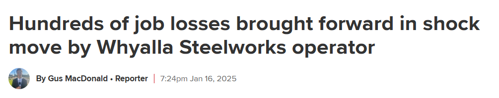 ![]() 昨天,南澳的Whyalla Steelworks突然宣布提前裁掉350名合同工,一石激起千层浪!这一操作,不仅让工人们措手不及,也让州政府和运营商GFG Alliance之间本就紧张的关系雪上加霜。 ![]() 事情起因是Iron Knob矿区的运营即将结束,但原本预计的时间还没到,GFG却突然终止了向Whyalla Steelworks供应矿石的合同。能源和矿业部长Tom Koutsantonis对此表示震惊:“我以为还有更多矿石可以开采……但GFG董事会显然做了个出人意料的决定。”这下,信任危机彻底爆发。Koutsantonis直言:“现在我们只能看他们做什么,而不是听他们说什么。“这话很有点不满的意思,毕竟这已经不是GFG第一次让人担心了。 ![]() 过去几年,Whyalla Steelworks一直面临不少挑战。作为南澳的重要钢铁生产基地,这里的高炉自从设备问题出现后就无法恢复满负荷运转,产能大幅下滑。这种不确定性让钢厂工人和相关产业链上下游企业都十分焦虑。GFG Alliance本是以拯救Whyalla Steelworks闻名于世。2017年,GFG从濒临破产的Arrium集团手中接过钢厂,以“振兴澳洲工业”为目标。然而,几年来,尽管GFG投入了不少资源,但钢厂的运营状况始终不尽如人意,设备老化、高炉问题和国际铁矿石价格波动都让情况雪上加霜。尤其是最近几年,全球钢铁行业受疫情影响严重,原材料供应和基建市场需求双双受限,Whyalla Steelworks也无法独善其身。而这次Iron Knob矿区的关闭显然是出于成本和战略调整的考虑。 ![]() GFG在声明中表示,他们未来几个月计划提升Whyalla Steelworks的产能,并增加长期岗位,试图缓解裁员带来的负面影响。此外,他们还承诺会尽可能帮助受影响的合同工重新安置。网友们对此怎么看呢?有人吐槽GFG这波操作太突然,也有人为失业的工人们感到担忧,还有人希望政府能在这件事上采取更多行动。这场风波无疑是南澳工业界的一次大震荡,而除了钢铁行业,澳洲长久以来的铁饭碗——矿业,居然也开始裁员了,有网友评论:我们公司一百多年都没裁过,现在居然也裁员了,有网友说:bhp一个镍矿停了,铁矿价格都倒挂了吧,现在也就铜矿还行,锂矿价格也跌了。虽然现实生活中,大家都恐慌裁员,也感受到就业市场的冷清,但在政府统计数据那里,失业率竟然还一直不达标!本周四出炉的最新数据显示,12月份的失业率低于澳洲央行的预期。 ![]() 其中,去年12月份,澳洲就业人数增加56000人,失业人数增加10000人,澳洲的官方失业率从11月的3.9%略微上升到了12月的4.0%。 虽然一般而言,失业率上升、通胀率下降就是降息的信号,但澳洲的总体失业率仍然较低,低于澳洲央行预测的4.3%,还没有达到澳洲央行降息所需的水平。 VanEck投资组合经理Cameron McCormack表示,在周四公布结果后,澳洲央行可能要在今年晚些时候才首次降息。 他说:“尽管12月份的失业率有所上升,但还没有达到澳洲央行紧急降息的水平。紧张的劳动力市场将继续对服务业通胀施加上行压力,澳洲的服务业通胀相对美国更加明显。” “最近几周,我们看到市场认为2月份降息的可能性增加,目前的概率为70%。然而,这种预测有点乐观,而且如果本月晚些时候发布的第四季度CPI数据比预期的高(因为澳元贬值推高了汽油和其他重要进口商品的价格),2月降息更不太可能。” 所以,这种煎熬不知道还要持续多久…… 2025年了,你所在的行业还好吗?你身边有裁员现象吗?欢迎分享在评论区哦! 来源:各大澳媒 ![]() ![]() ![]() ![]() ![]() 很开心认识你! 我是墨妮卡 ![]() |