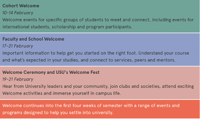 ![]() 👈|获取更多实用小技巧 USYD 悉大宝藏神器,带你玩转大学 ![]() 想要快速融入大学生活,这些线上工具将是你的得力助手!🔎 ![]() 【悉引力】学生小程序 为新生提供指南,包括入学流程、校园生活以及学生支持服务介绍。 ![]() Sydney Uni App 支持随时随地查看课程信息、预约服务、校园导航。可在Google Play 或 App Store免费下载,使用 UniKey 即可登录。 ![]() ![]() USYD 迎新活动即将开启,敬请期待 2025年第1学期的欢迎周将于 2月10日 开始,持续到学期第4周。届时,丰富的活动和研讨会为新生和在读学生介绍悉尼大学的精彩生活,并提供与老师、同学建立联系的机会! ![]() ![]()