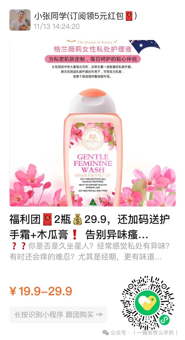 【澳洲Green Valley歌林薇丽女性护理液】 平台团购:19.9起 (直接图一扫码下单即可) ![]() 福利团🧧2瓶💰29.9,还加码送护手霜+木瓜膏❗ 告别异味瘙痒⚠️一款可以每天使用的清洗液!开团1瓶19.9‼️ 专为女性健康研发【澳洲Green Valley歌林薇丽女性护理液】 ✅止痒减菌 ,祛除异味,天然成分 ✅孕期经期均可使用,无皂配方,无副作用 呵护私处健康,敏感肌也可以用哦#个护# 版本:一般贸易 📅日期:2027年4 月 快递 团管理订单管理商品核销 3天前 发布 跟团中69天1小时30分22秒后结束 ![]() ❓❓你是否是久坐星人?经常感觉私处有异味? 有时还会痒的难忍?尤其是经期,更有味道?还很容易患妇科疾病? ️你需要注意私处护理了! 🤧 虽然女性的妇科疾病有很多种不同的类型,病因也是不同的 但是大多都是由于【私处卫生环境不佳】的小问题从而引发的大问题 中国就有87%以上的女生会患有常见妇科疾病,全球95%以上的女性存在私处健康问题! |