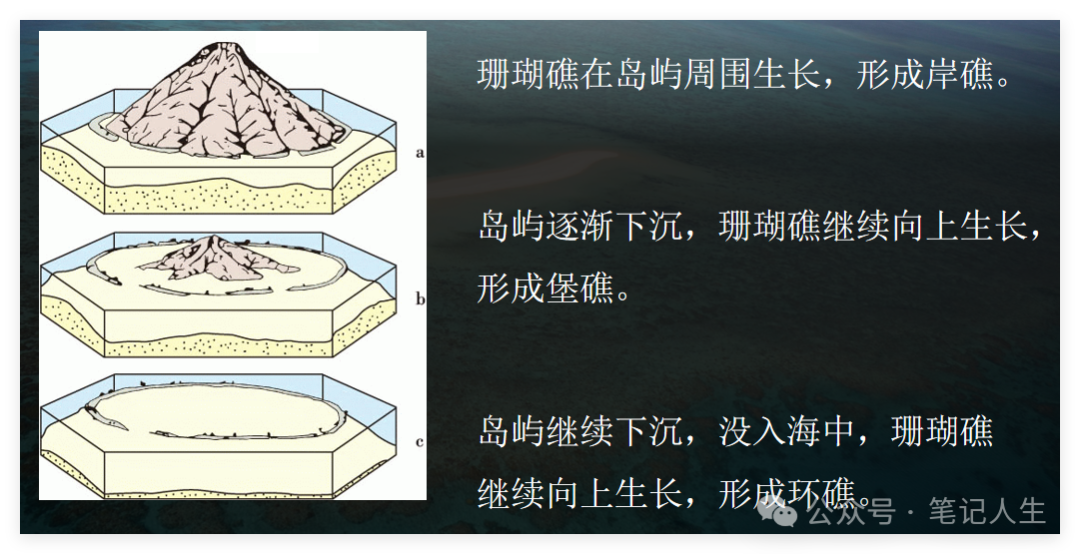![]() ![]() 在广袤无垠的南太平洋西部海域 澳大利亚东北岸外 有一片如梦似幻的自然奇观——大堡礁 它宛如一条璀璨的明珠项链 镶嵌在蔚蓝的海面上 以其无可比拟的壮丽与神奇 吸引着世界各地的游客纷至沓来 成为了地球上最令人心驰神往的旅游胜地之一 ![]() ![]() 位于澳大利亚东北海岸的热带海域是世界最大的珊瑚礁 备注:本内容可做初高中地理选修课内容,获取PPT课件方式往下拉 ![]() ![]() ![]() ![]() 珊瑚之名来自古波斯语 sanga(石),为珊瑚虫群体或骨骼化石。珊瑚虫为腔肠物,身体呈圆筒状,有八个或八个以上的触手,触手中央有口。多群居,结合成一个群体,形状像树枝。骨骼叫珊瑚石或简称珊瑚。产在热带海中。随着全球暖化的发生,已造成多数的珊瑚死亡。 ![]() ![]() ![]() ![]() ![]() ![]() 珊瑚的分类:珊瑚从外观形态分有石珊瑚和软珊瑚。 从生态角度分有造礁珊瑚和非造礁珊瑚。 作为宝石或观赏石来分,品种有:红珊瑚、粉珊瑚、黑珊瑚、蓝珊瑚、地中海珊瑚、日本珊瑚、喀麦隆珊瑚、中国海南珊瑚等。红色的珊瑚是由于在其生长过程中要吸收海水中1%左右的氧化铁,黑色的珊瑚是由于其含有有机质 。 ![]() ![]() ![]() ![]() 为什么澳大利亚的北海岸会聚集这么多的珊瑚礁? 海域条件:① 海水水温2l℃~38℃,垂直变化和季节变化小;②海水盐度平均3.5%;③海水清晰度高,水面平静;海水浅,海底阳光充足。 地质条件:地壳缓慢沉降。最终形成适合珊瑚虫繁衍及骨骼堆积的环境。 大堡礁是怎样形成的? ![]() ![]() ![]() 大堡礁中的鱼类超过1500种,其鲜艳亮丽的颜色足以与珊瑚相媲美。 ![]() ![]() 蝴蝶鱼属(学名:Chaetodon)是生活在热带到暖温带水域的海洋鱼类家族。它们有些出现在微咸河口或封闭港湾,通常沿着岩礁陡坡活动,最常见于浅水(不到20米)珊瑚礁附近,也有一些在200米以下的深水栖居。它们出没于海草栖息地、深泥滩或浅水泻湖周围。许多蝴蝶鱼的幼鱼活动区域相比成鱼有差异,如潮汐湖、巨砾珊瑚礁以及没有珊瑚的浅水。 ![]() ![]() 太平洋绿龟的体重在150公斤左右,幼龟不及它的百分之一。幼龟一般在四五月间离巢而出,争先恐后爬向大海。只是从龟巢到大海需要经过一段不短的沙滩,稍不留心便可能成为鹰等食肉鸟的食物。 ![]() ![]() 海星,是棘皮动物中结构生理最有代表性的一类。体扁平,多为五辐射对称,体盘和腕分界不明显。生活时口面向下,反口面向上。腕腹侧具步带沟,沟内伸出管足。内骨骼的骨板以结缔组织相连,柔韧可曲。体表具棘和叉棘,为骨骼的突起。从骨板间突出的膜质泡状突起,外覆上皮,内衬体腔上皮,其内腔连于次生体腔,称为皮鳃,有呼吸和使代谢产物扩散到外界的作用。水管系发达。个体发育中经羽腕幼虫和短腕幼虫。 现存种类1600种,化石种类300种,广泛分布于砂质海底、软泥海底、珊瑚礁及各种深度的海洋中。 ![]() ![]() 大堡礁风景区除了有众多美丽的珊瑚岛礁外,周围还分布着许多具有热带风光的大陆性岛屿。白沙碧水,阳光充足,椰林掩映。大堡礁北段,在澳大利亚东北部沿海地区,生活着土著部落,有着独特的历史文化和风俗习惯。 最佳游览方式:乘坐具有透明船底的出海游船;参加各种潜水活动。 澳大利亚大堡礁以其独特的自然景观和丰富的生物多样性,成为了大自然赐予人类的一份珍贵礼物。它不仅是澳大利亚的骄傲,更是全人类共同的财富。 关于澳大利亚大堡礁,你还有什么想分享的,欢迎评论区留言!!! ![]() 扫码打赏5元后,获取相应PPT课件。备注邮箱或者发送信息给公众号后台(邮箱和需要内容不要发错了)。笔者上线查看后第一时间发送。制作不易,感谢支持! ![]() ![]() ![]() ![]() 笔记人生分享生活 |