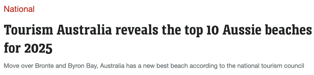 ![]() ![]() 提到澳洲的标志性海滩,你可能会想到黄金海岸、白天堂沙滩或Bondi... 但今年,澳大利亚旅游局评选出的2025年最佳海滩,竟然位于以凉爽气候著称的塔州! ![]() ![]() 2025年澳洲最佳海滩要数 塔州的火焰湾(Bay of Fires) 这片长达10公里的壮美海岸线,以清澈的碧蓝海水、细腻的白色沙滩和独特的橙色岩石闻名,被誉为世界上最梦幻的海岸之一。 这是塔斯马尼亚海滩首次获得该荣誉,击败了全澳12,000多个竞争对手,实力不容小觑! ![]() 旅游局官方“海滩大使”Brad Farmer表示,火焰湾美得让人难以抉择,所以他破例将整片海岸线评为最佳海滩。 “塔州的海滩美得让人惊叹,无论是摄影、绘画、钓鱼,还是冲浪,这里都堪称天堂。” 不过,这片海湾的水温通常只有14℃至17℃,相比昆州海滩的温暖海水,确实有点透心凉。但即使你不下水,也有无敌美景等你探索。 ![]() 除了冠军塔州火焰湾, 2025澳洲最佳海滩第二名 被新州的Woolgoolg beach拿下 这是一个既适合冲浪、浮潜、游泳,又充满海滨小镇悠闲氛围的度假胜地。 这里的海浪吸引着冲浪爱好者,温暖清澈的海水则让浮潜和游泳成为游客最爱的活动之一。此外,海滩旁还有风景如画的观景点,可以眺望浩瀚大海,运气好的话,还能看到迁徙中的鲸鱼! ![]() 2025澳洲最佳海滩第三名 诺福克岛的Emily Bay Lagoon 排名第三的是诺福克岛的Emily Bay Lagoon,一个宛如天堂的秘境,被誉为澳洲最纯净的海滨宝藏。 碧绿透彻的海水、细腻洁白的沙滩,再加上周围郁郁葱葱的植被,这里简直是人间仙境。 不管是悠闲地泡在水里,还是划着小艇探索静谧的泻湖,都能让人完全沉浸在大自然的宁静与美丽之中。 ![]() 2025澳洲最佳海滩第四名: 昆州North Kirra Beach 紧随前三名的是昆士兰州黄金海岸的North Kirra Beach,这片海滩以壮观的海浪和顶级冲浪体验闻名,吸引着全球冲浪爱好者前来挑战。 ![]() 2025澳洲最佳海滩第五名: 西澳小泻湖(Little Lagoon) 宁静与美丽的完美结合,西澳的小泻湖以其独特的自然景观跻身榜单前五。这片位于西澳偏远地区的海滩,拥有清澈如镜的水面和细腻的白沙,给人一种与世隔绝的宁静感。 ![]() 2025澳洲最佳海滩第六名 南澳Fishermans Bay 宁静与美景并存的渔村湾,位于南澳,是今年唯一进入前十的海滩,凭借其独特的魅力在榜单中占据一席之地。这个风景如画的海湾以其清澈的海水、洁白的沙滩和自然的海岸线著称。 ![]() 墨小编每天第一时间跟大家分享墨尔本最新的大事小事,记得关注墨尔本生活资讯,接下来那些吃喝玩乐奇闻趣事跑不了的! ▼长按这个二维码▼ 墨尔本新闻抢先知道! ![]() 2025澳洲最佳海滩第七名 昆州1770 Beach 1770海滩,位于昆州,凭借其平静的水流和浅水区成为家庭旅行者的理想选择,在今年的最佳海滩榜单中排名第七。 适合全家人游玩的理想场所,尤其是有小孩的家庭,1770海滩的水域相对安全,水深较浅,是孩子们玩水、堆沙堡的完美地方。温暖的海水和柔软的沙滩使这里成为家庭度假的绝佳选择。 ![]() 2025澳洲最佳海滩第八名: 西澳海滩(Scarborough Beach) 西澳的Scarborough Beach首次进入澳洲最佳海滩前十,排名第八。这片海滩因其广阔的海岸线和多功能的海滩活动而受到当地人喜爱,并且已经吸引了越来越多的外地游客前来体验。 ![]() 2025澳洲最佳海滩第九名: 新州洞穴海滩Caves Beach 洞穴海滩位于新州猎人地区的麦考瑞湖,凭借其神秘的海洞和令人震撼的自然景观,成功跻身澳洲最佳海滩前十,排名第九。 ![]() 2025澳洲最佳海滩第十名: 维州Cowes Beach Cowes Beach位于维州著名的菲利普岛,排名第十,是一个充满魅力的海滩。这个海滩以其清澈见底的海水和美丽的海岸线而闻名,是游客放松身心、享受阳光的完美去处。 ![]() 澳洲贸易和旅游部长Don Farrell表示,这份榜单让人们重新认识澳洲的海滩之美! 虽然Bondi和Brighton是大家熟知的海滩,但澳大利亚的魅力不仅限于这些著名景点。 真正的魅力往往隐藏在那些鲜为人知、宁静宜人的地方,探索这些独特的海滩,才会让你体验到澳洲的真正精髓! 关于我们 Perfect Lover——作为澳洲新西兰最大的华人婚恋交友平台之一,不定期在各大城市举办各类主题的线上线下交友活动。 ![]() ![]() ![]() 澳洲上万人线上线下首选脱单平台——70后、80后、90后、00后优质单身男女聚集地。 ![]() ![]() ![]() ![]() Perfect Lover公众号 每周都会推荐 优质单身男/女 ![]() 如果你正好在 澳洲或新西兰 如果你 年龄在20-45岁 如果你是 单身 ![]() 脱单添加小红娘微信 ![]() 说出你的要求和条件 为你匹配Perfect Lover! (本文图片均来自网络) ![]() ![]() ![]() ![]() ![]() ![]() ![]() 告诉大家一个了解墨尔本生活资讯的小诀窍。现在只要点亮一个小星星🌟,每天就能在第一时间看到各种最新鲜的资讯!墨尔本哪里打折💰,哪里有好玩的活动🎉,哪里的餐厅最实惠🍰,哪里有同乡聚会👬,还有墨尔本各种政策福利、隐藏技能,全都知道啦! ![]() ![]() ![]() 冰雹!100km/h狂风!今天墨尔本人却不按常理出牌,让全世界见识了什么叫优雅!![]() 刚刚!澳洲街头被亿万大军染红!气势汹汹爬向海边!壮观场面震撼全世界!看得华人都兴奋了…![]() 澳洲女老师确诊新冠2天内去世!7岁女童确诊3天去世,心脏、大脑都肿了!恶化速度突破认知…![]() 澳洲女子突然呼吸困难,陷入昏迷!不是新冠,是华人在澳洲最不愿面对的问题…![]() 123万人今天起排队进澳洲!这2